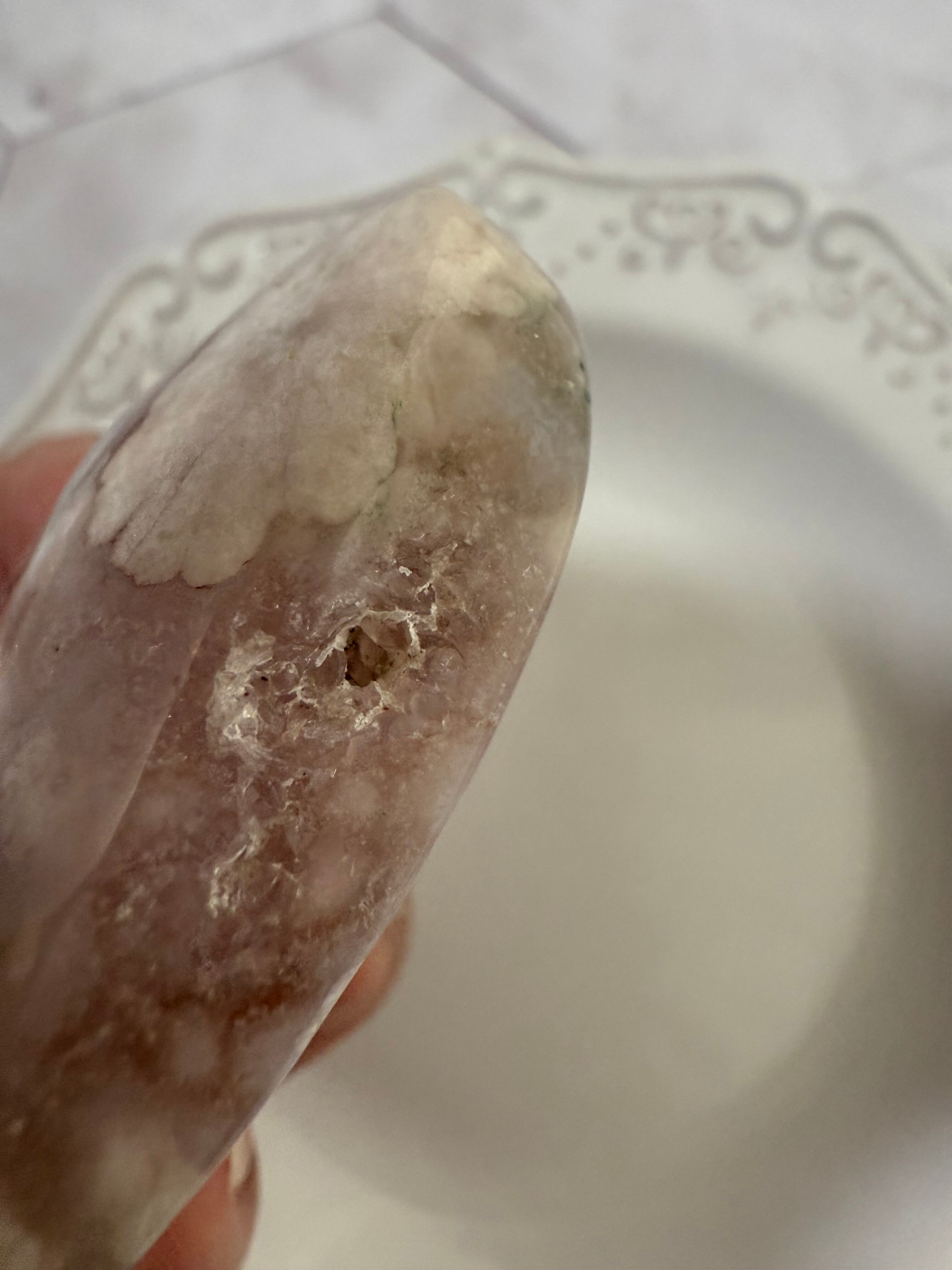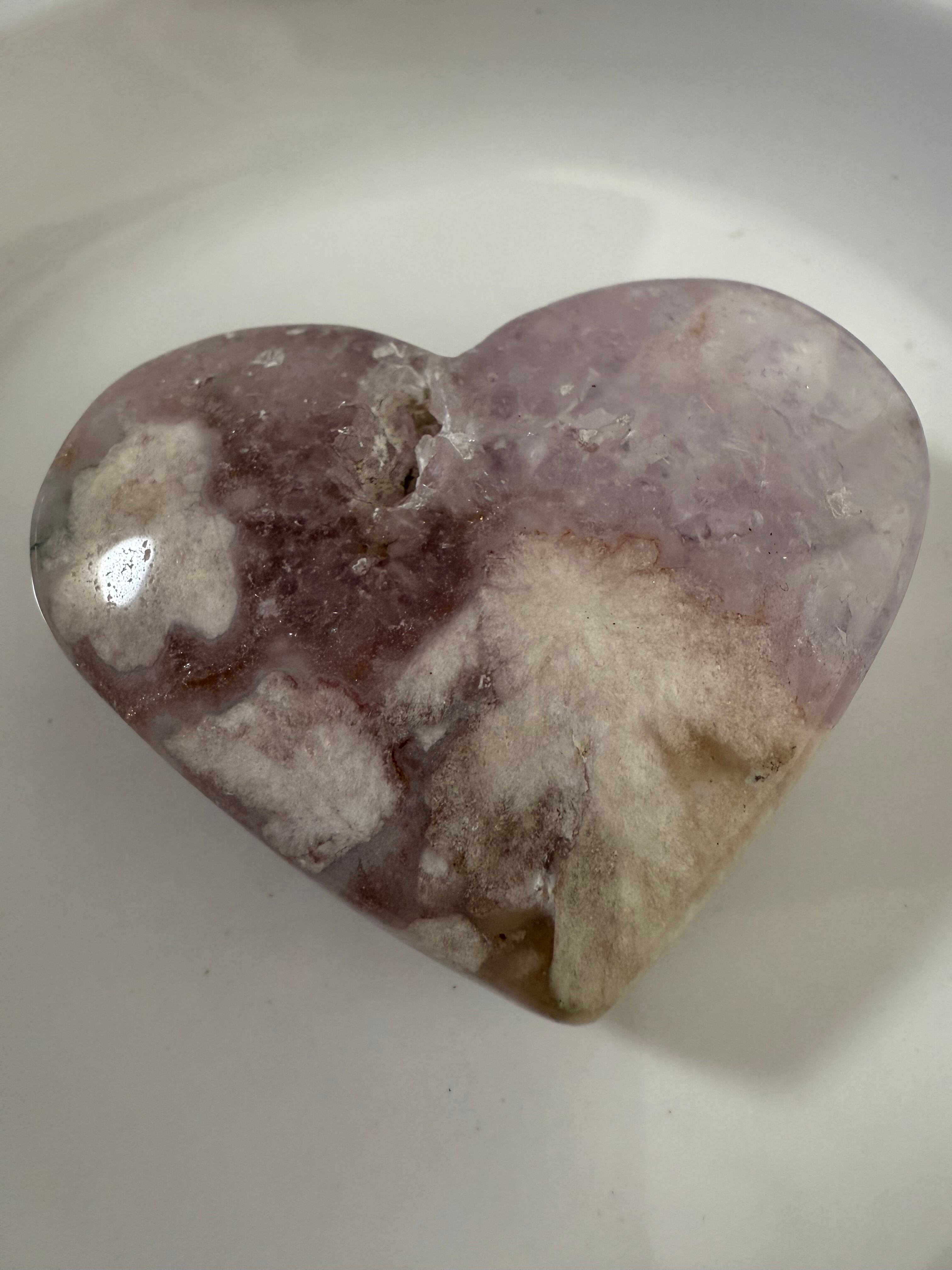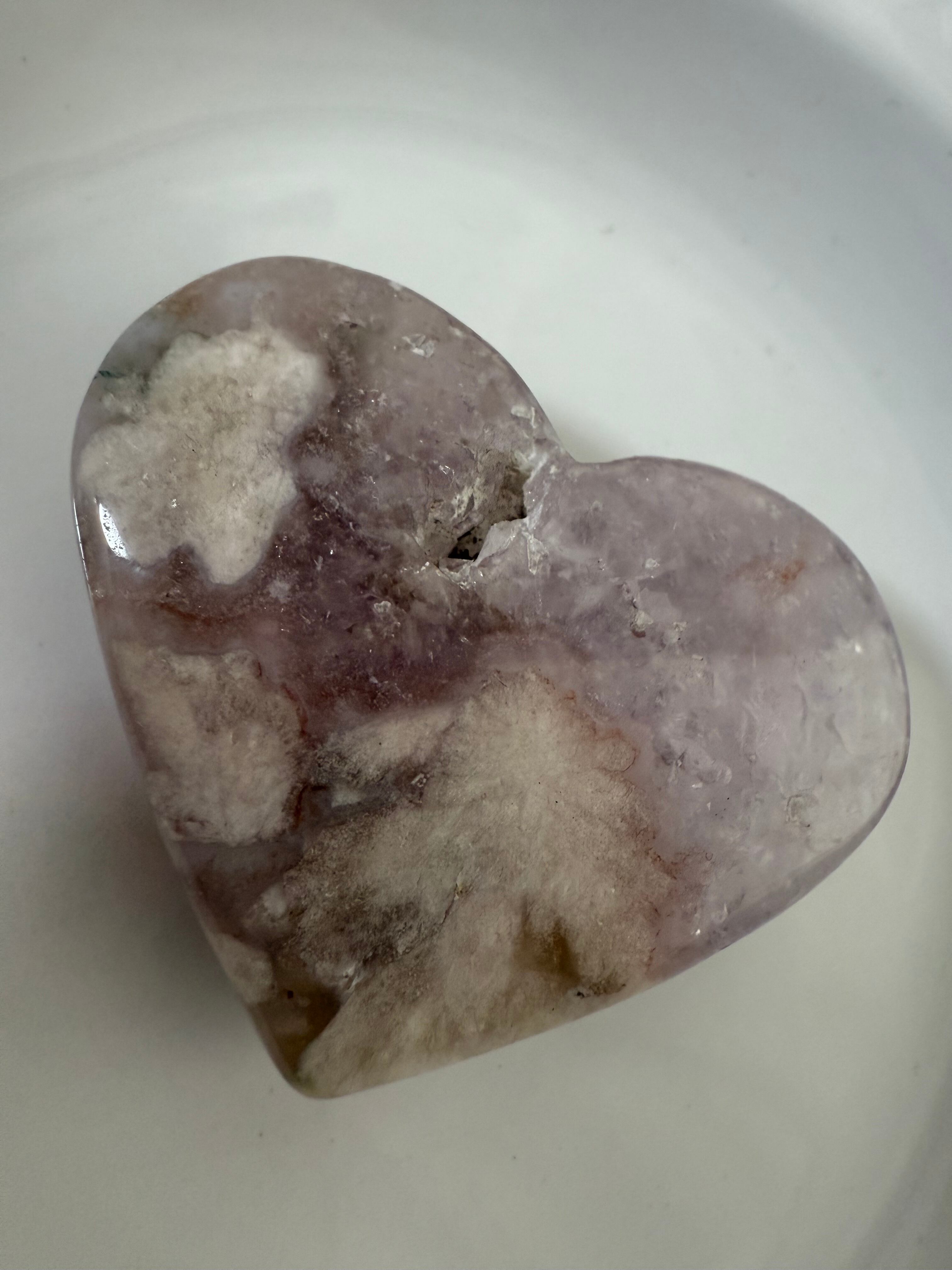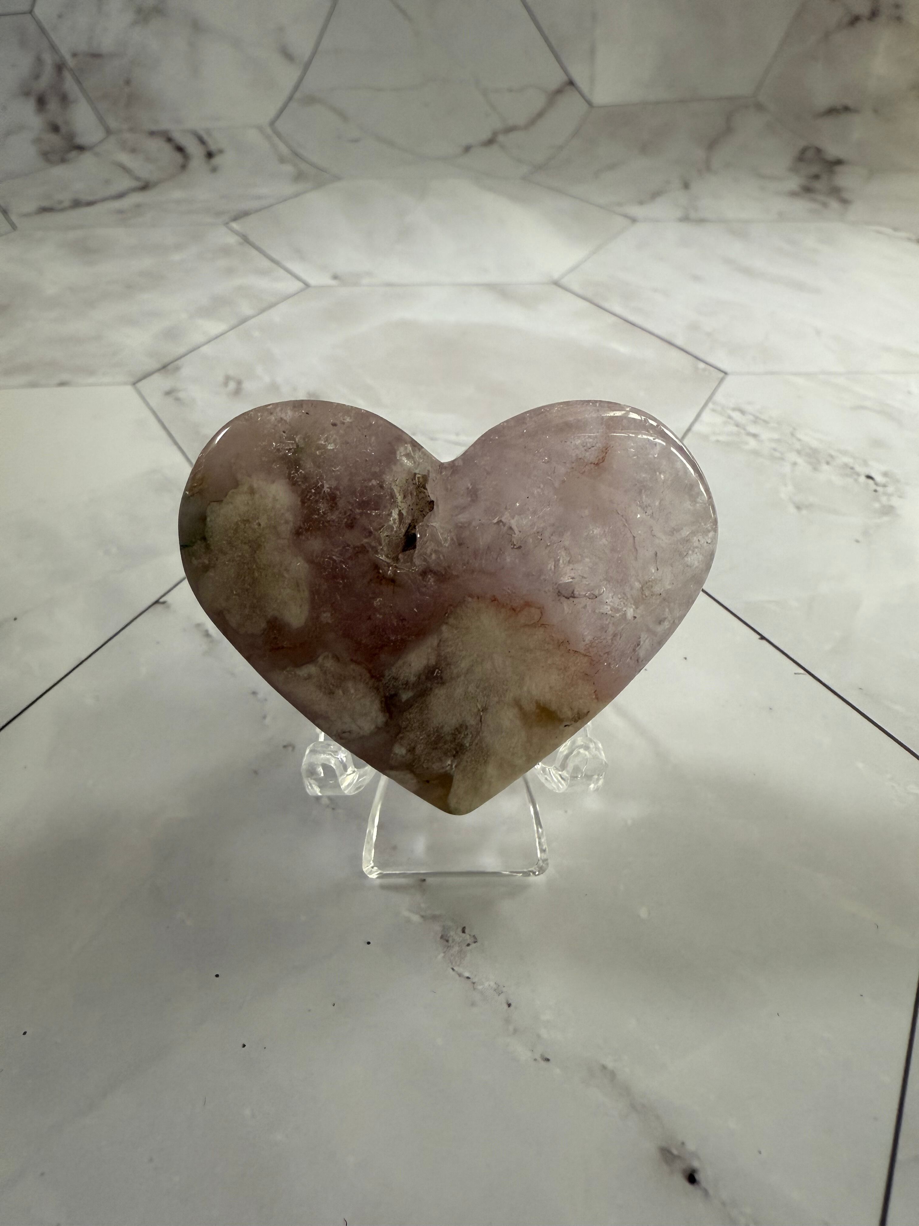 桜瑪瑙のハートのパム(透明の台座付き)置物・天然石【少しジォード入り】