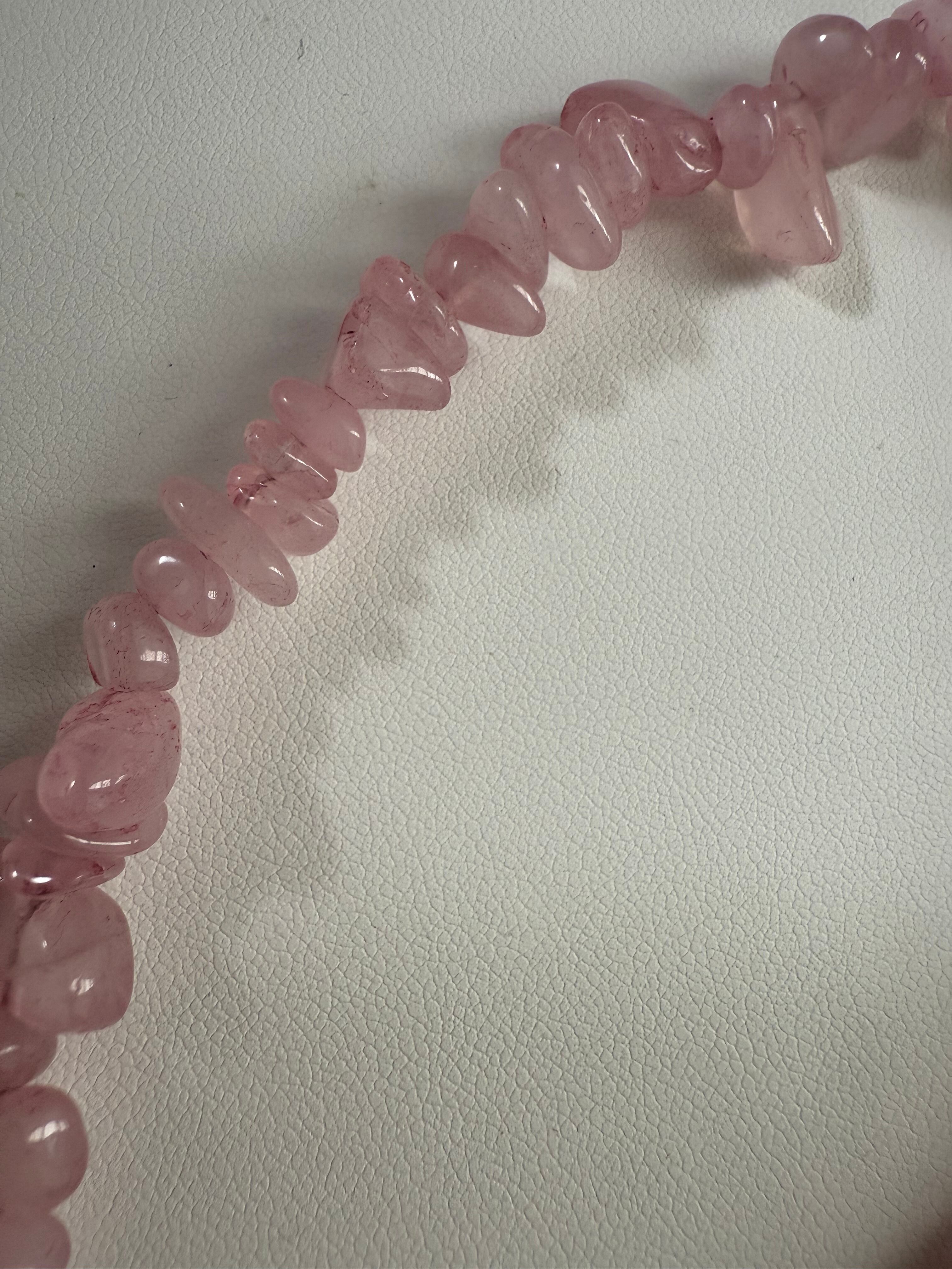 ローズクォーツの細石タイプのキーホルダー 天然石 パワーストーン ストラップ キーリング