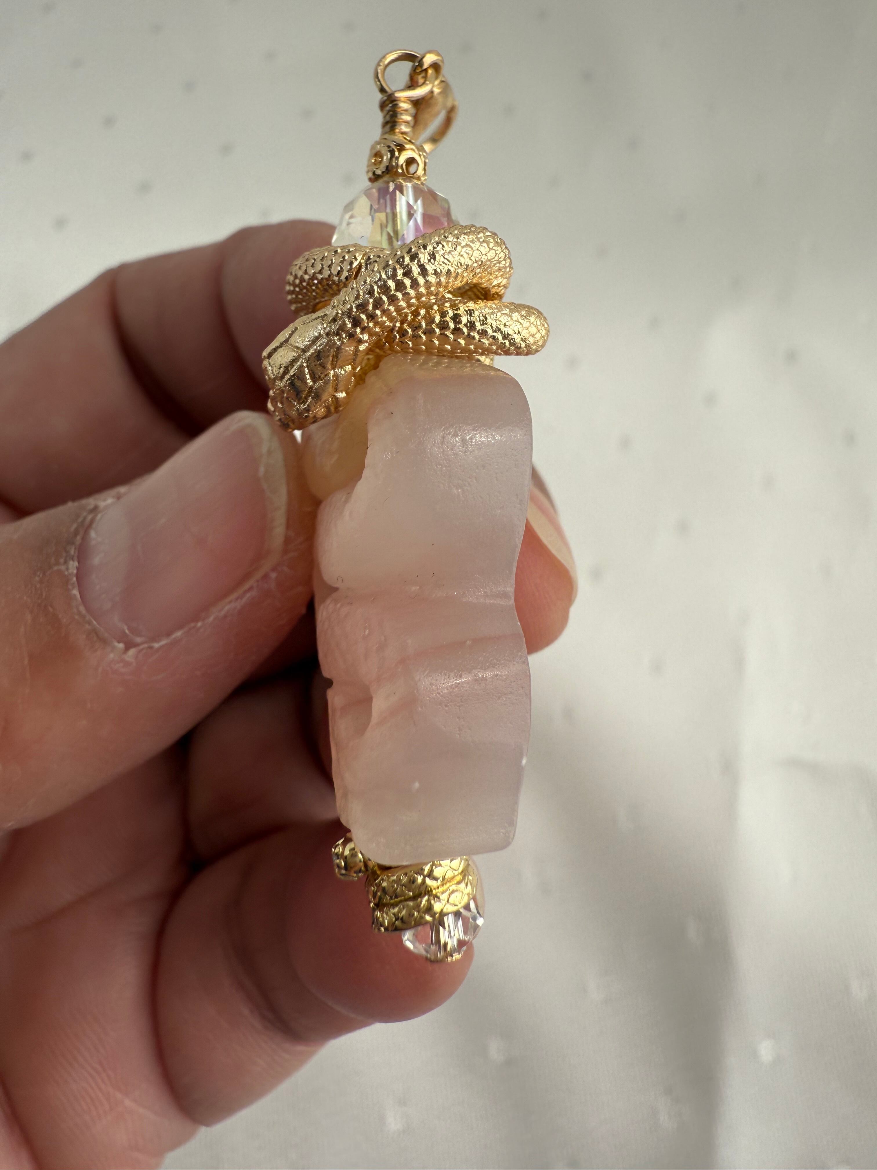ピンクカルサイトのヘビモチーフのチャーム 天然石 パワーストーン 彫物 置物