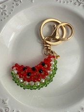 スイカモチーフのガラスビーズのキーリング