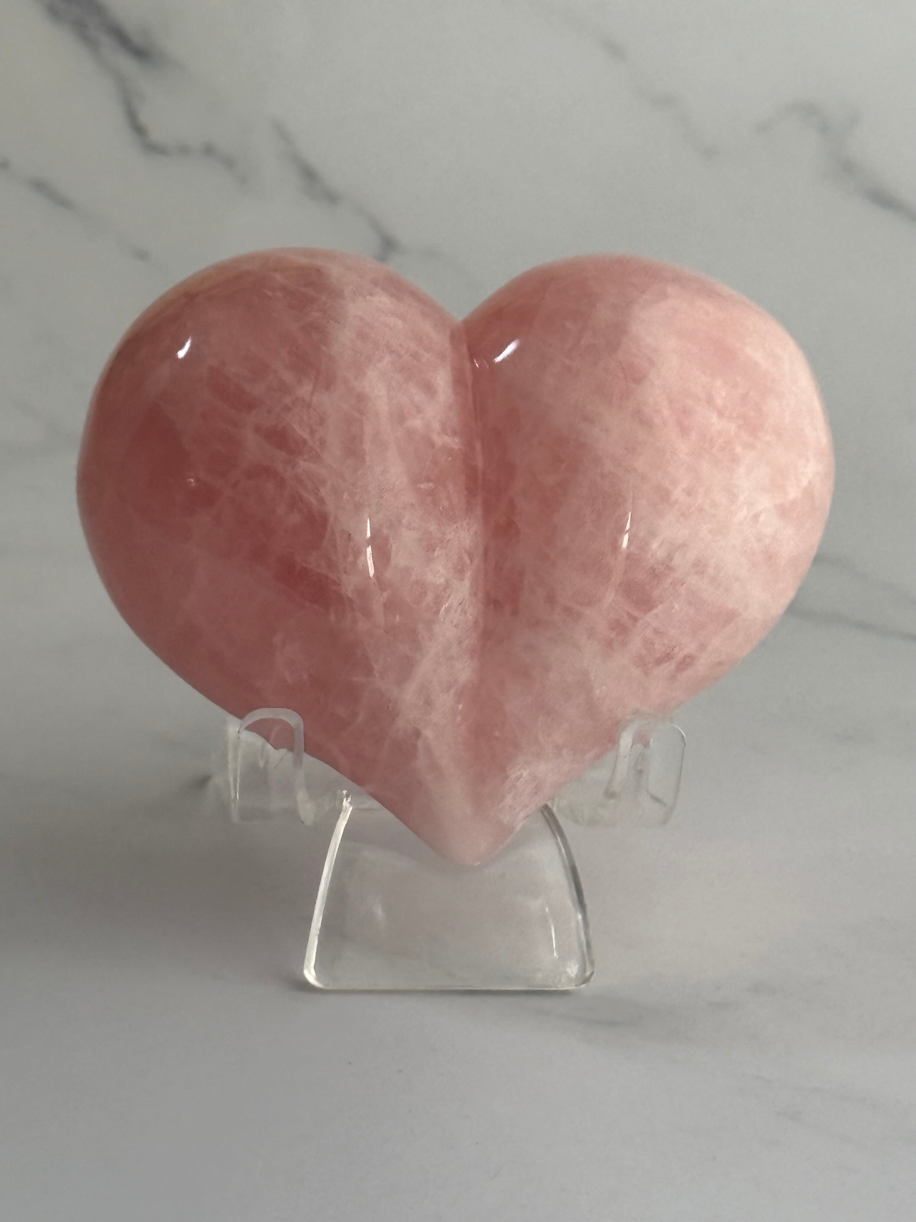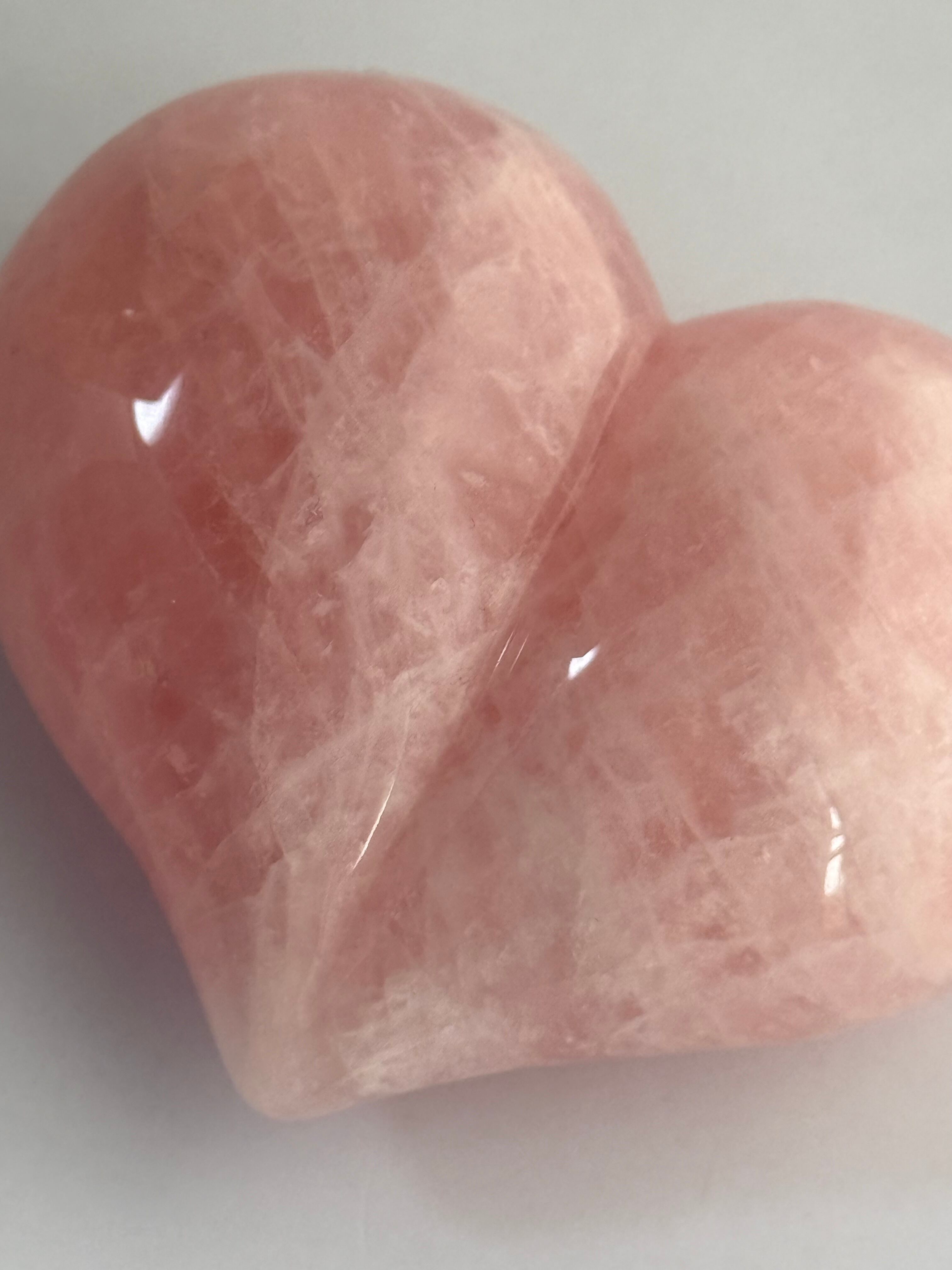 ローズクォーツのぷっくりハートの置物 天然石 彫物 パワーストーン︎
