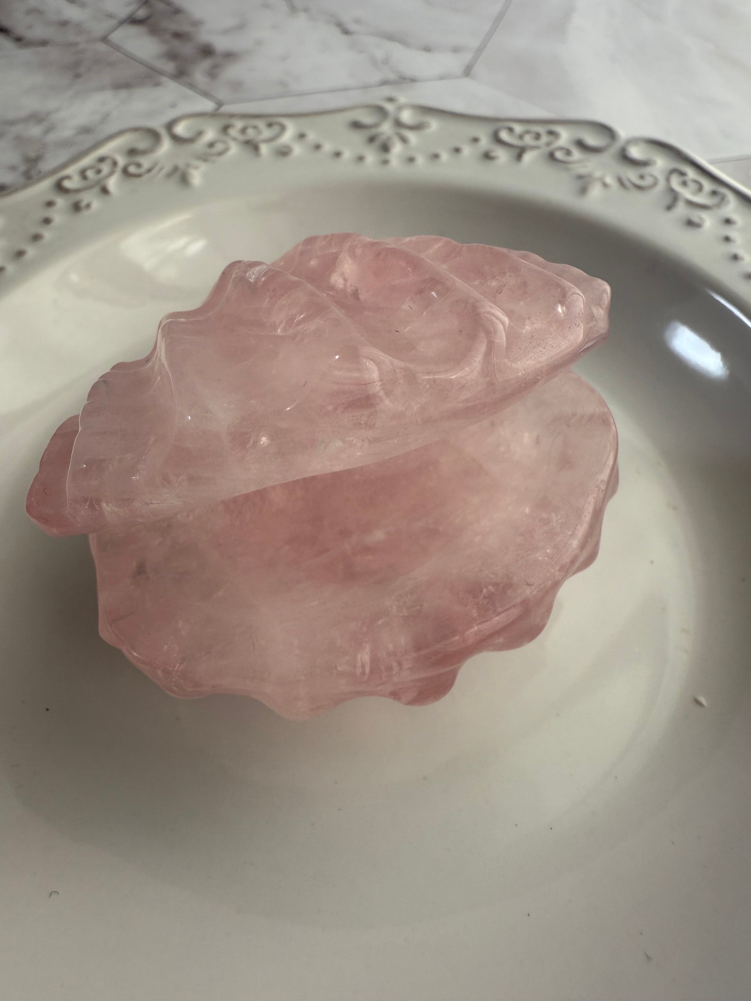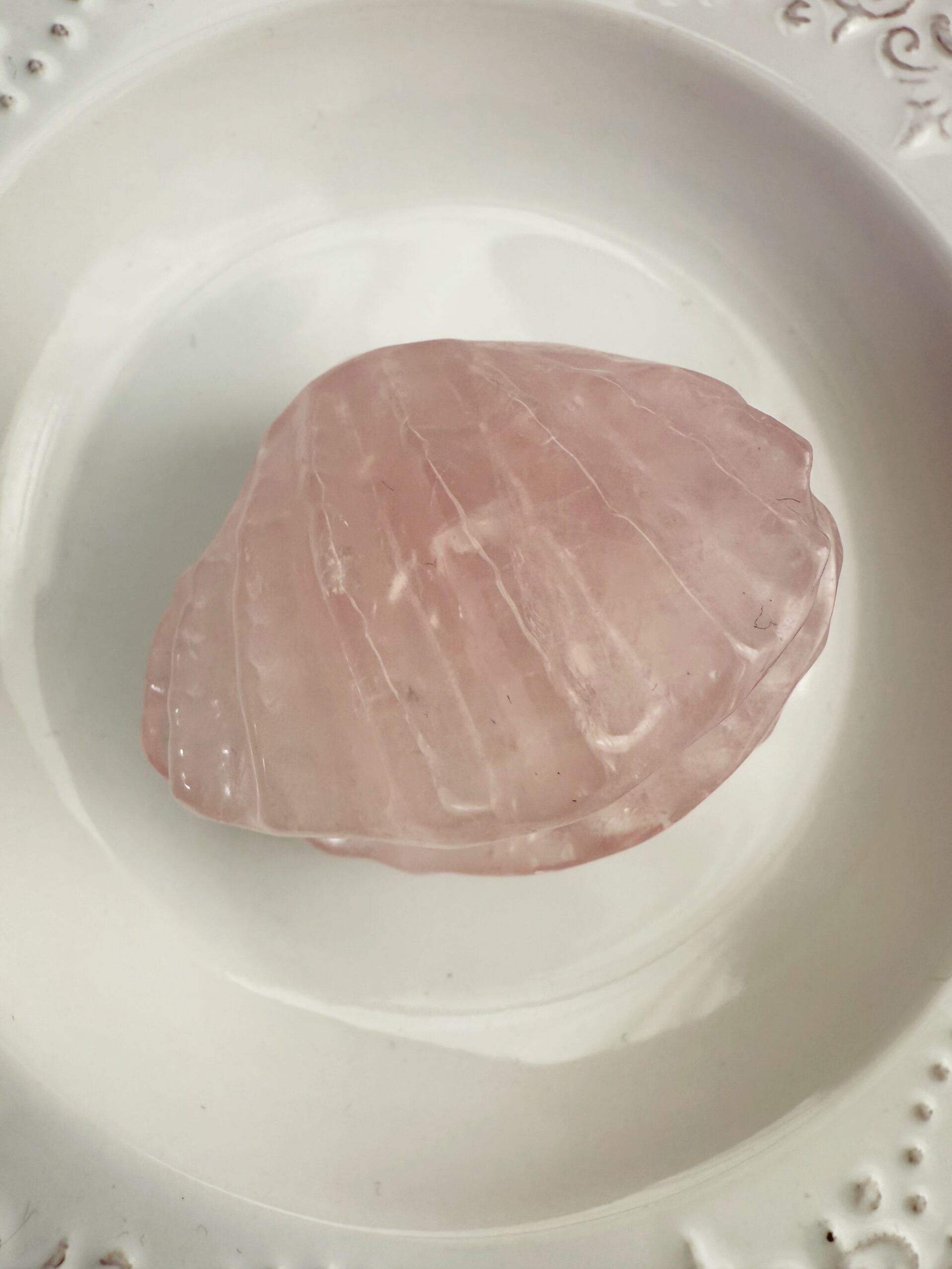 ローズクォーツの貝の置物 天然石 彫物 パワーストーン︎