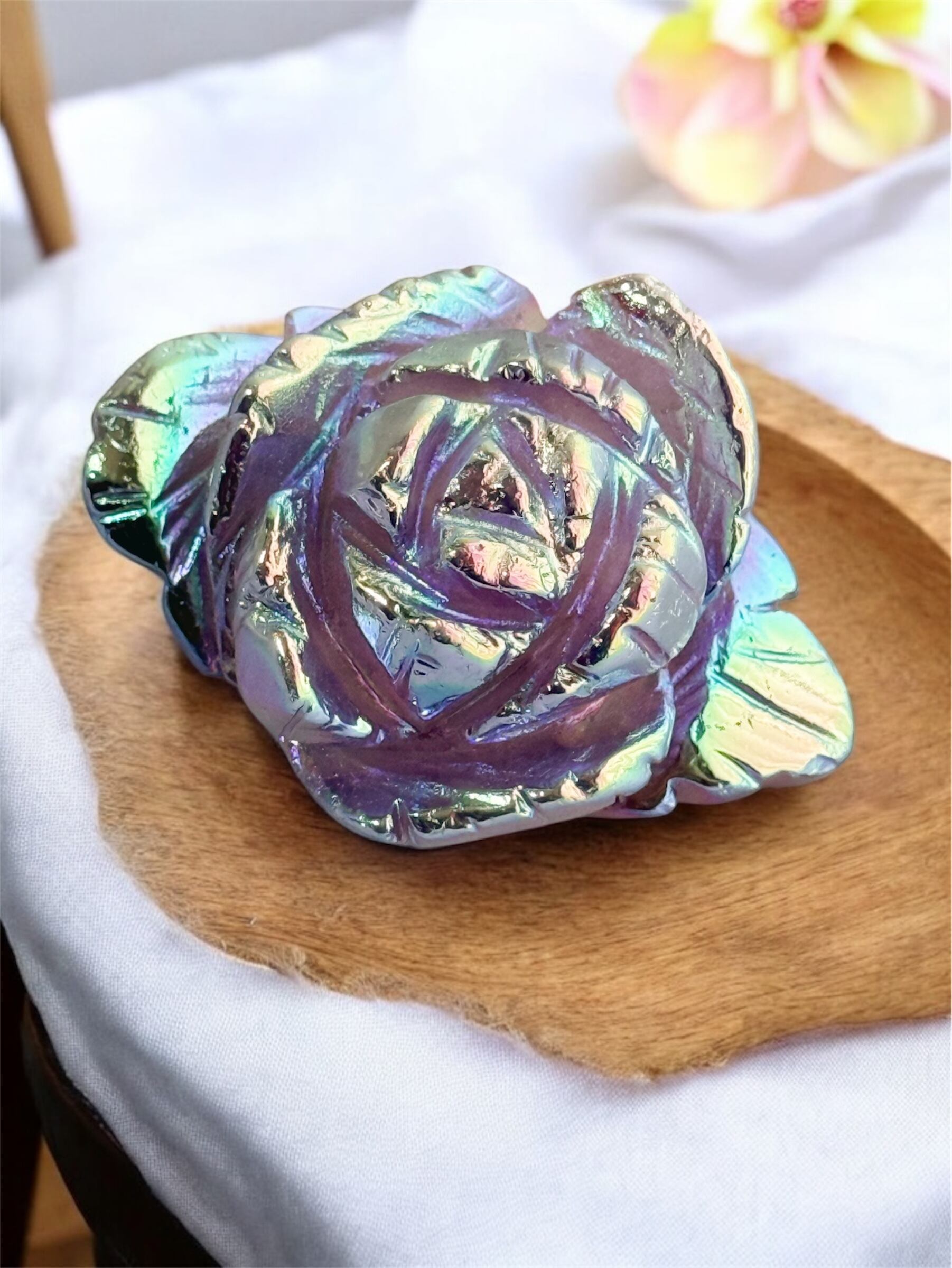 アメジストオーラのバラ置物 天然石 原石 パワーストーン