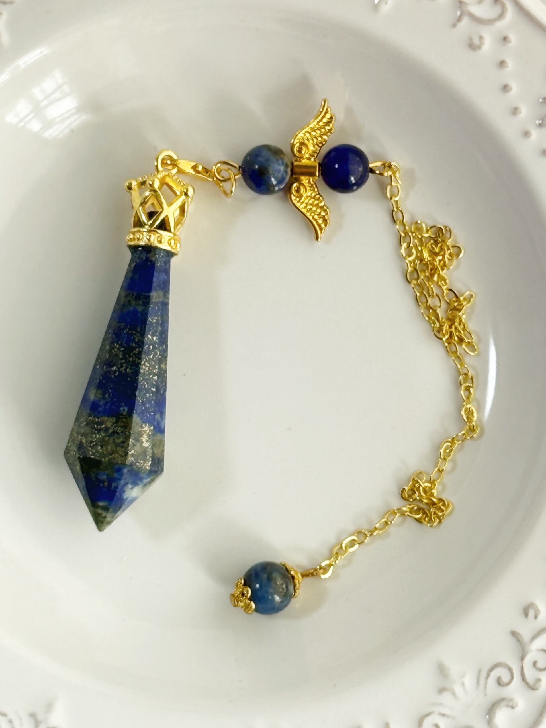 ラピスラズリのおしゃれな天使デザイン・ペンデュラム彫り物 天然石 パワーストーン︎