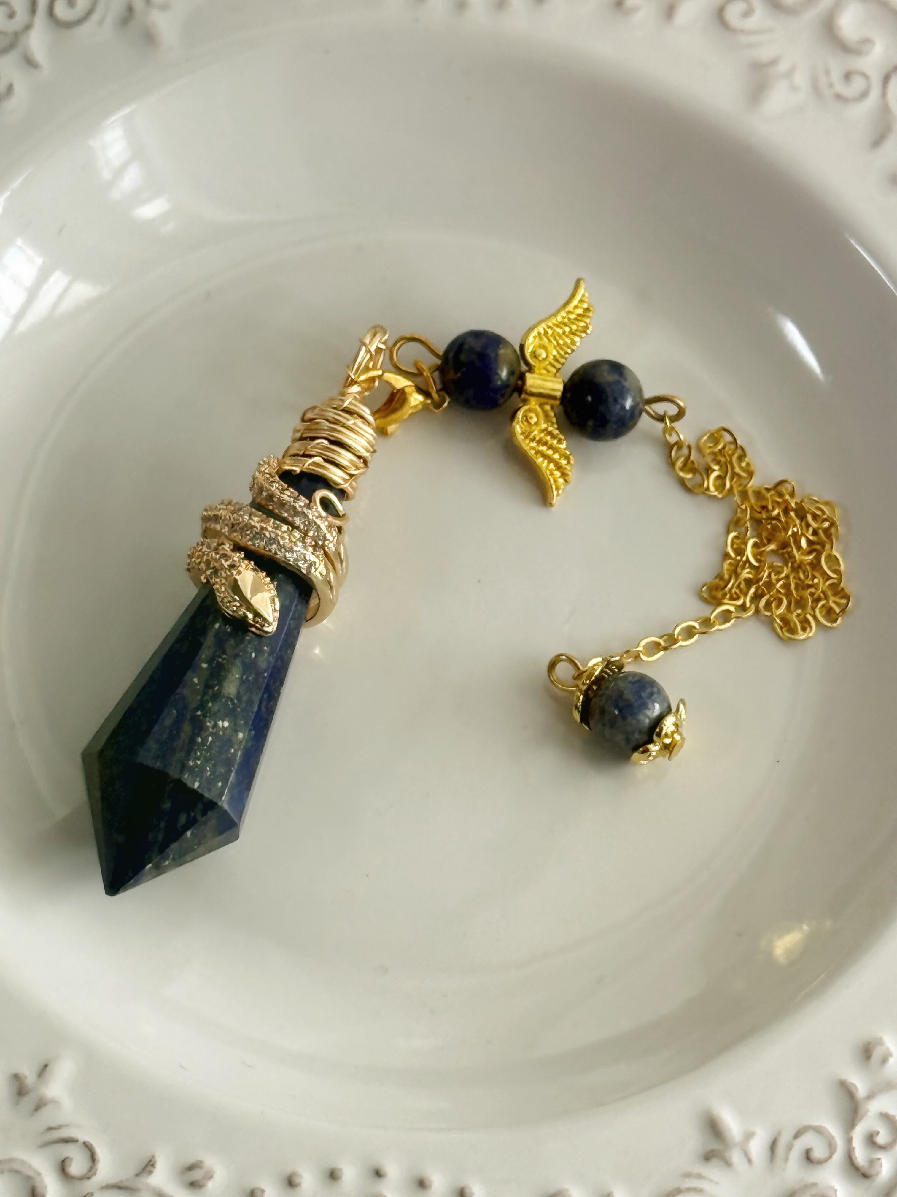 ラピスラズリのおしゃれな天使デザイン・ペンデュラム彫り物 天然石 パワーストーン︎