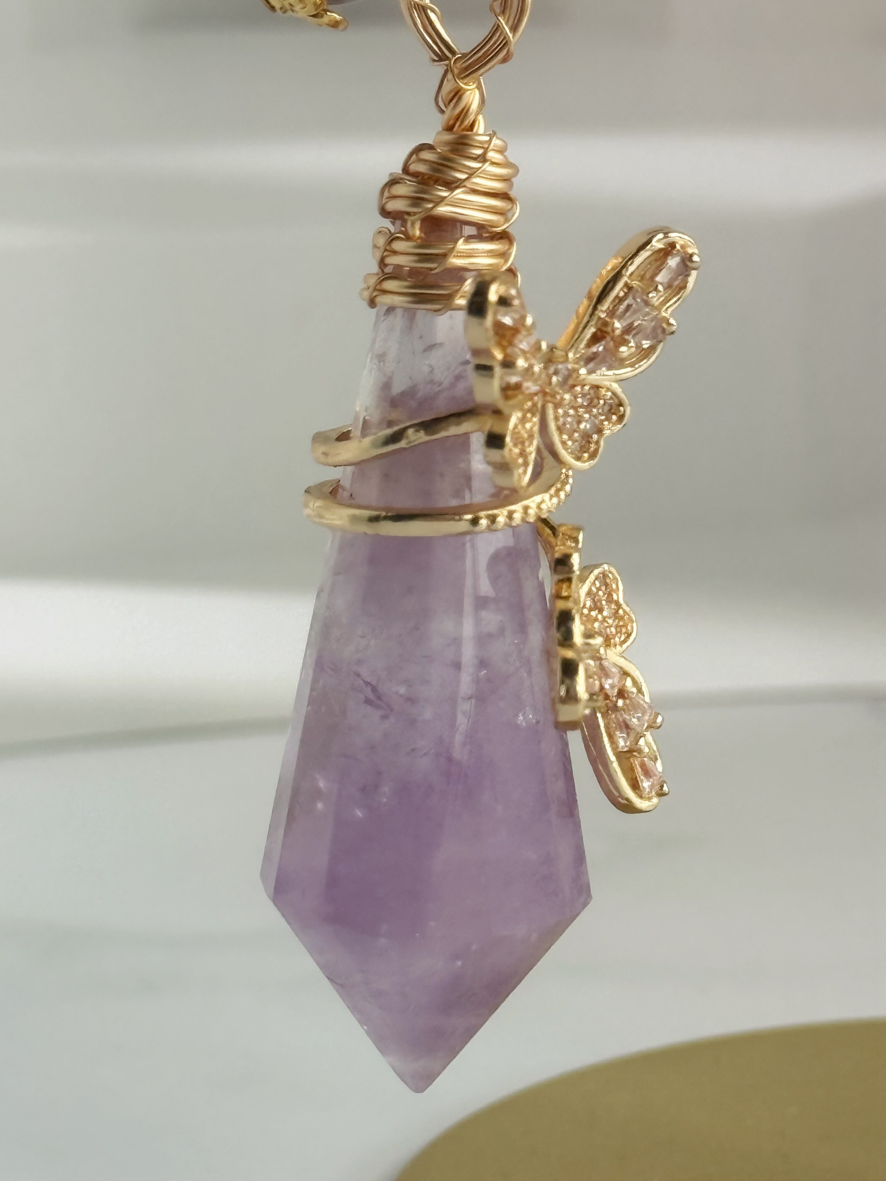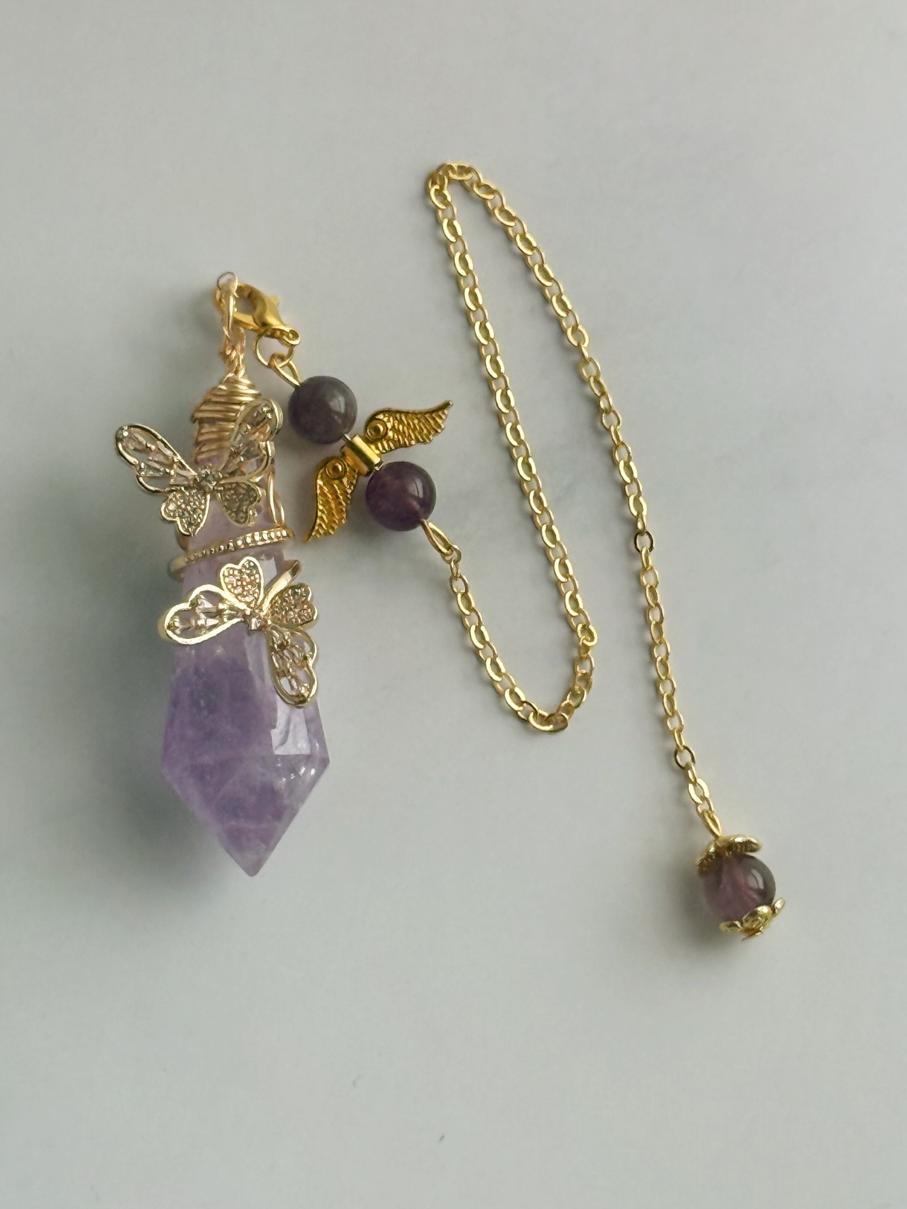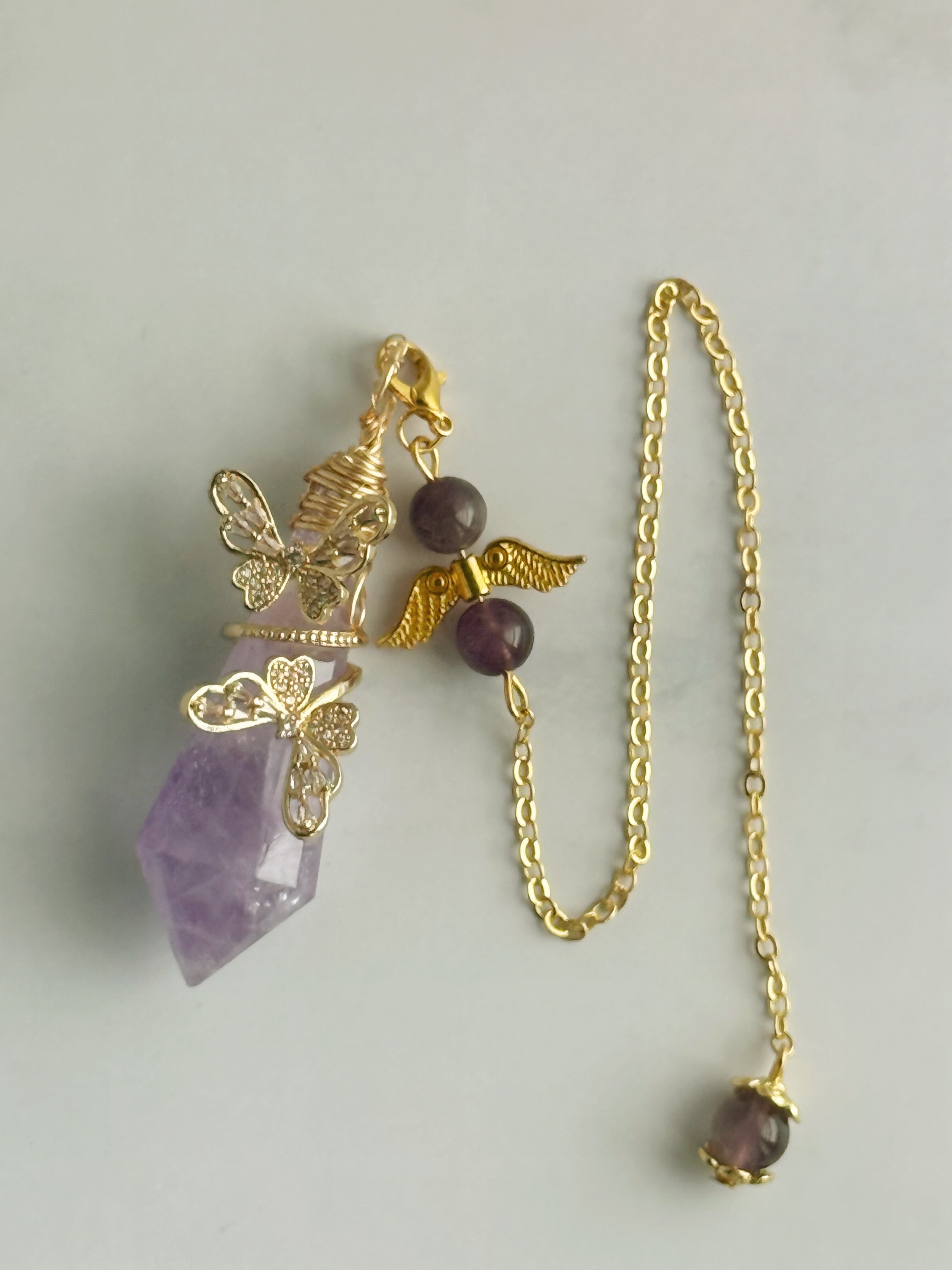 アメジストのおしゃれな天使デザイン・ペンデュラム 彫り物 天然石 パワーストーン︎
