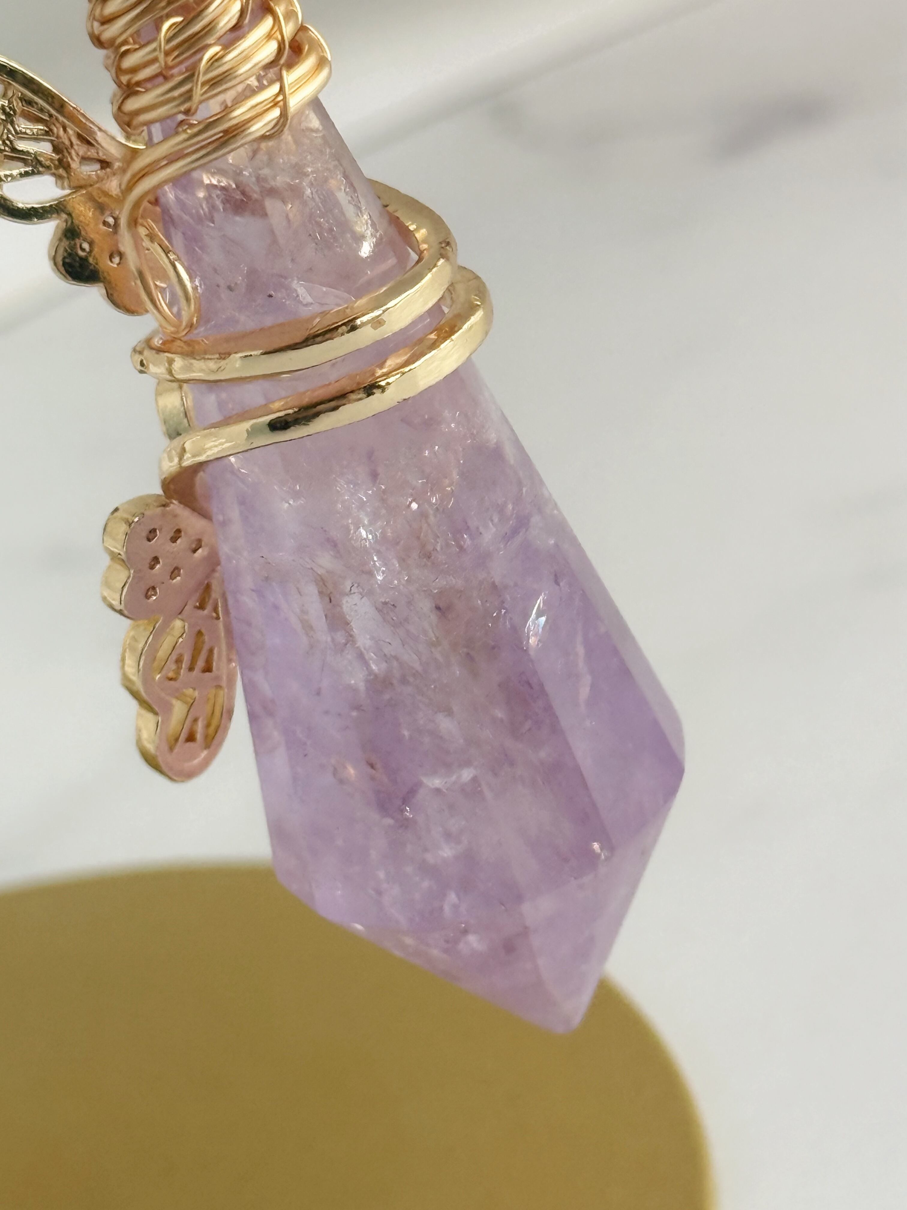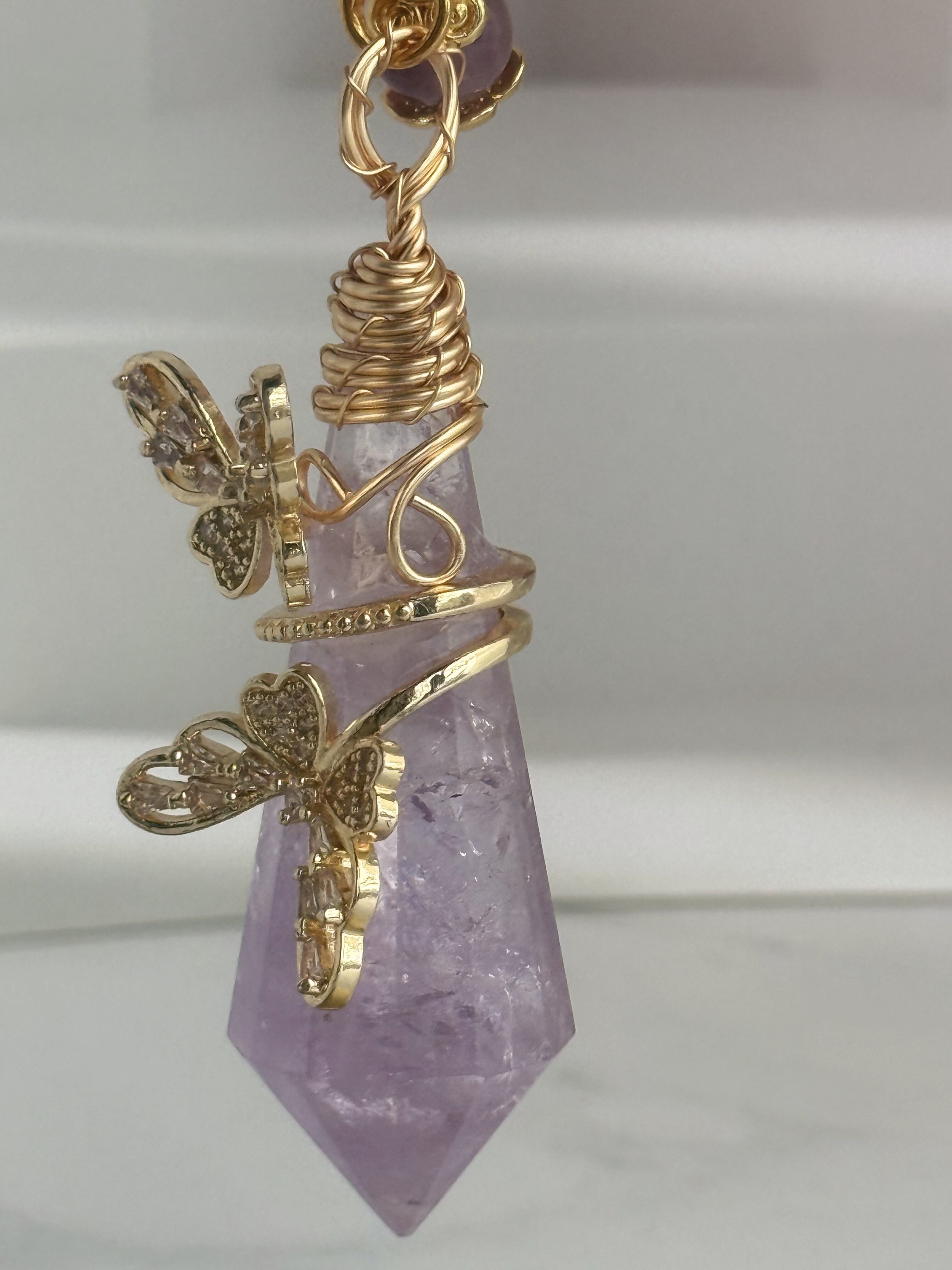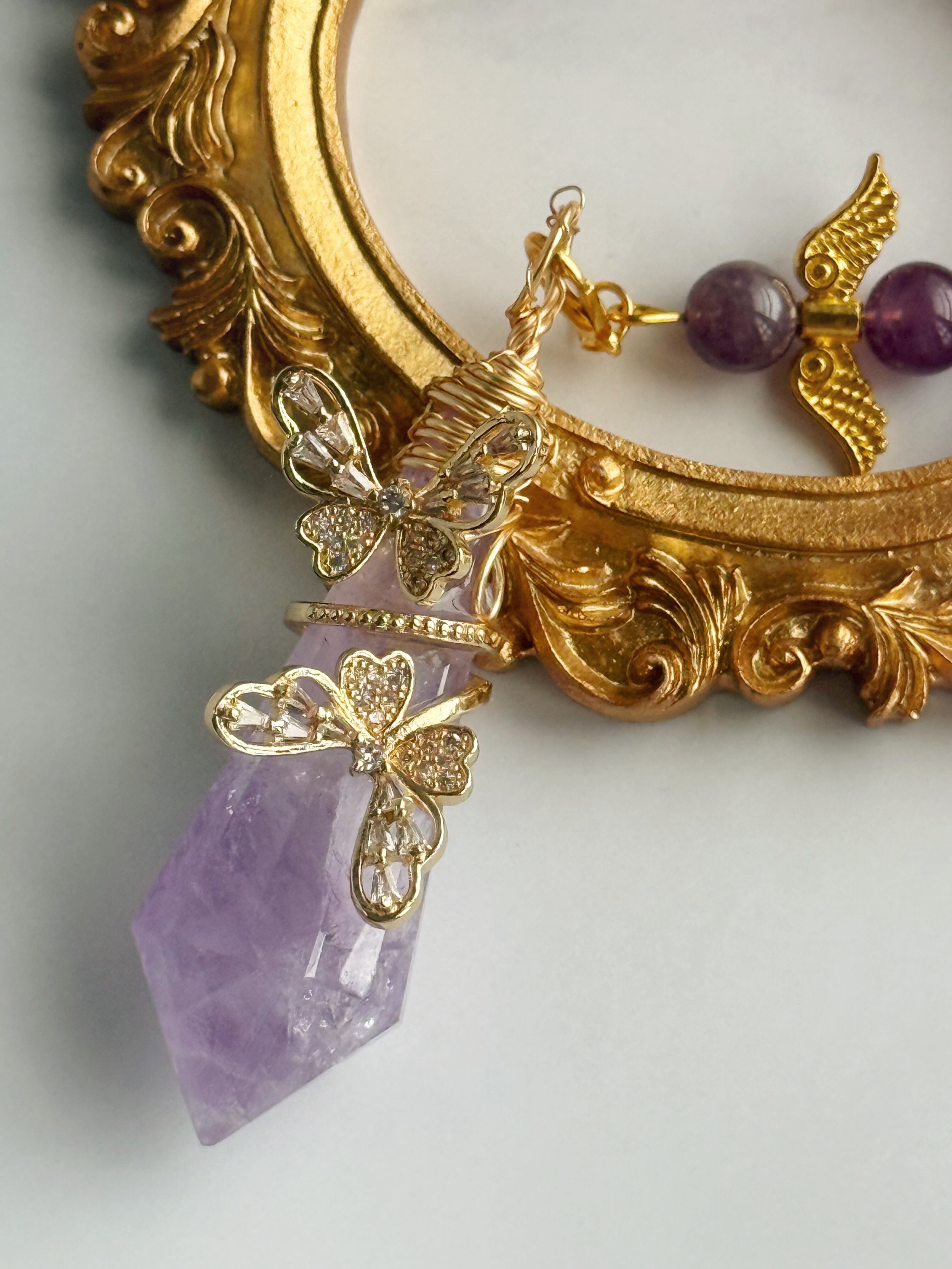 アメジストのおしゃれな天使デザイン・ペンデュラム 彫り物 天然石 パワーストーン︎