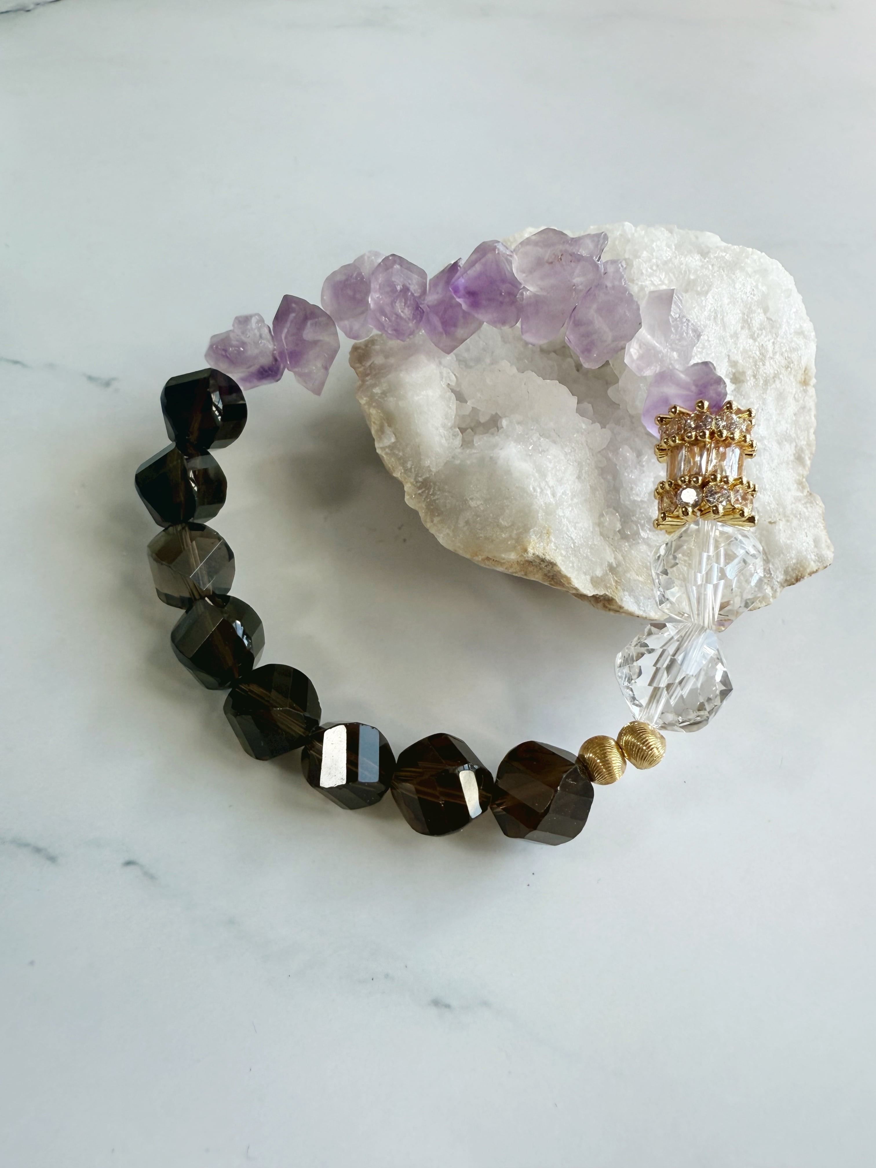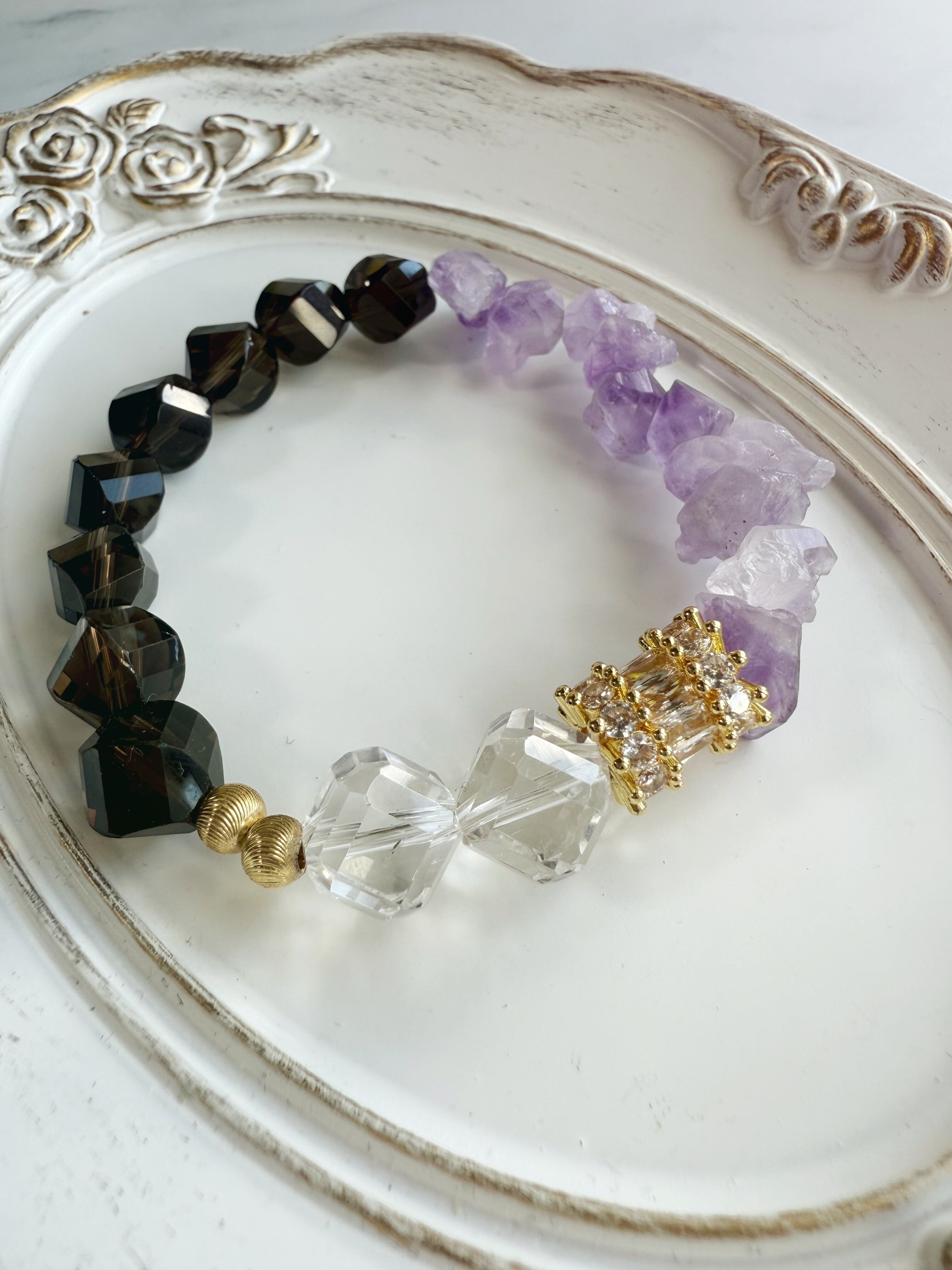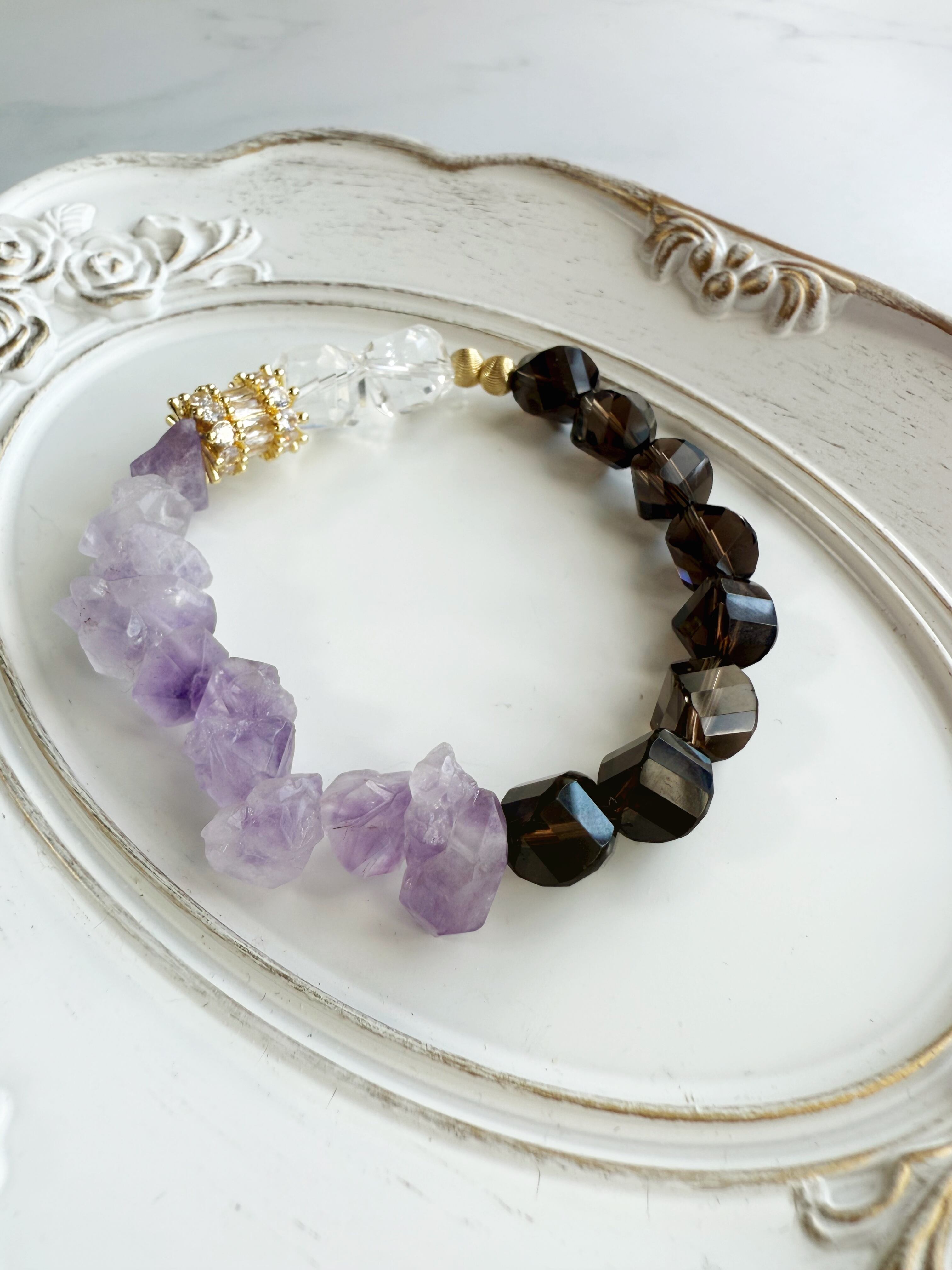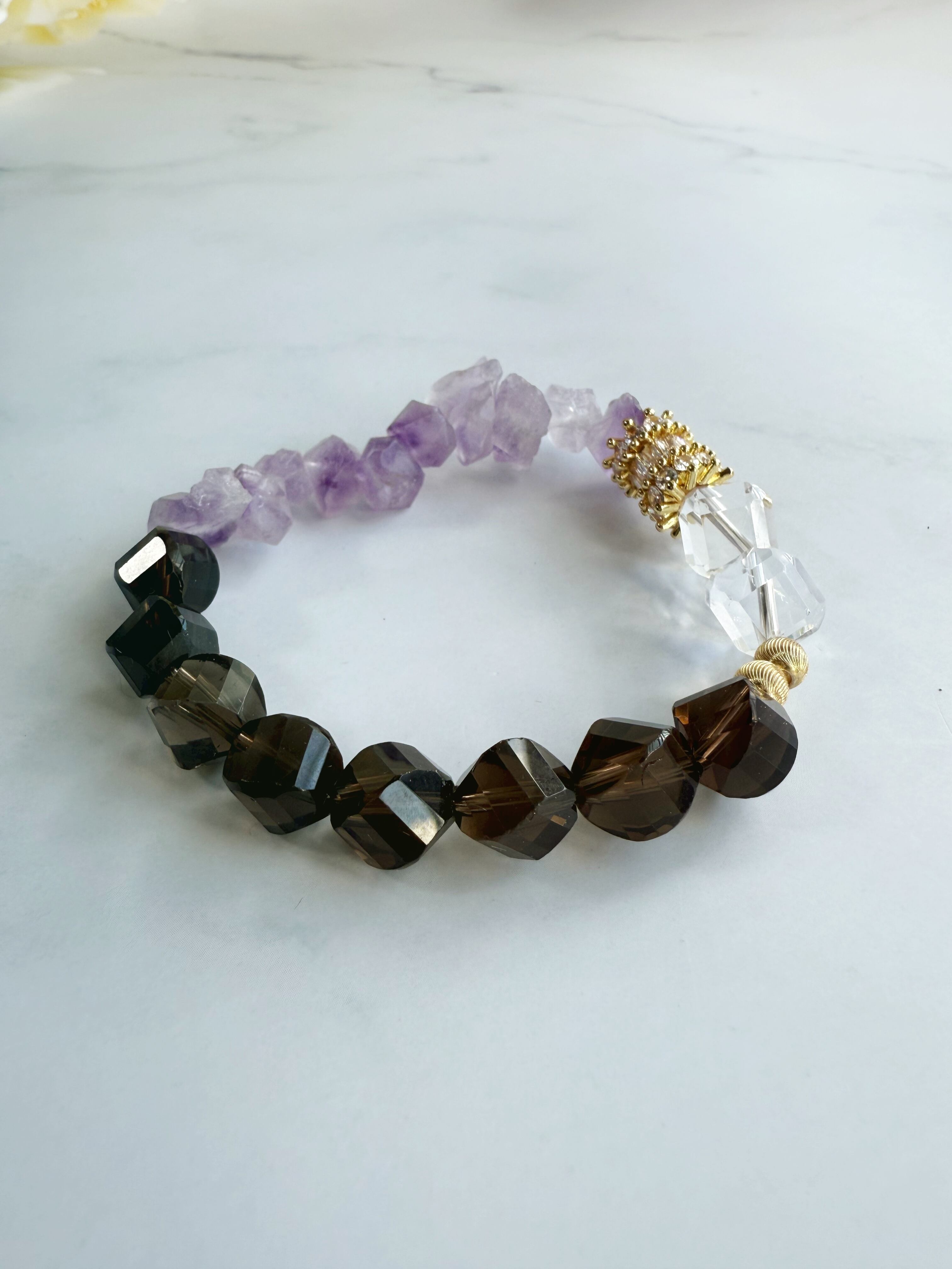 Myra(ミラ)のしずく 水晶 ×アメジスト原石カット スモーキークォーツ パワーストーン︎ 天然石 デザインブレスレット