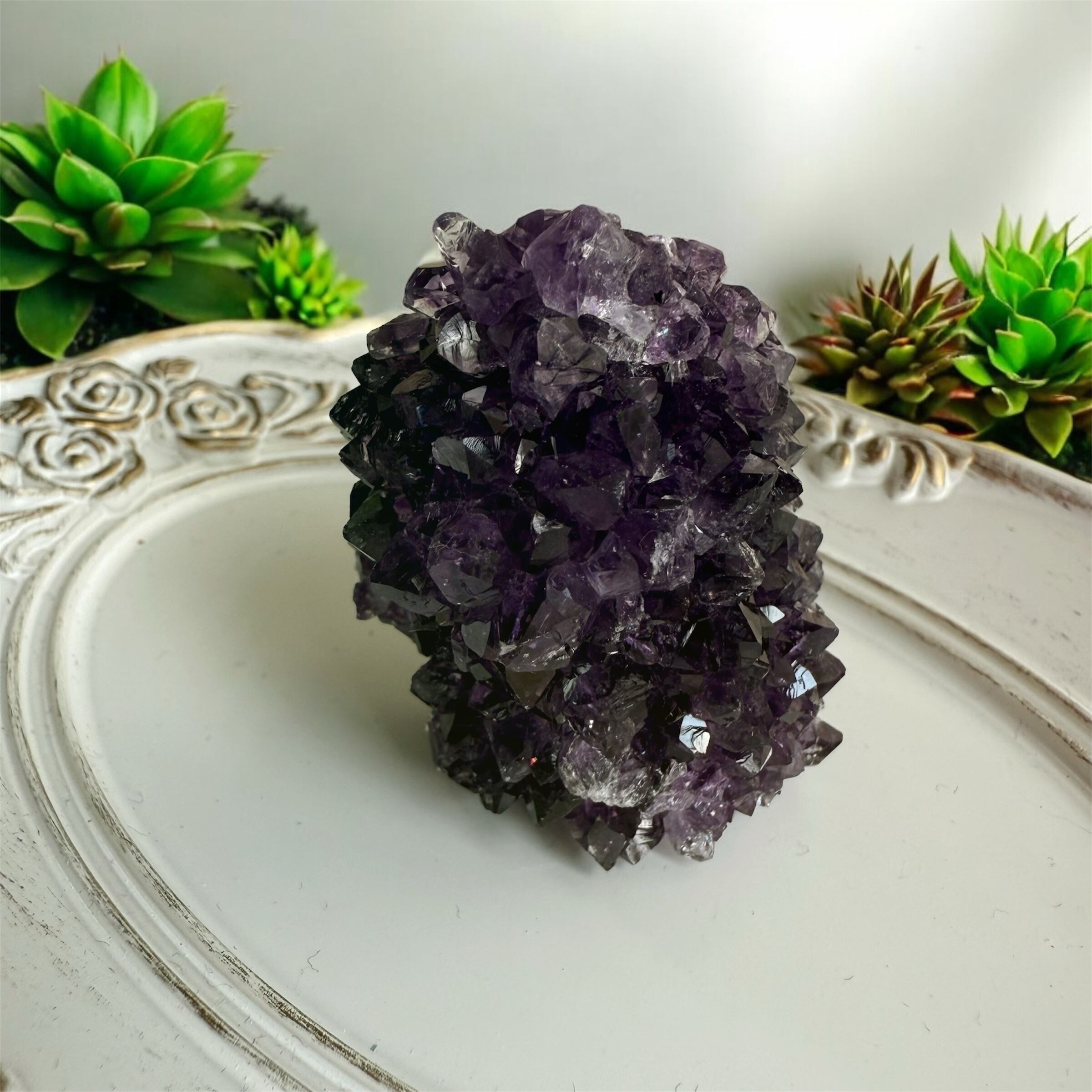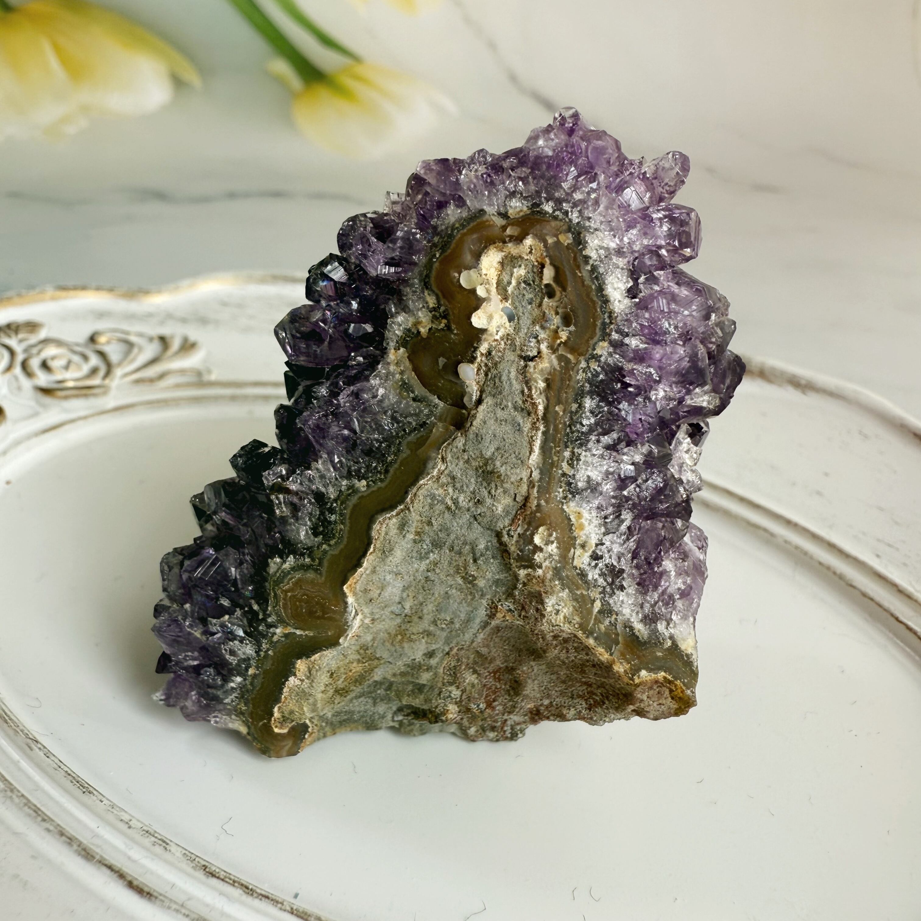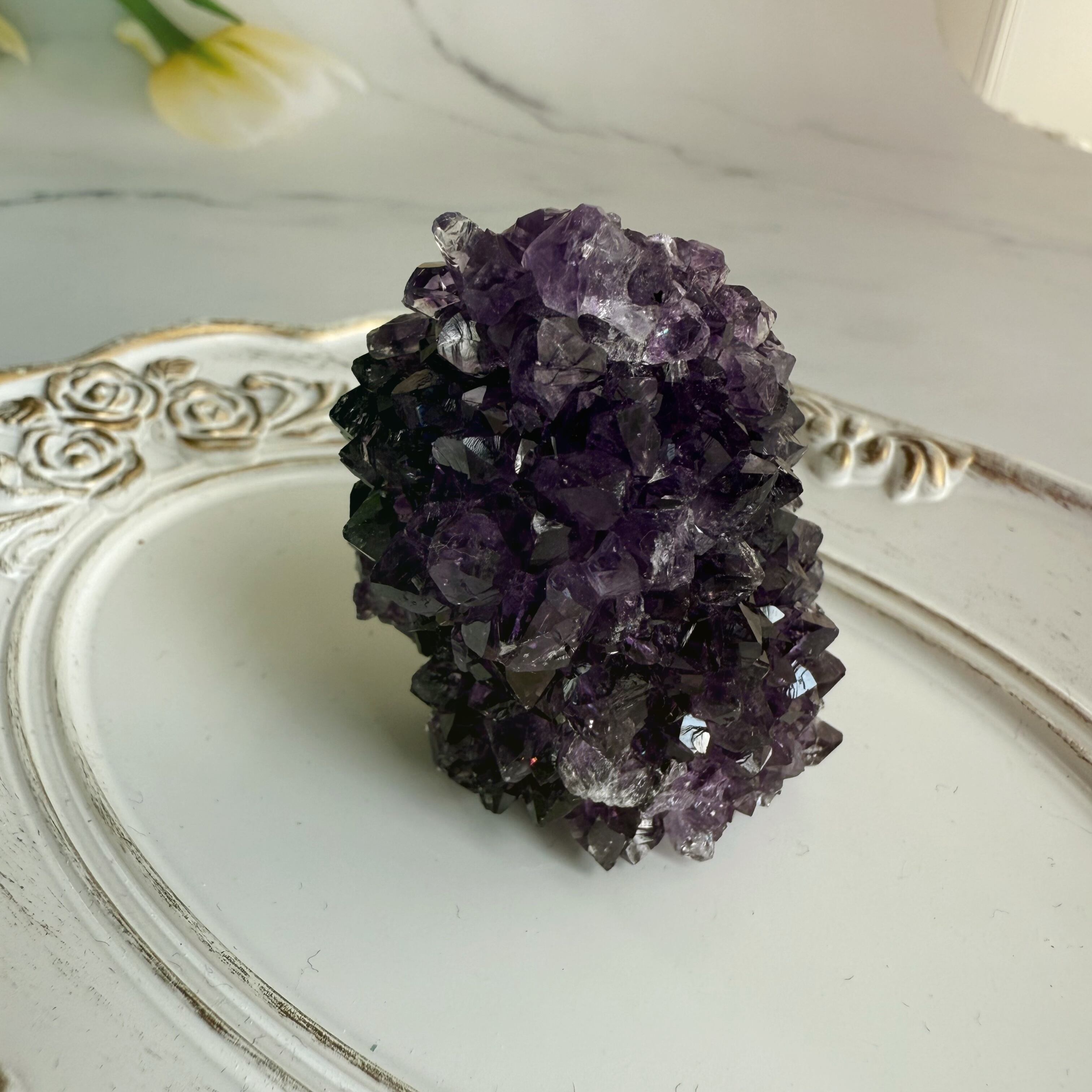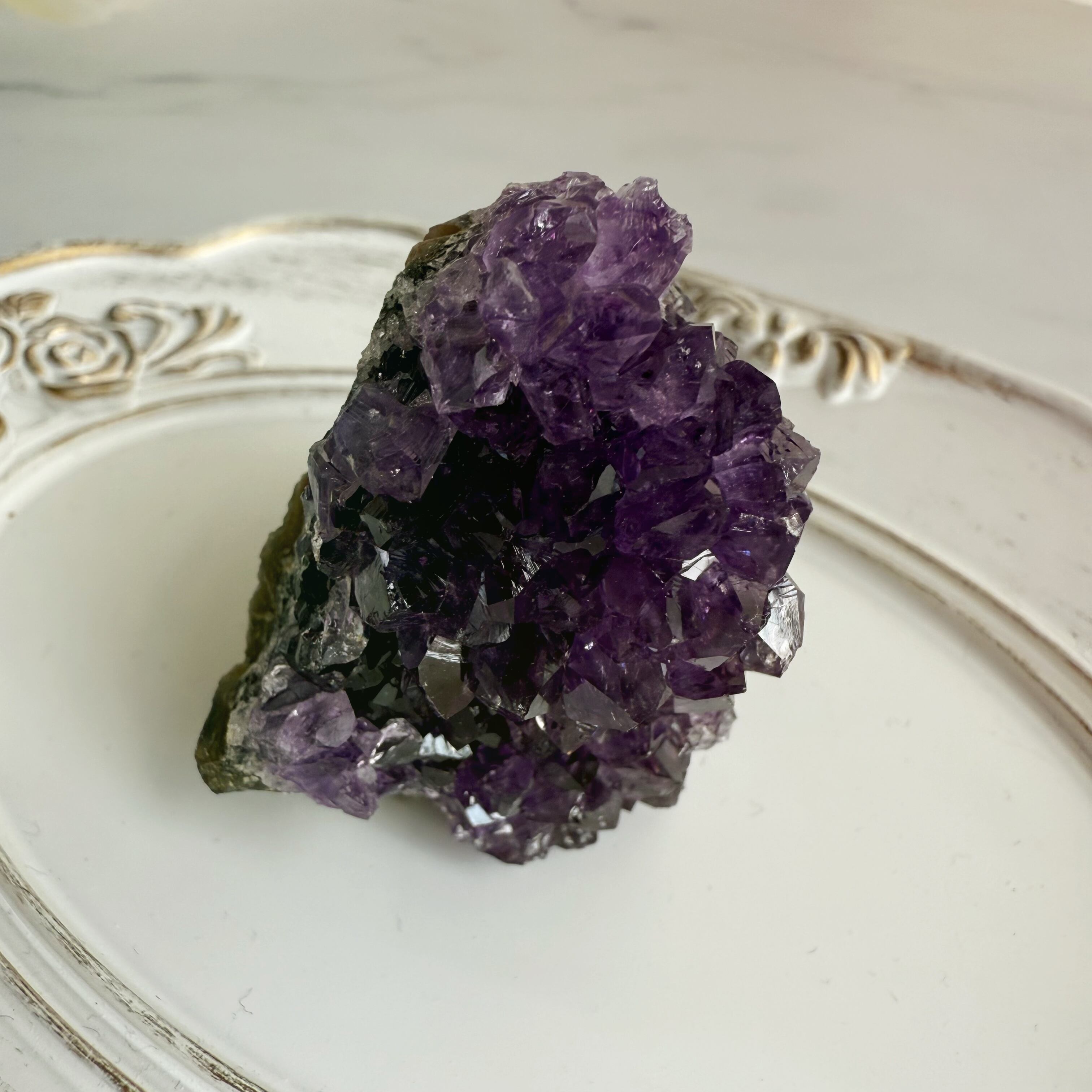 ウルグアイ産ならではの繊細な輝きを持つ、小さなアメジストクラスターです。
