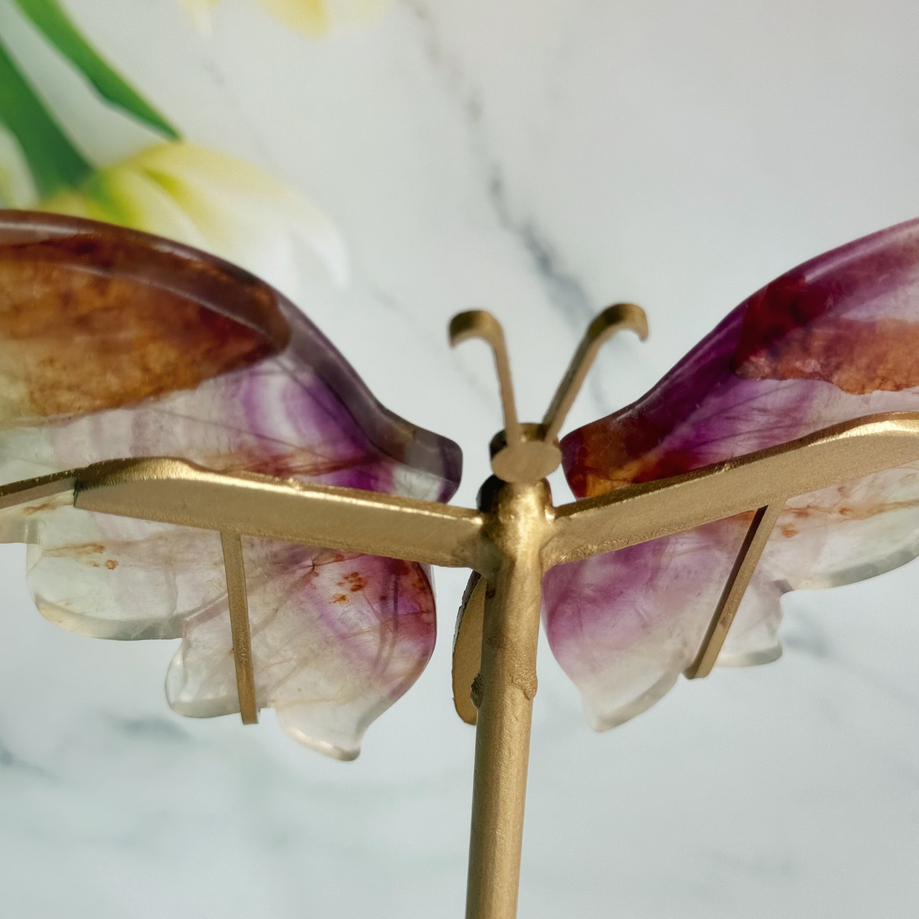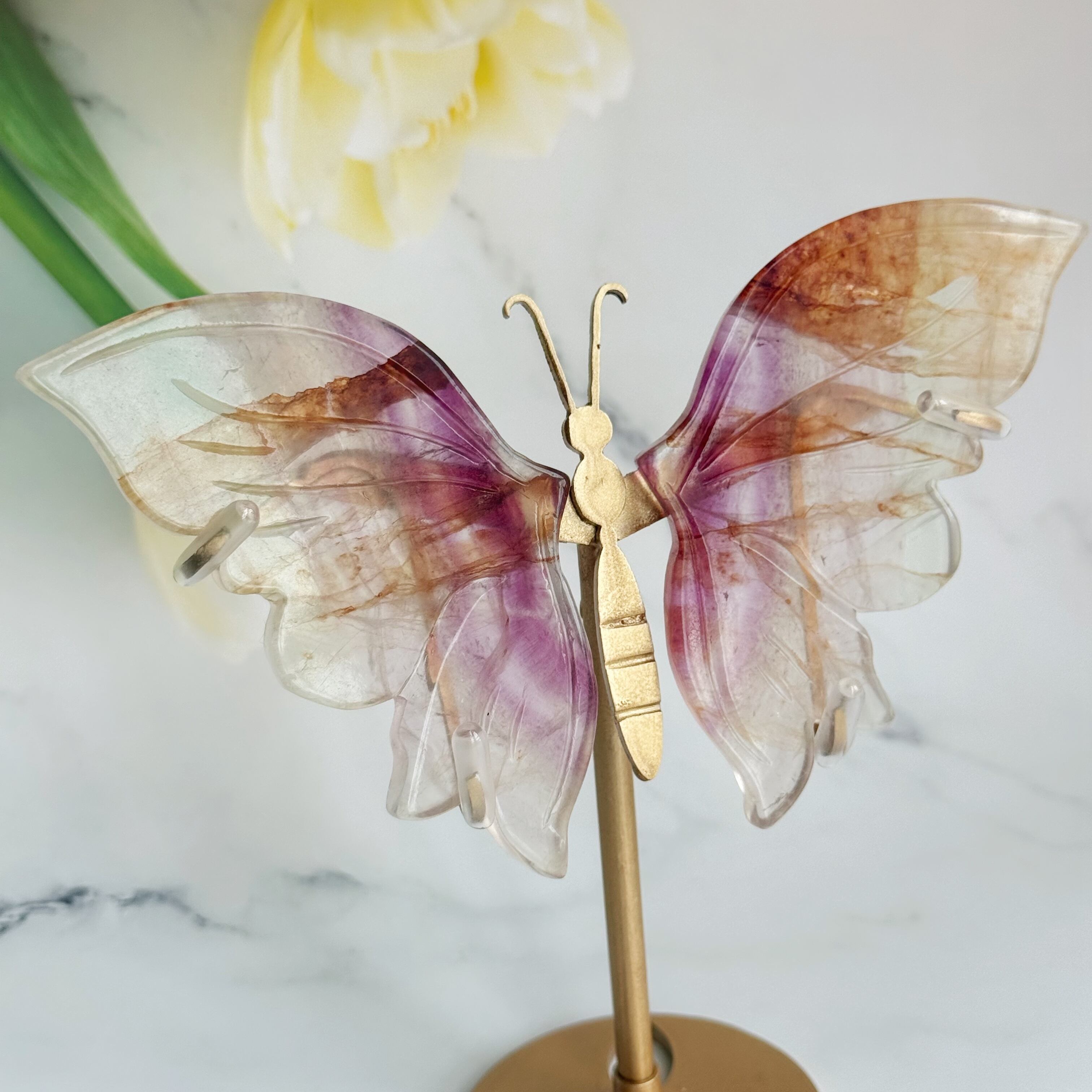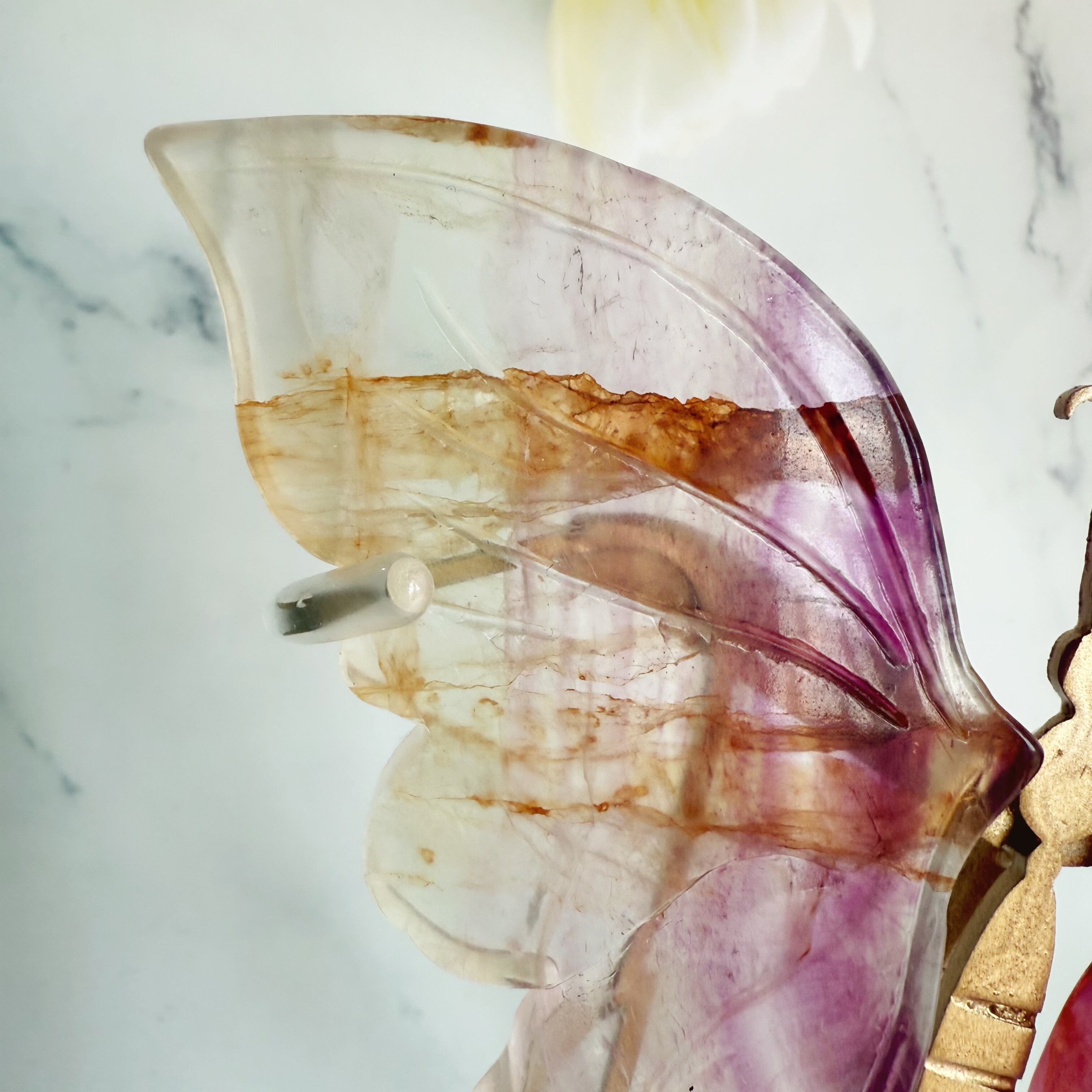 【透明感抜群】キャンディフローライト×ゴールデンヒーラの共生蝶々の置物 天然石 パワーストーン︎