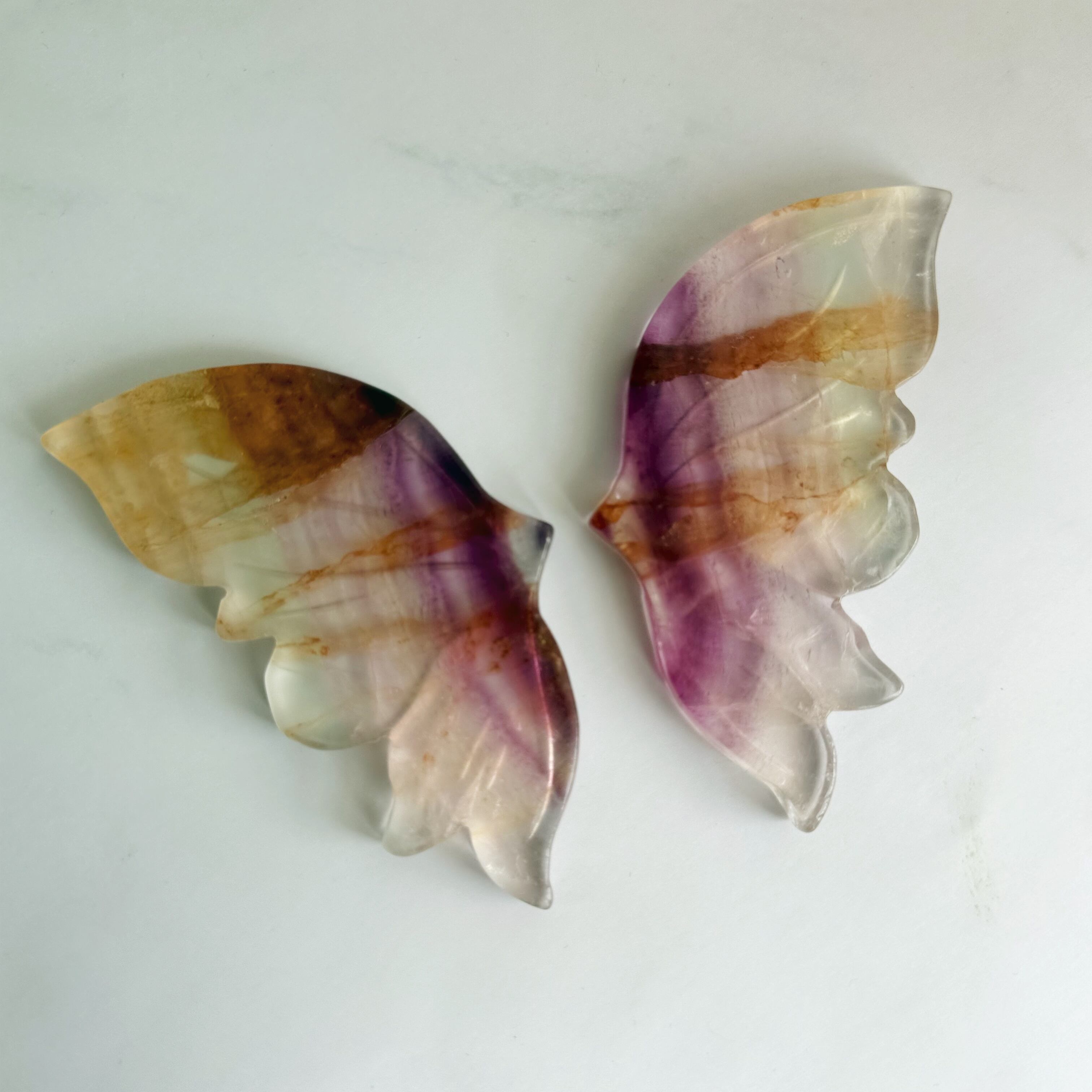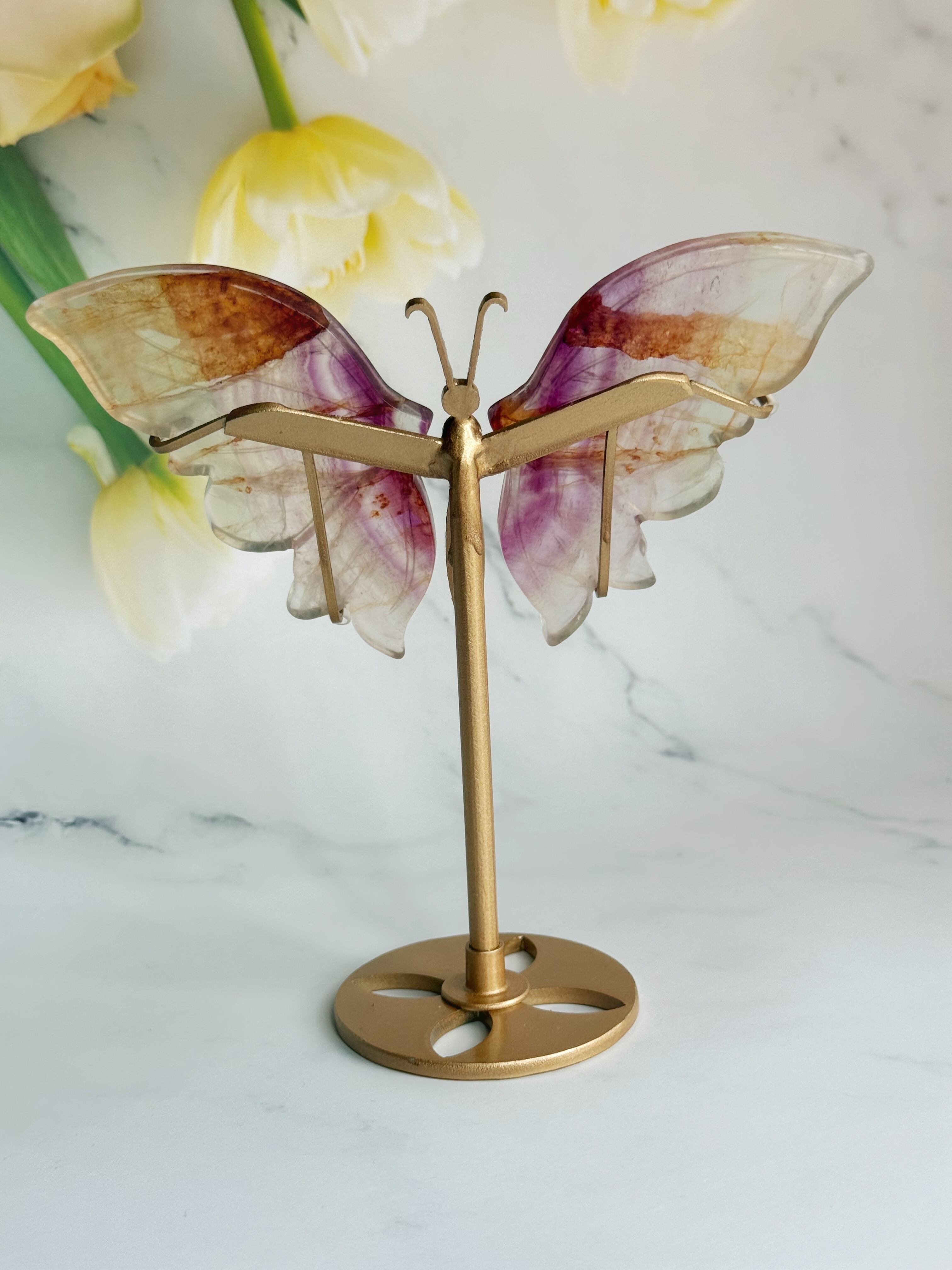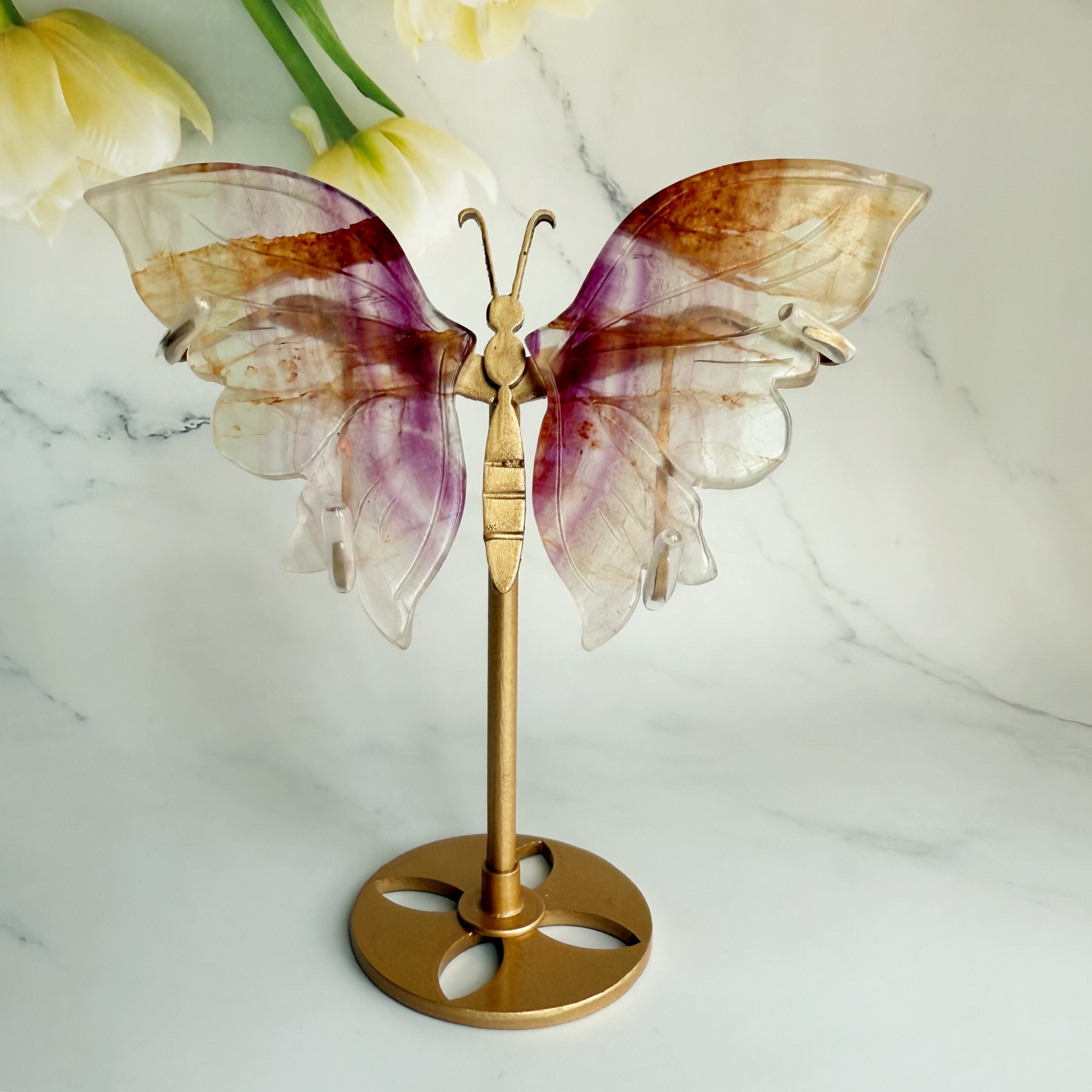 【透明感抜群】キャンディフローライト×ゴールデンヒーラの共生蝶々の置物 天然石 パワーストーン︎