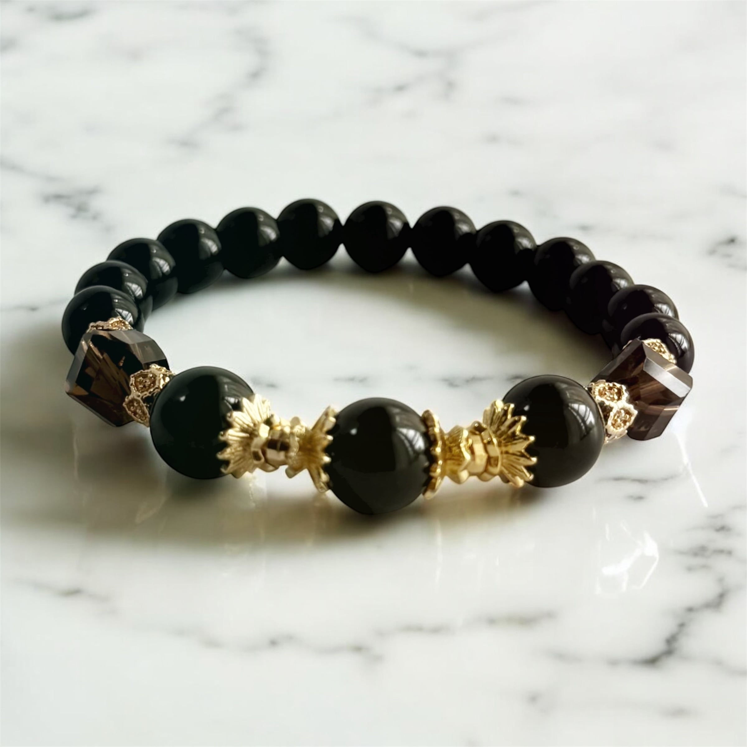 Myra(ミラ)のしずく 守りと癒しのパワーストーンブレスレット モリオン/ブラックトルマリン/スモーキークォーツ/天然石