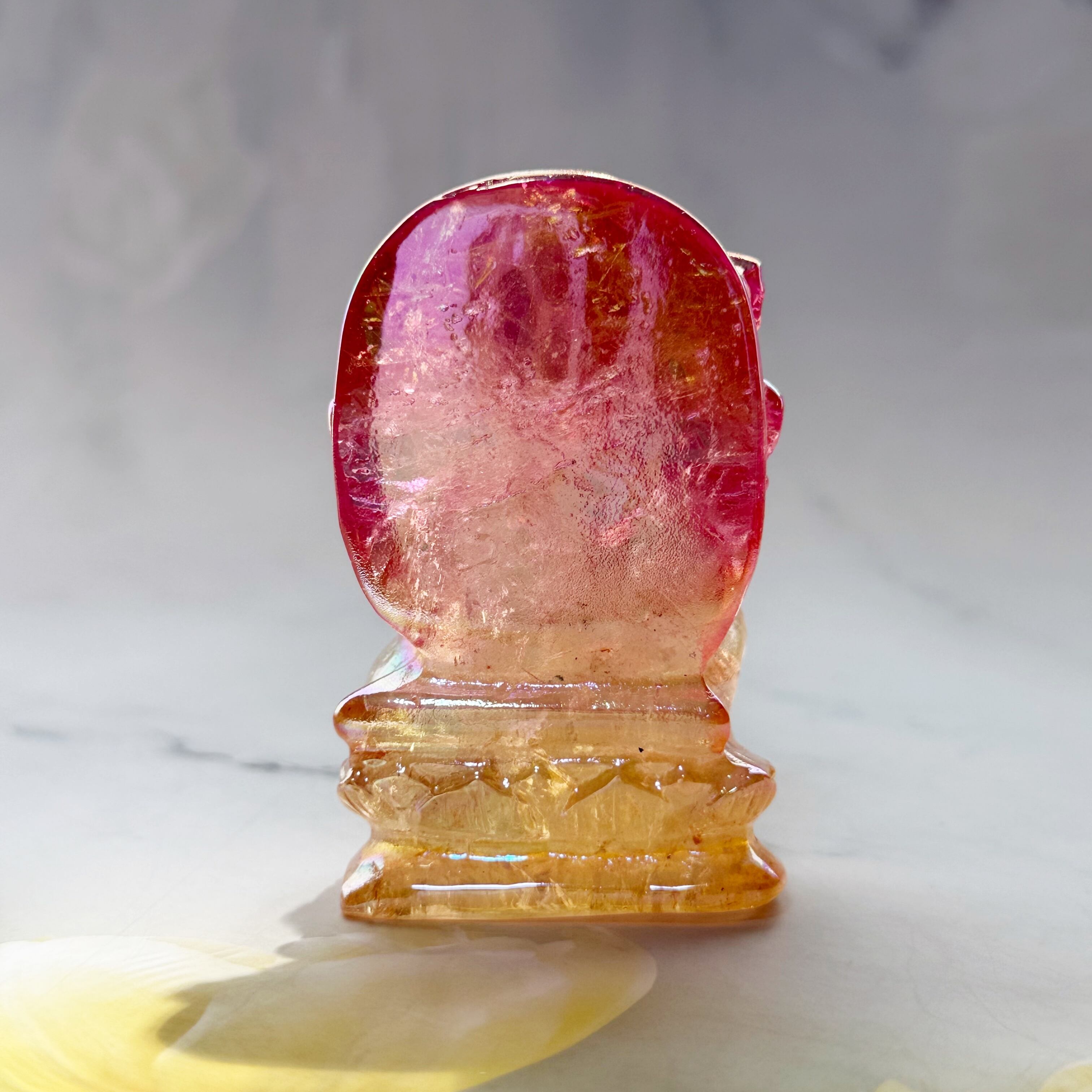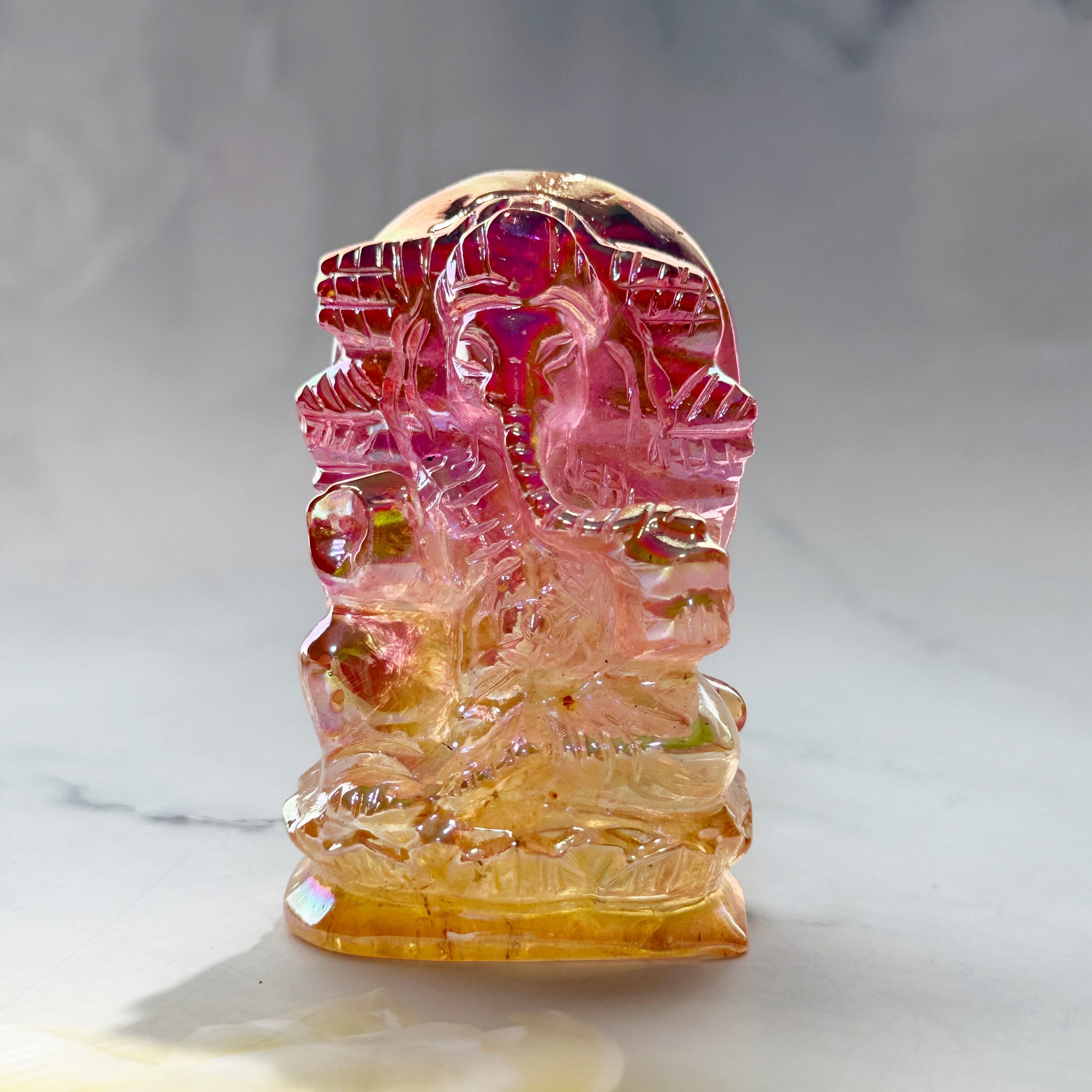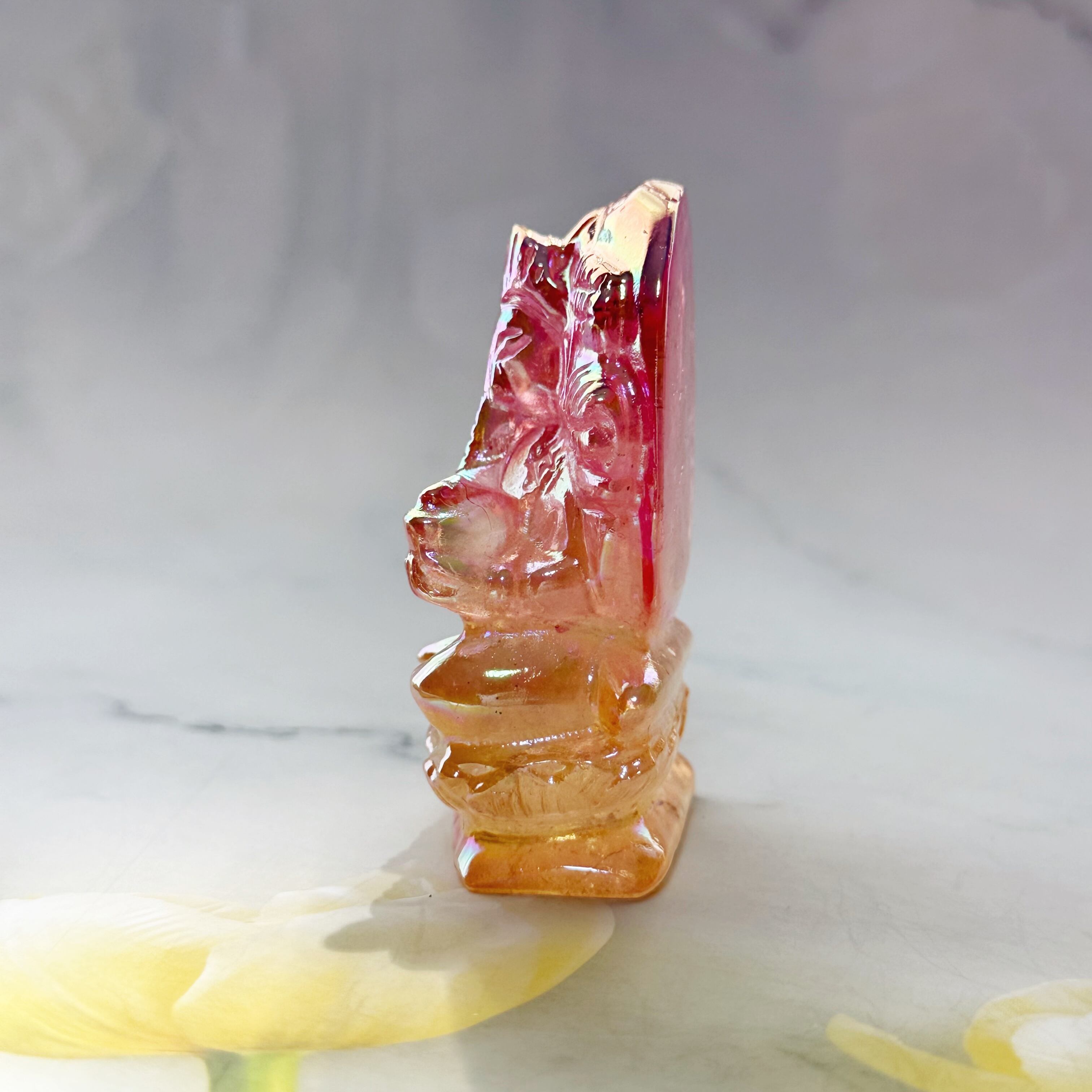 透明な水晶に、虹色のオーラ加工をほどこしたガネーシャ像。