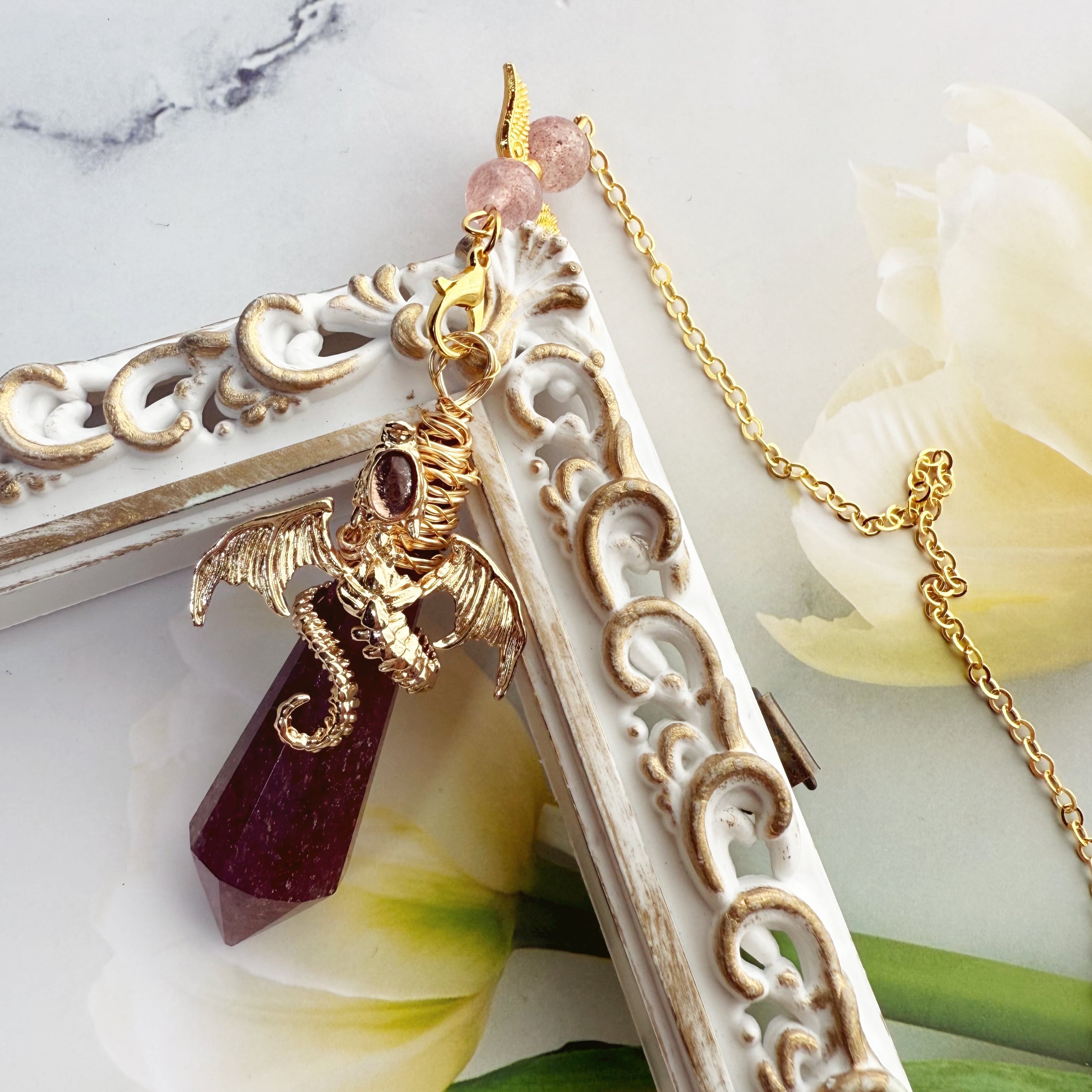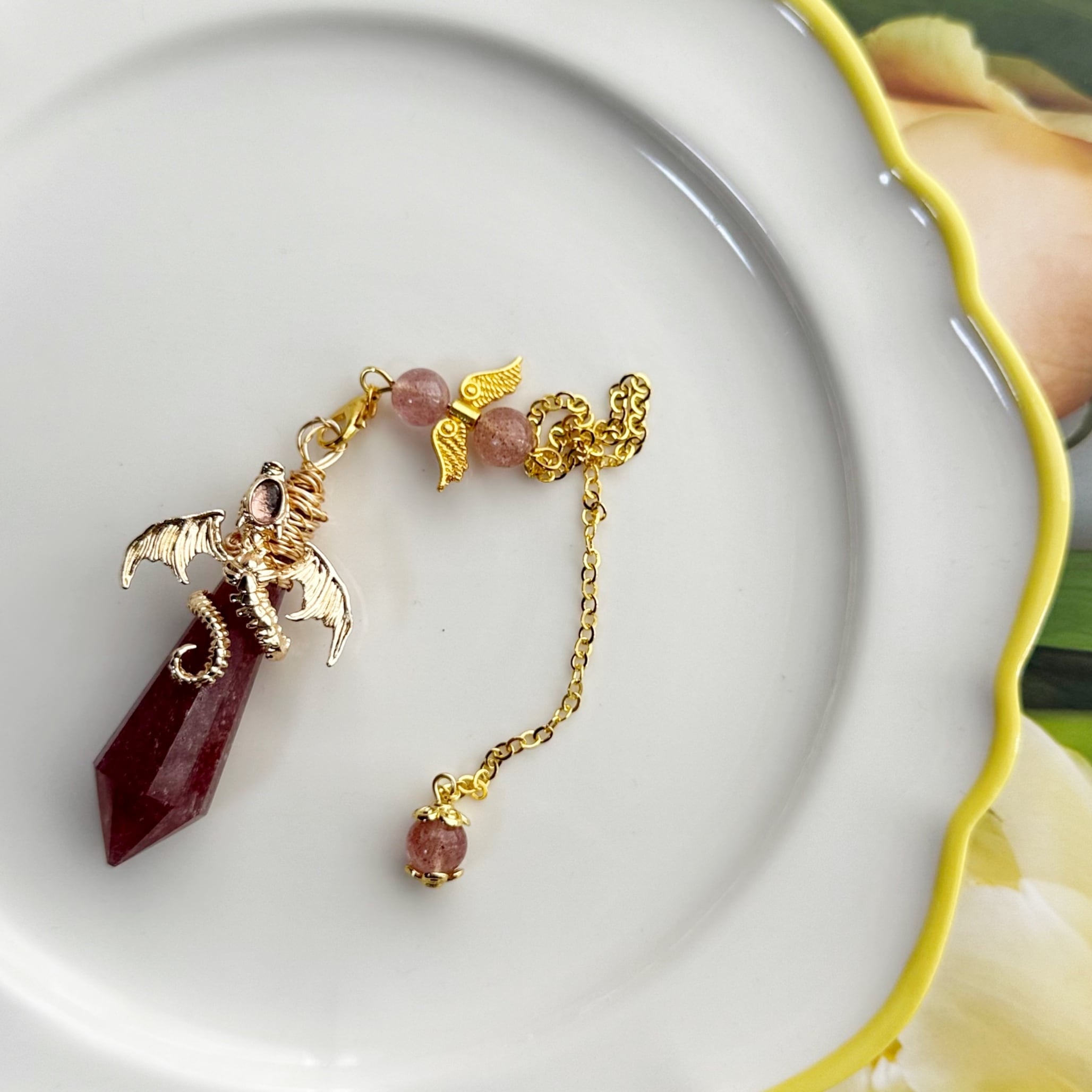 #ストロベリークォーツ #ペンデュラム #ドラゴンモチーフ #自己愛 #変容サポート #愛されたい #天然石 #一点もの #スピリチュアル #癒し #ヒーリングアイテム #女性性 #直感 #ブラジル産 #恋愛サポート