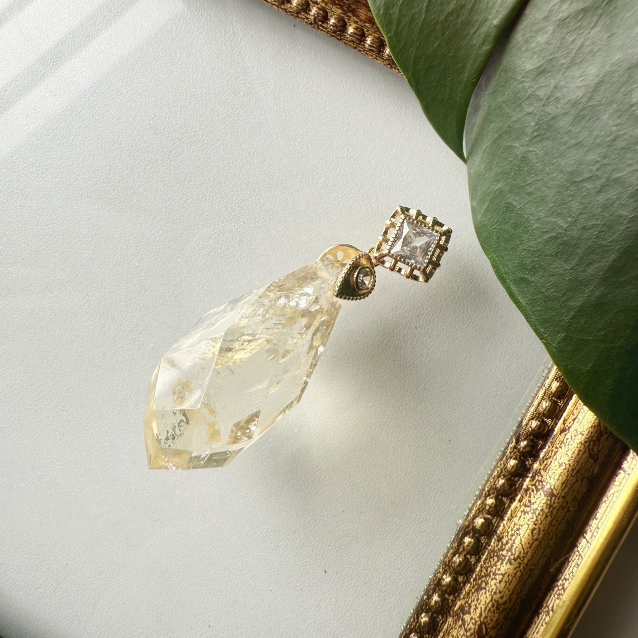 シトリンのペンダントトップ|天然石 パワーストーン|静かな強さを胸もとに