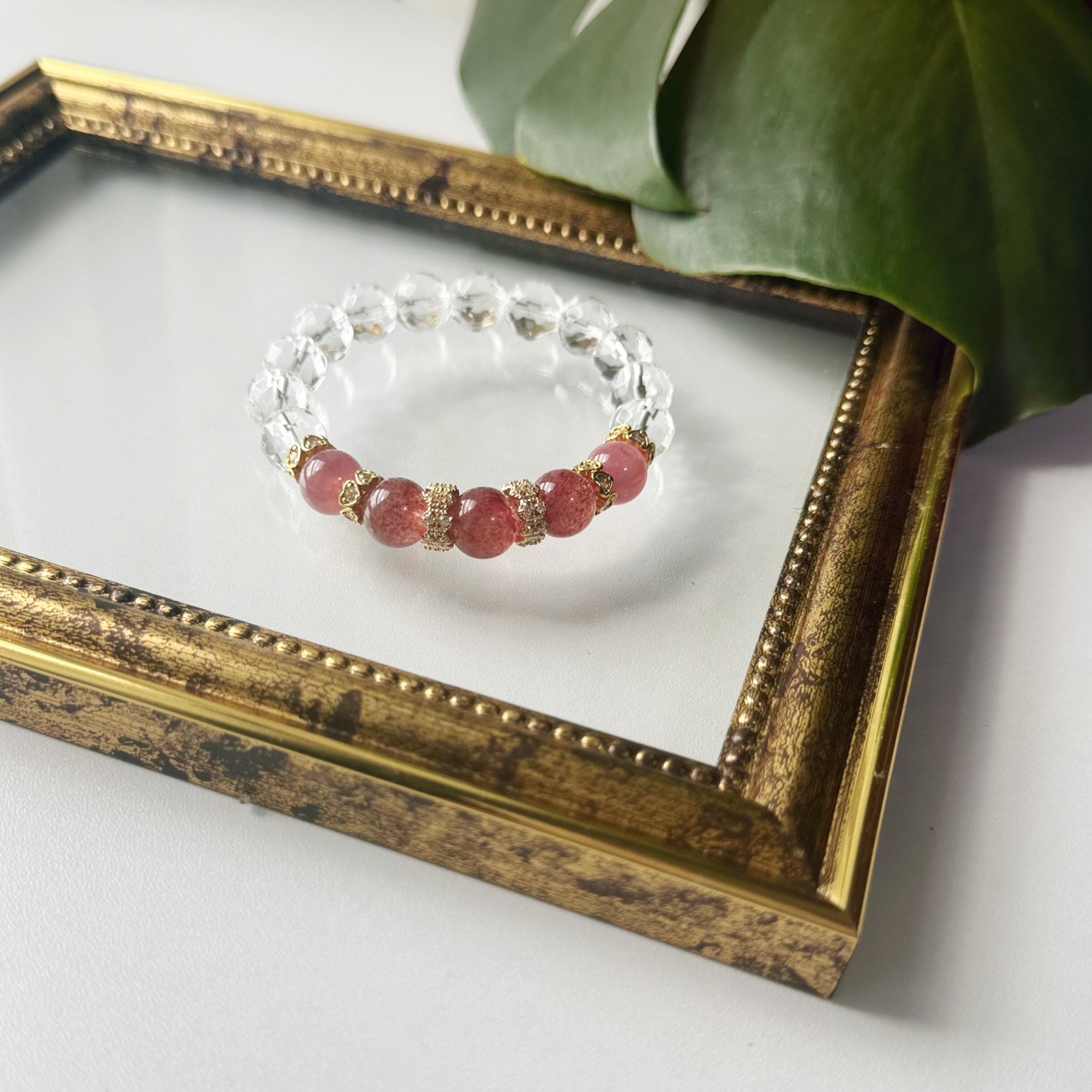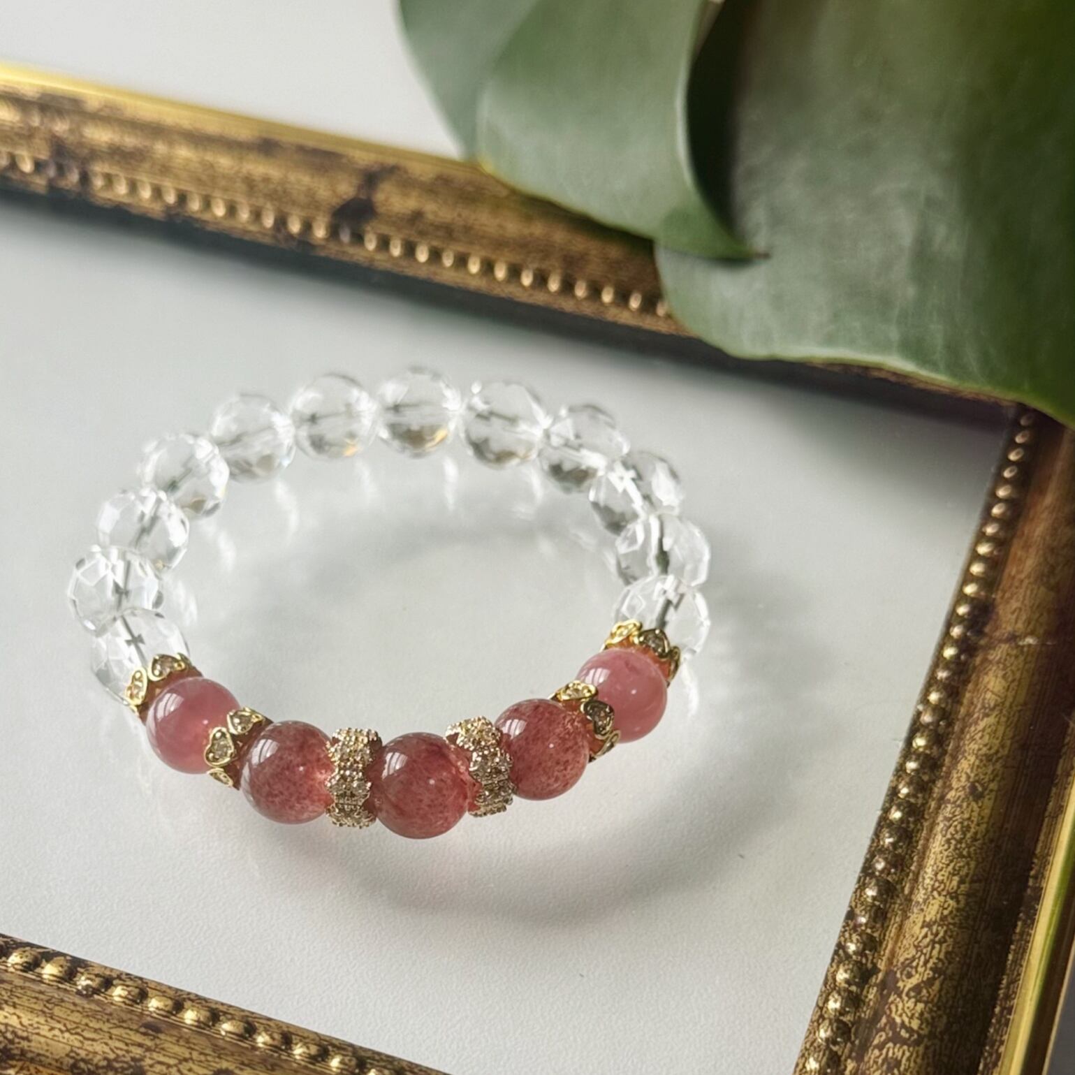 #天然石ブレスレット #ストロベリークォーツ #ローズクォーツ #水晶 #パワーストーン #癒し #開運 #お守りブレスレット #心に寄り添うジュエリー #Myraのしずく