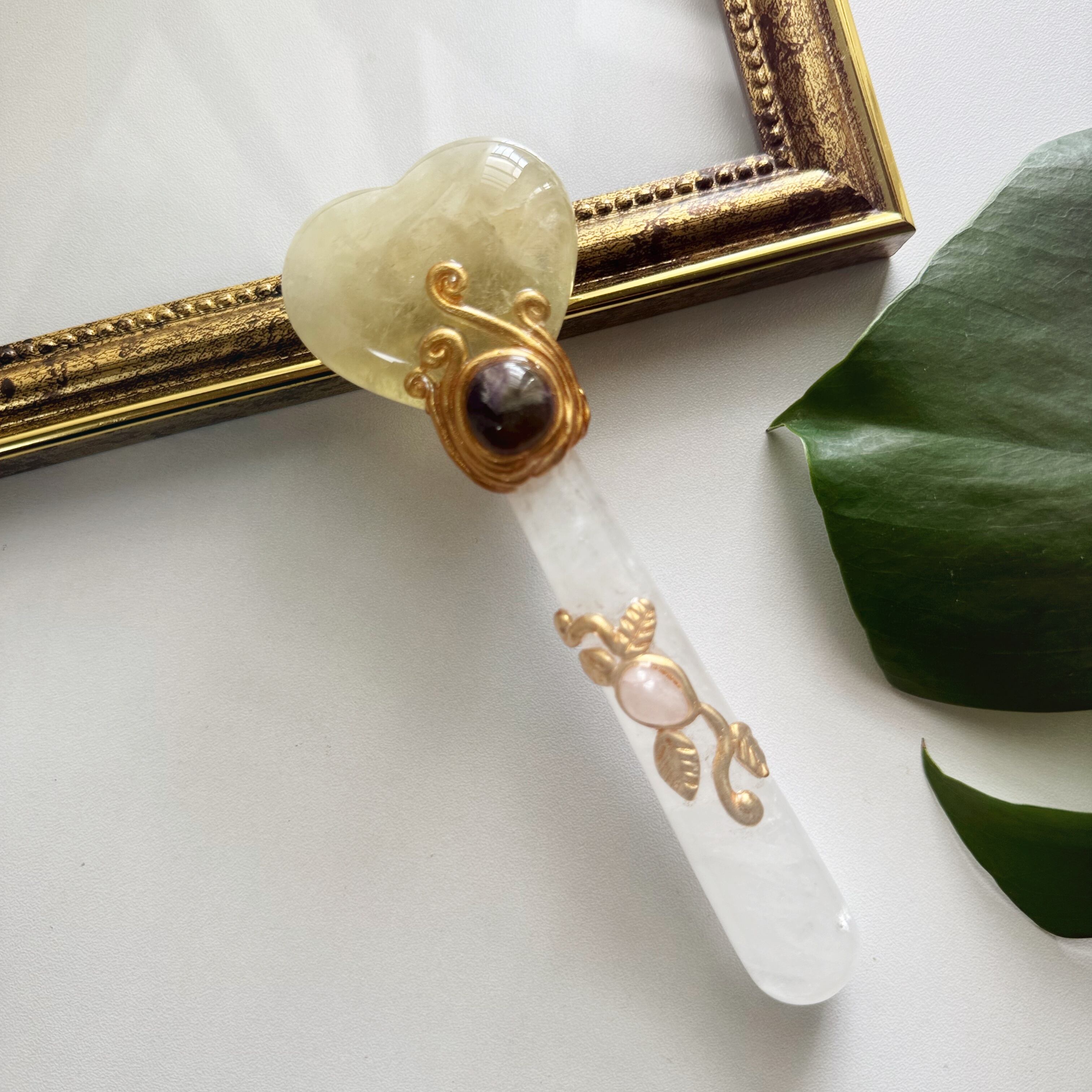 かわいいハートのワンド / 天然石 / パワーストーン / シトリン / 水晶 / アメジスト / ローズクォーツ / 癒しの石 / 浄化アイテム / ヒーリングストーン / ハート型ワンド / 感性を高める / 家族の調和 / ハンドメイド天然石