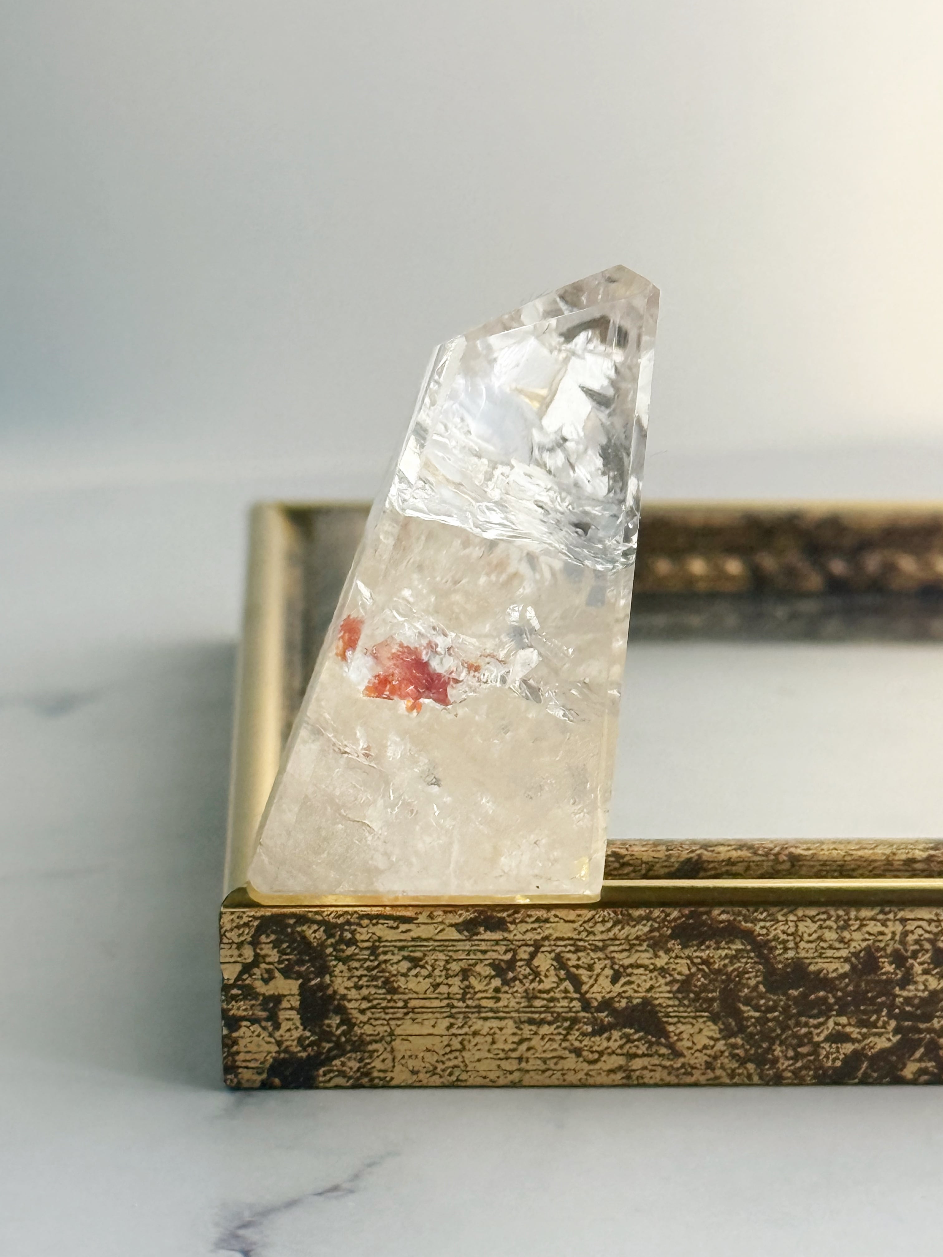水晶の透明感と、ライモナイトの優しい色合いが一つになった、珍しい天然石です。
