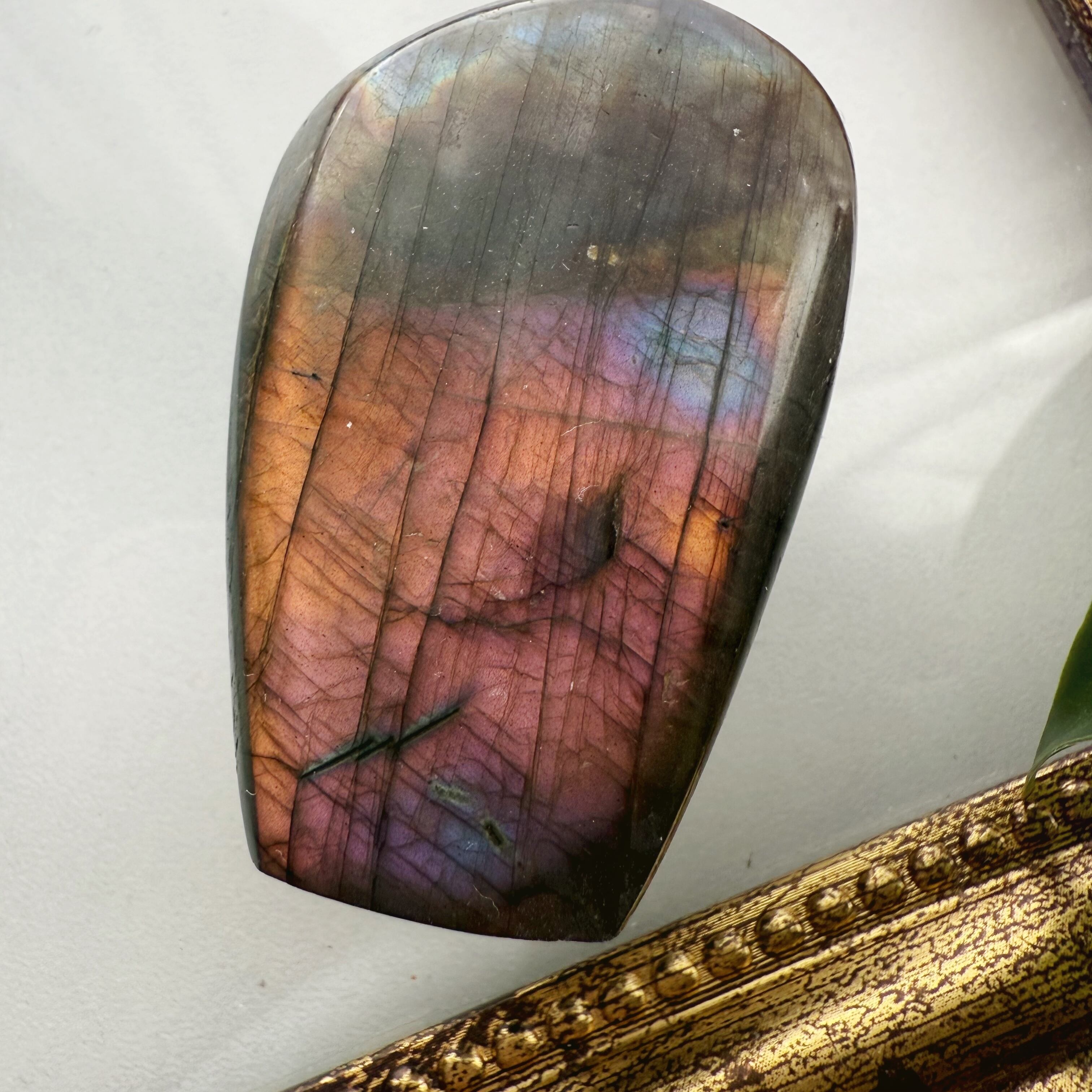 ♡ピンク&レインボーシラー♡ ラブラドライトの置物(自立します)天然石・パワーストーン|置物|彫物