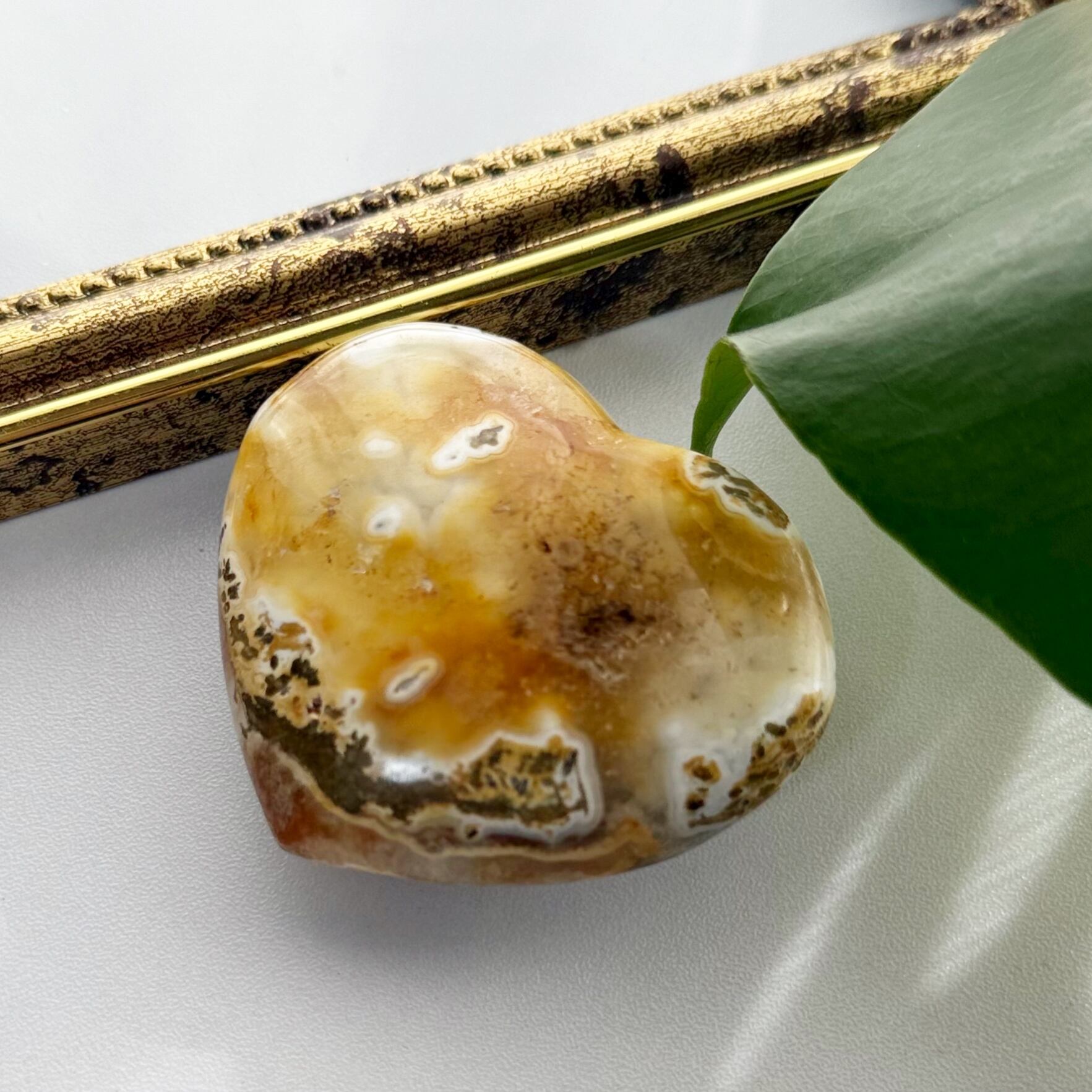 ♡オーシャンジャスパーのハート置物(ジオードあり)天然石・パワーストーン|置物|彫物