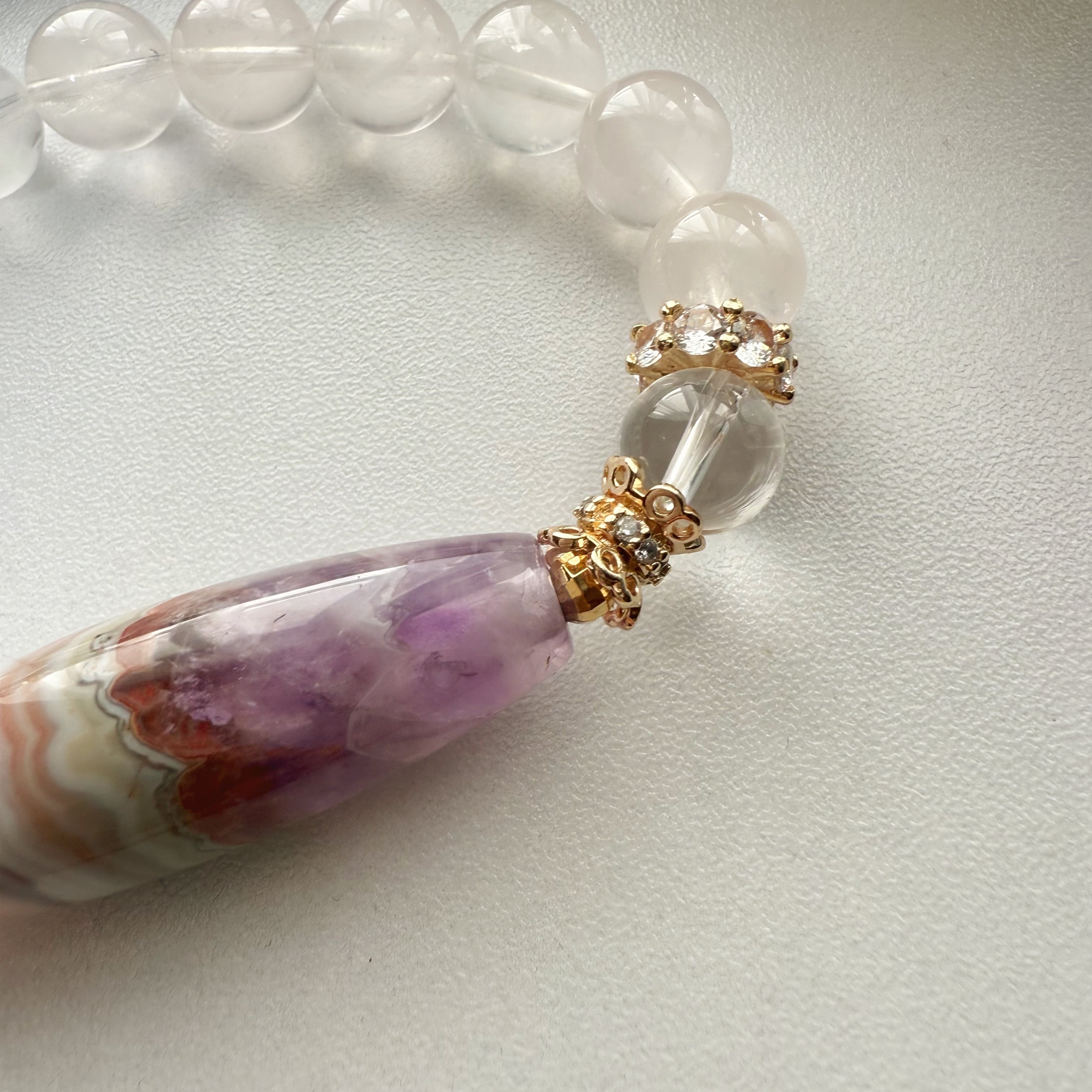 Myra(ミラ)のしずく アメジスト瑪瑙 × ローズクォーツ × 水晶 ブレスレット|天然石・パワーストーン|デザイン