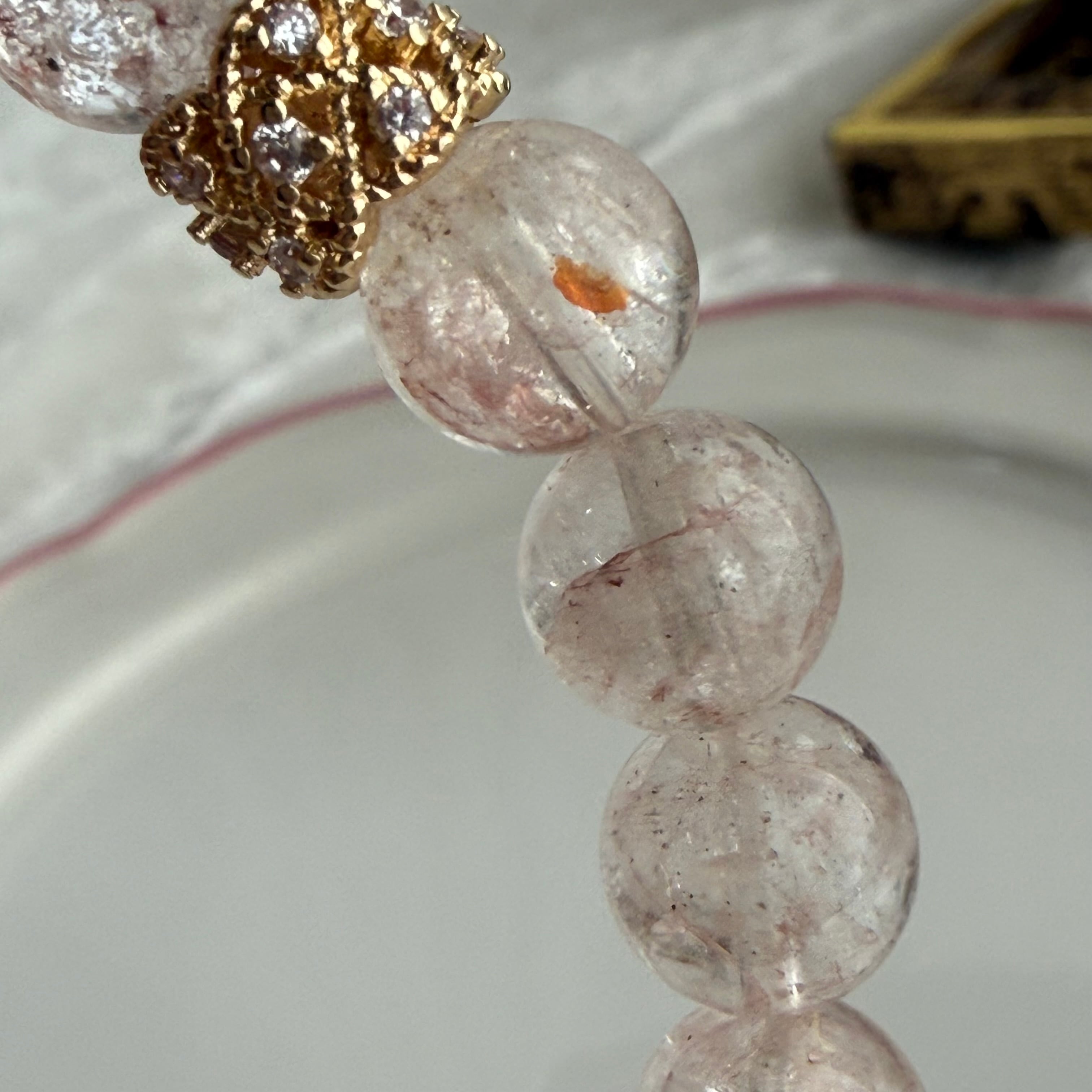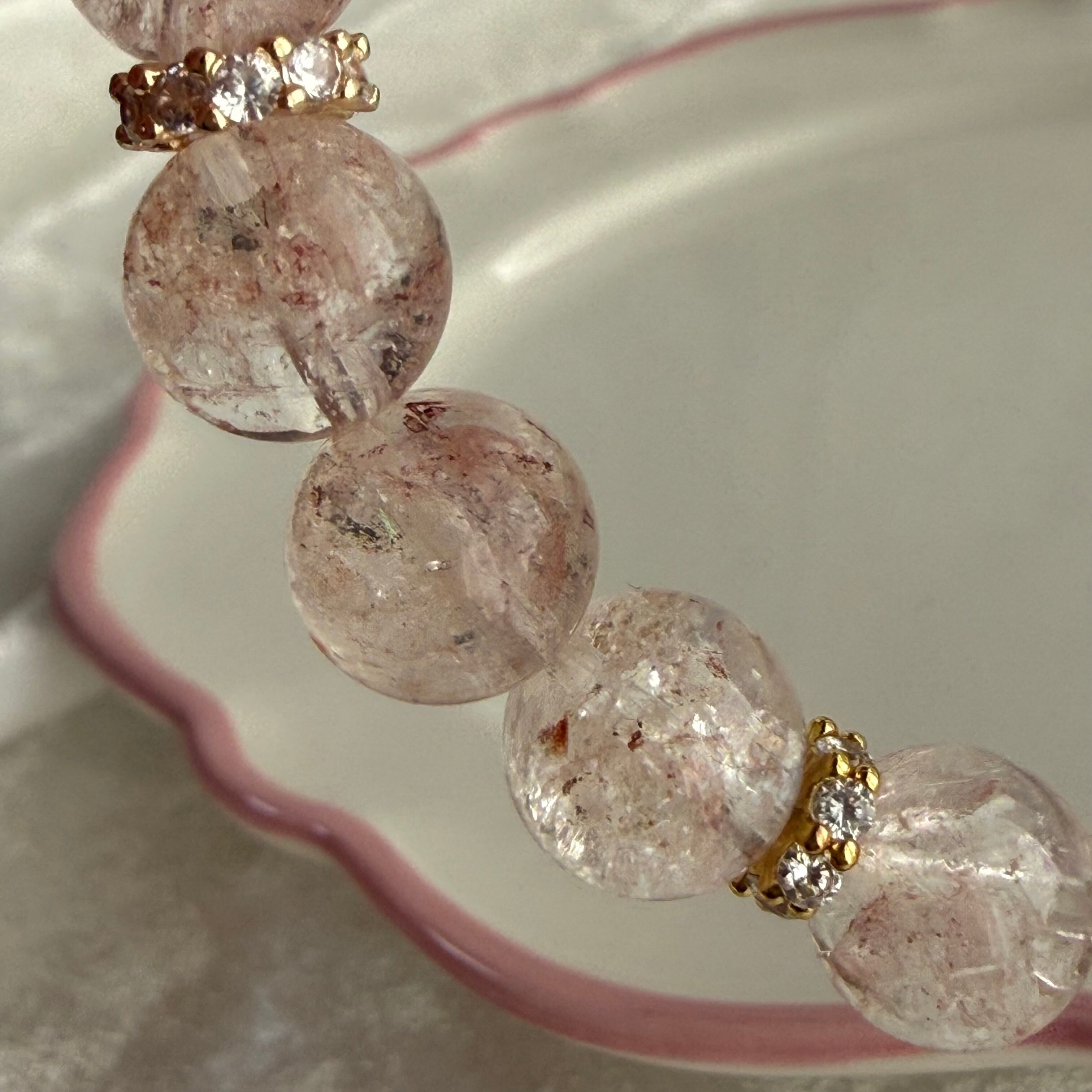 • 使用天然石:ピンクアイリスクォーツ 9.5〜9.9㎜前後