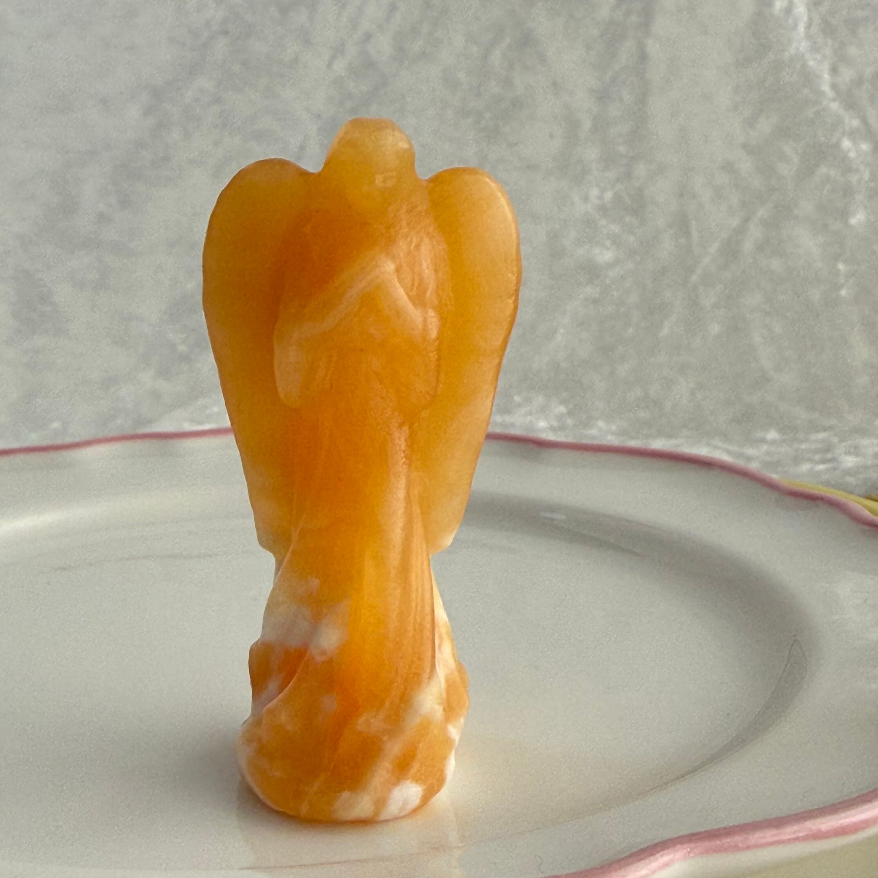 カルサイトのミニ天使|原石一点もの|やさしく空間を整える天然石オブジェ|持ち運びにも◎|パワーストーン︎