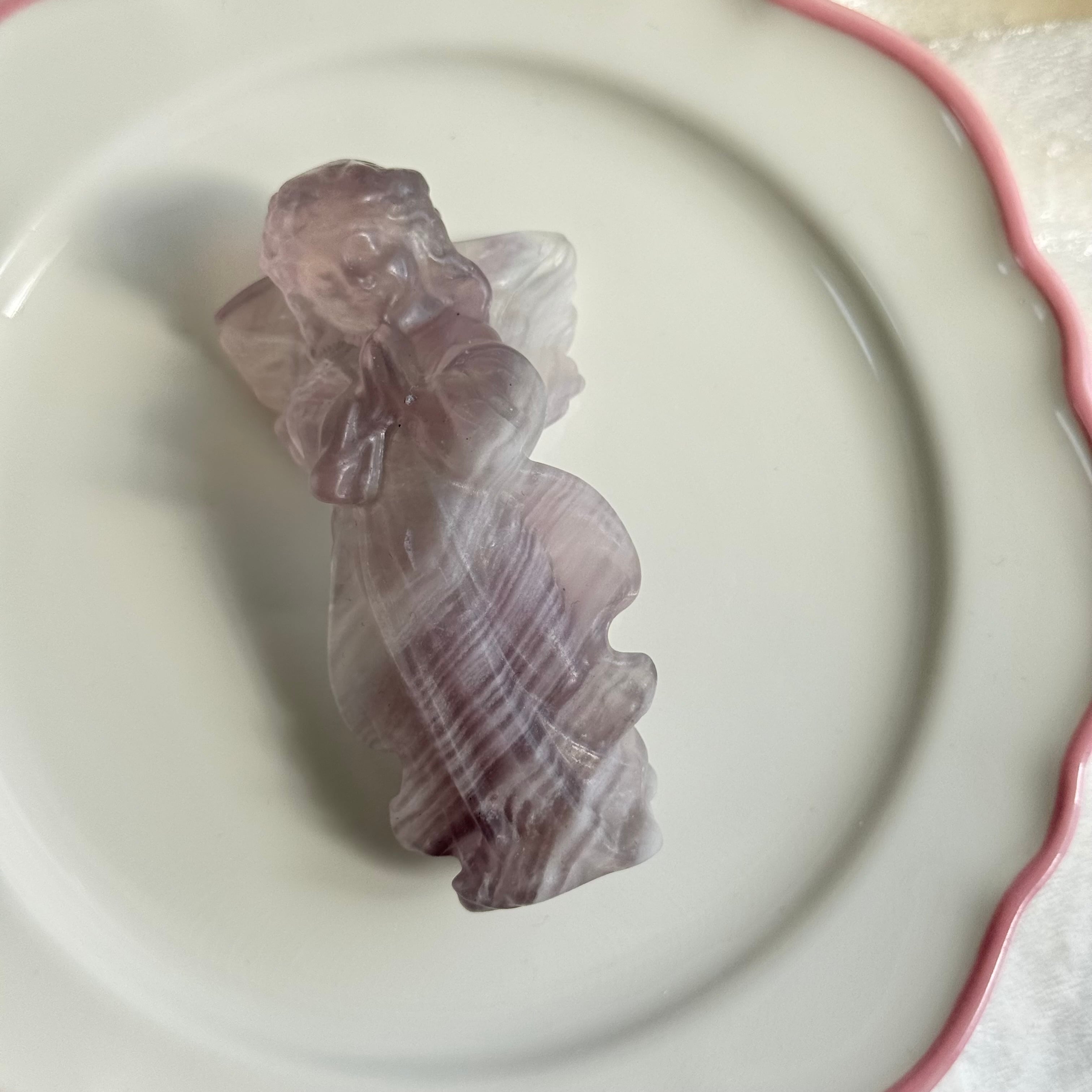 【希少】柄が珍しいフローライトの天使|中国産|天然石原石|浄化ストーン|一点もの|パワーストーン|彫物|置物