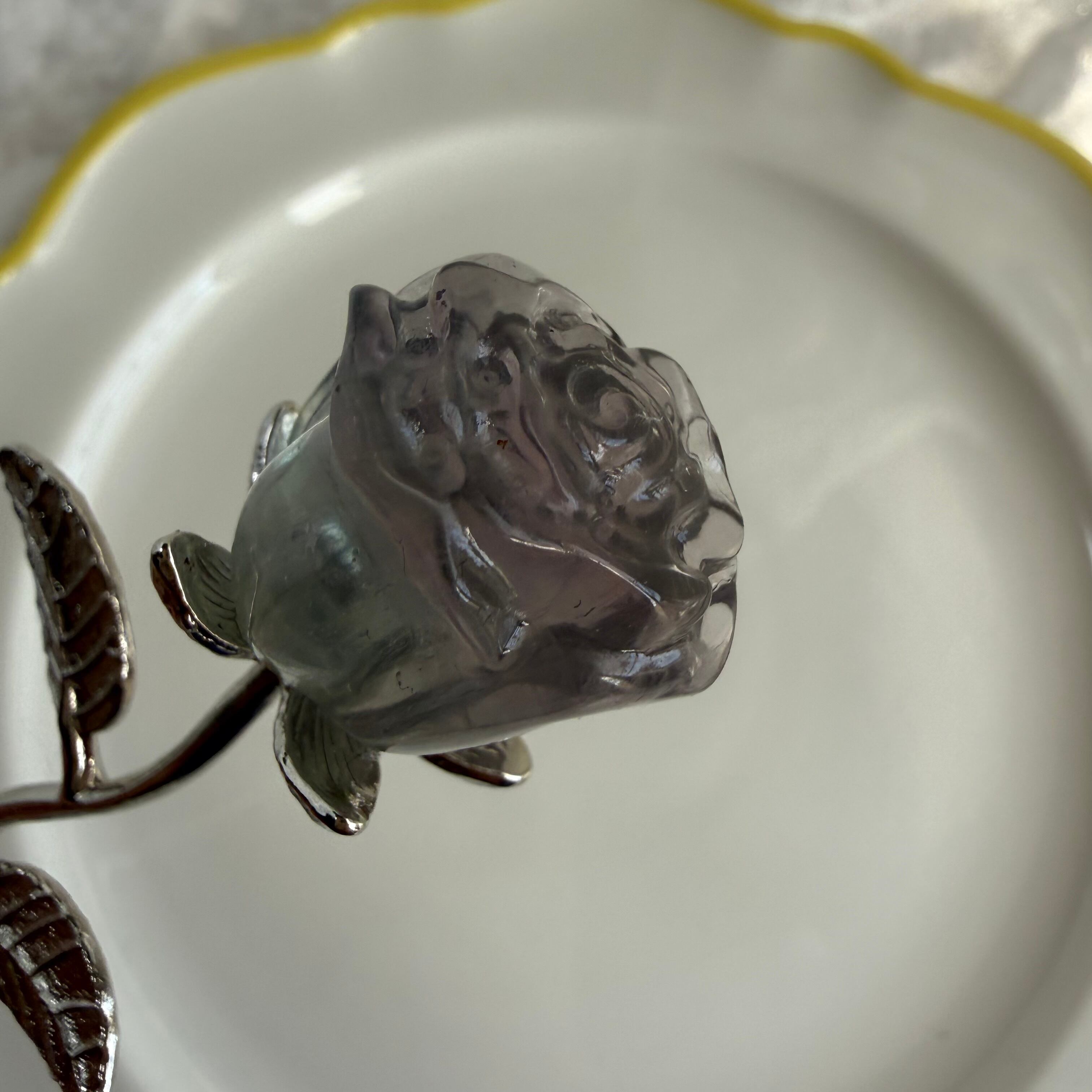 フローライトのバラ|天然石彫刻|中国産|一点もの|インテリアストーン|お守り置物