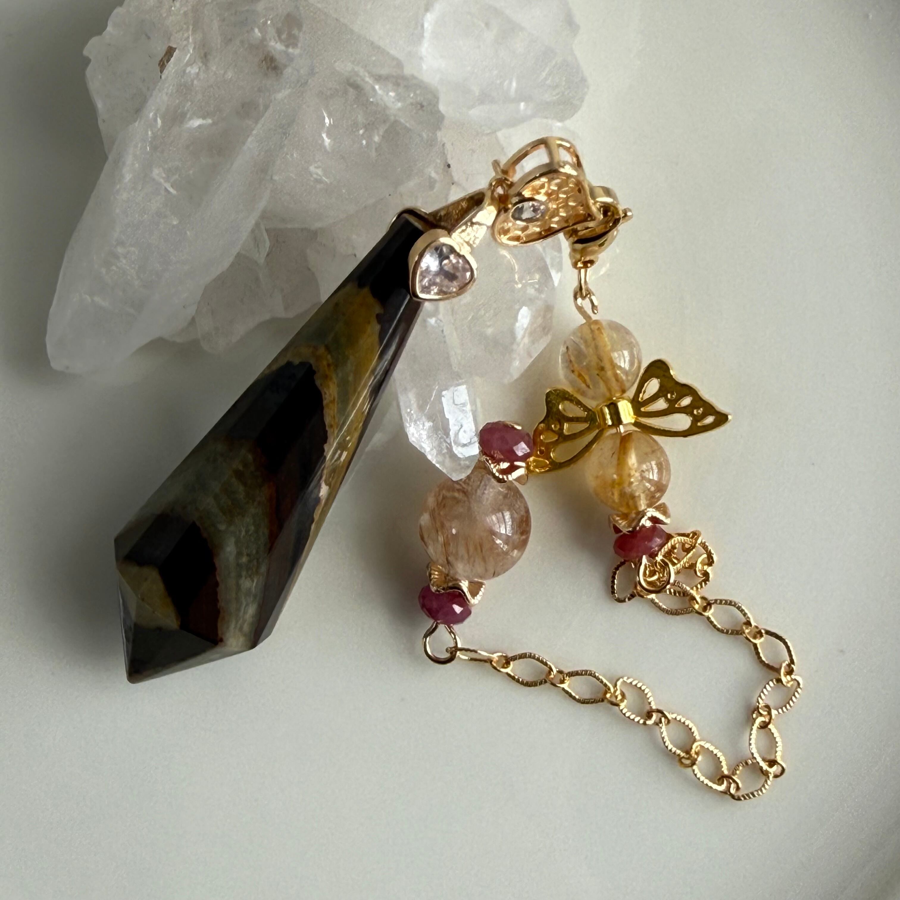 【希少】ジャスパー × ゴールドルチル × カコクセナイト × ルビーのペンデュラム|一点もの天然石|パワーストーン︎|空間の浄化|置物