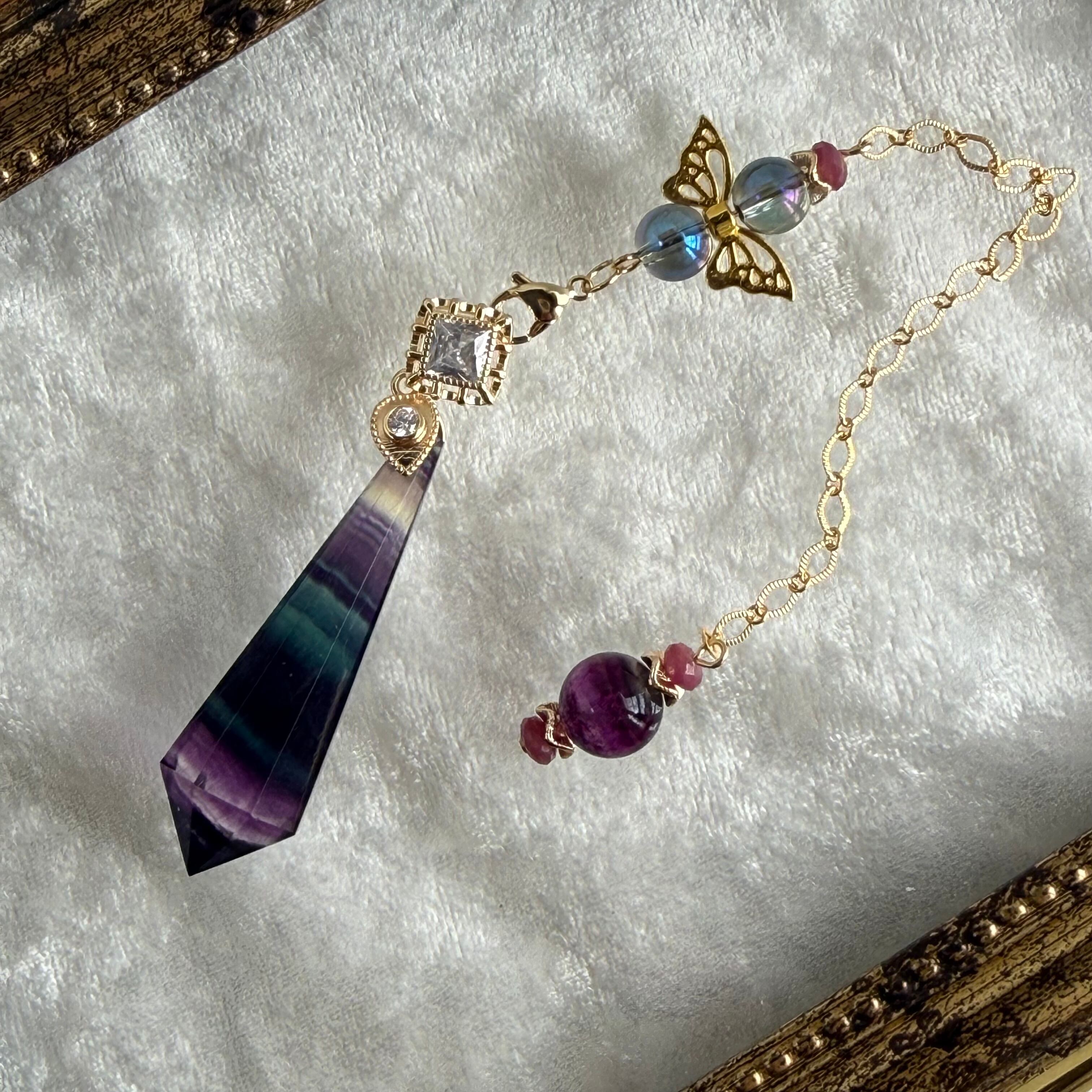 天然石 / パワーストーン / ペンデュラム / フローライト / バイカラーフローライト / アクアオーラ / ルビー / 浄化 / 一点もの / スピリチュアル / 癒し / 直感 / 思考整理 / お守り / 開運インテリア