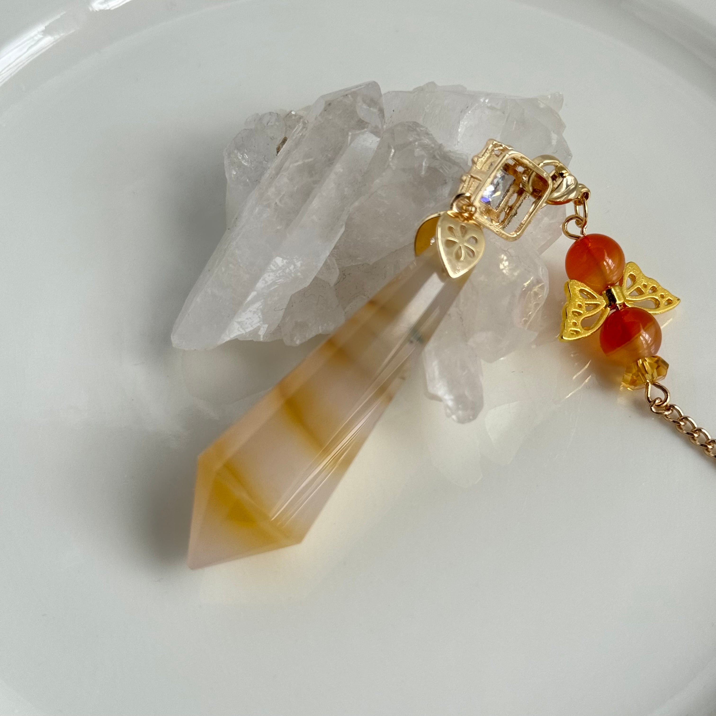 カーネリアンとシトリンを組み合わせたペンデュラム。