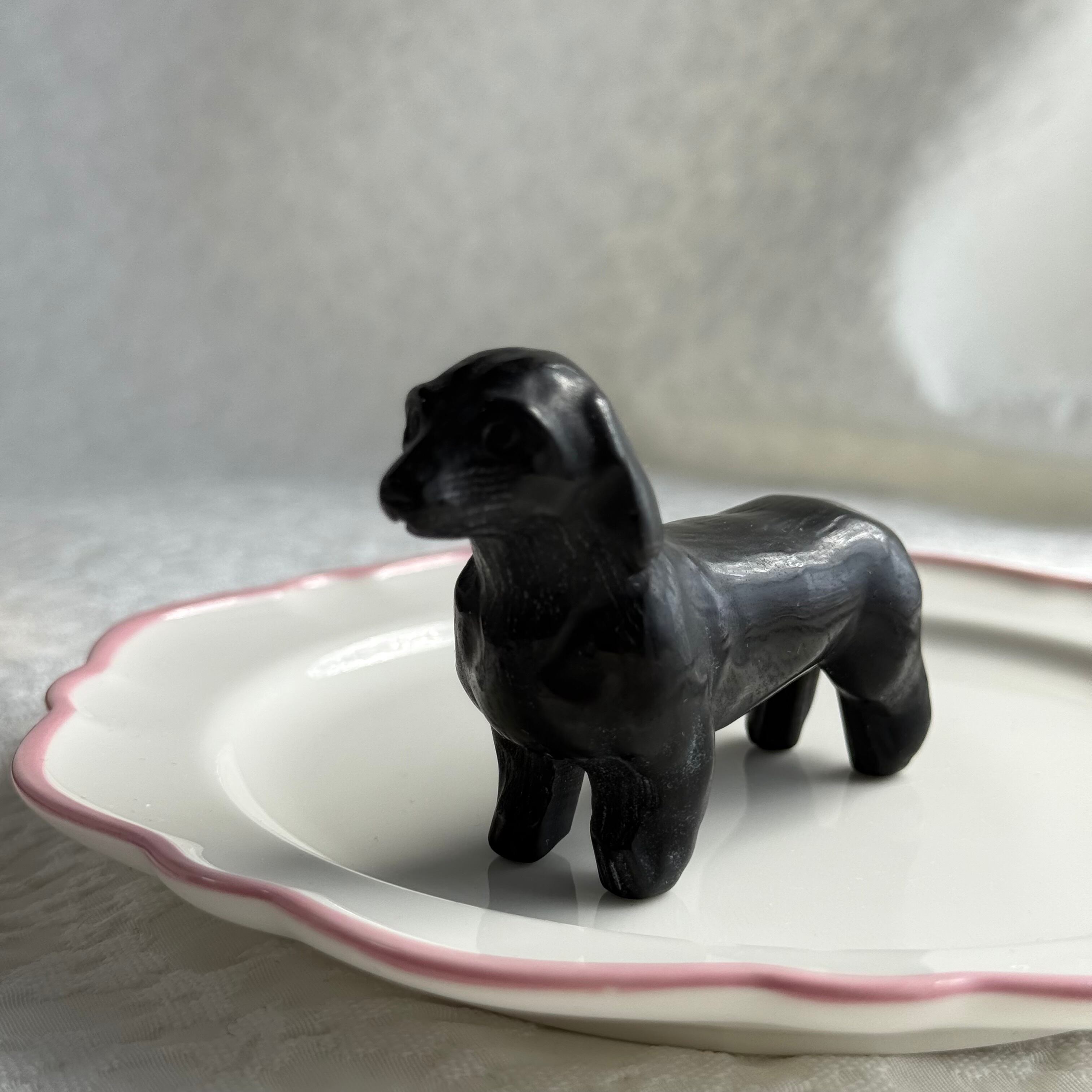 ♡かわいい♡オブシディアンのワンちゃん(マットタイプ)|天然石彫刻|一点もの|浄化ストーン|パワーストーン置物|インテリア雑貨|守り石|癒しアイテム|願いを大切にしたい方へ