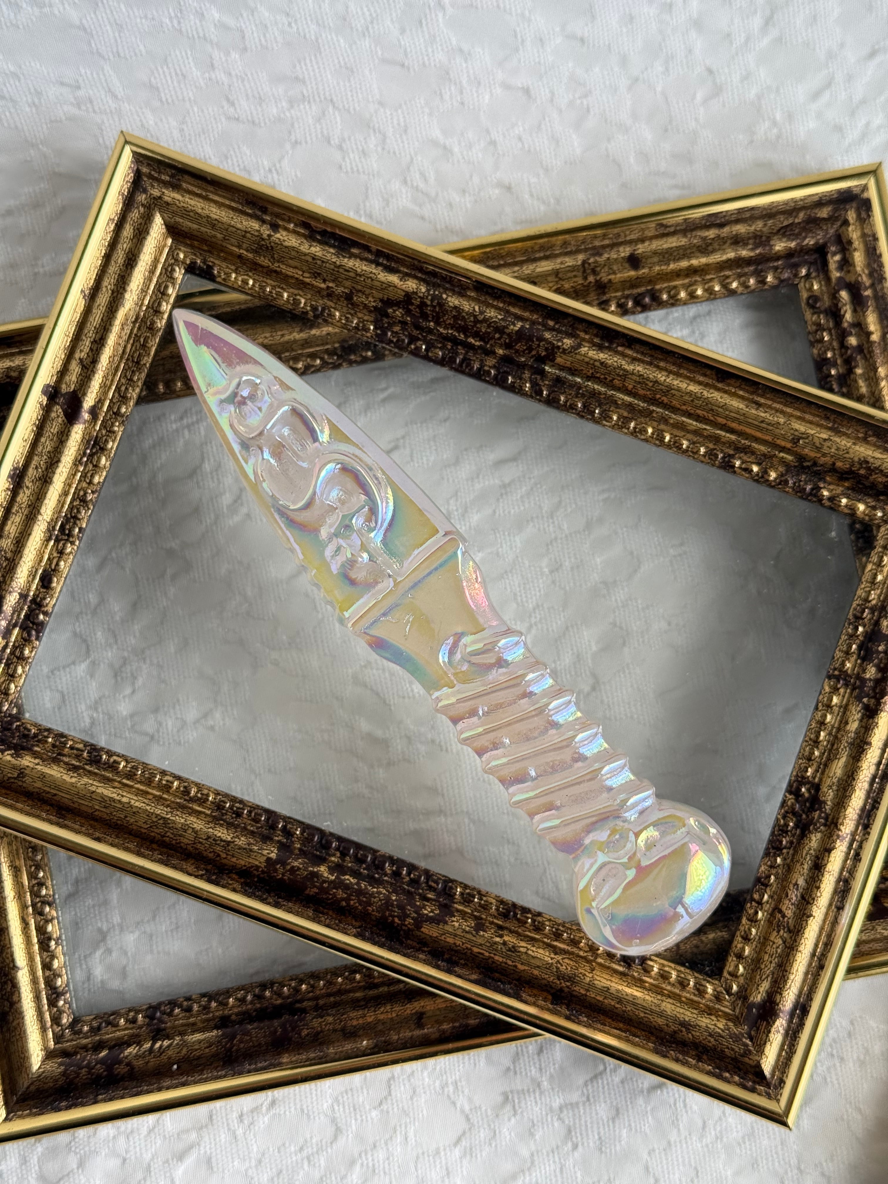 エンジェルオーラ水晶|水晶 ナイフ|天然石 ナイフ|クリスタル インテリア|パワーストーン 置物|浄化ストーン|一点もの 雑貨|ヒーリングストーン|空間浄化 インテリア|天然石 彫刻|虹色クリスタル|スピリチュアル インテリア|デスク 置物|玄関 インテリア