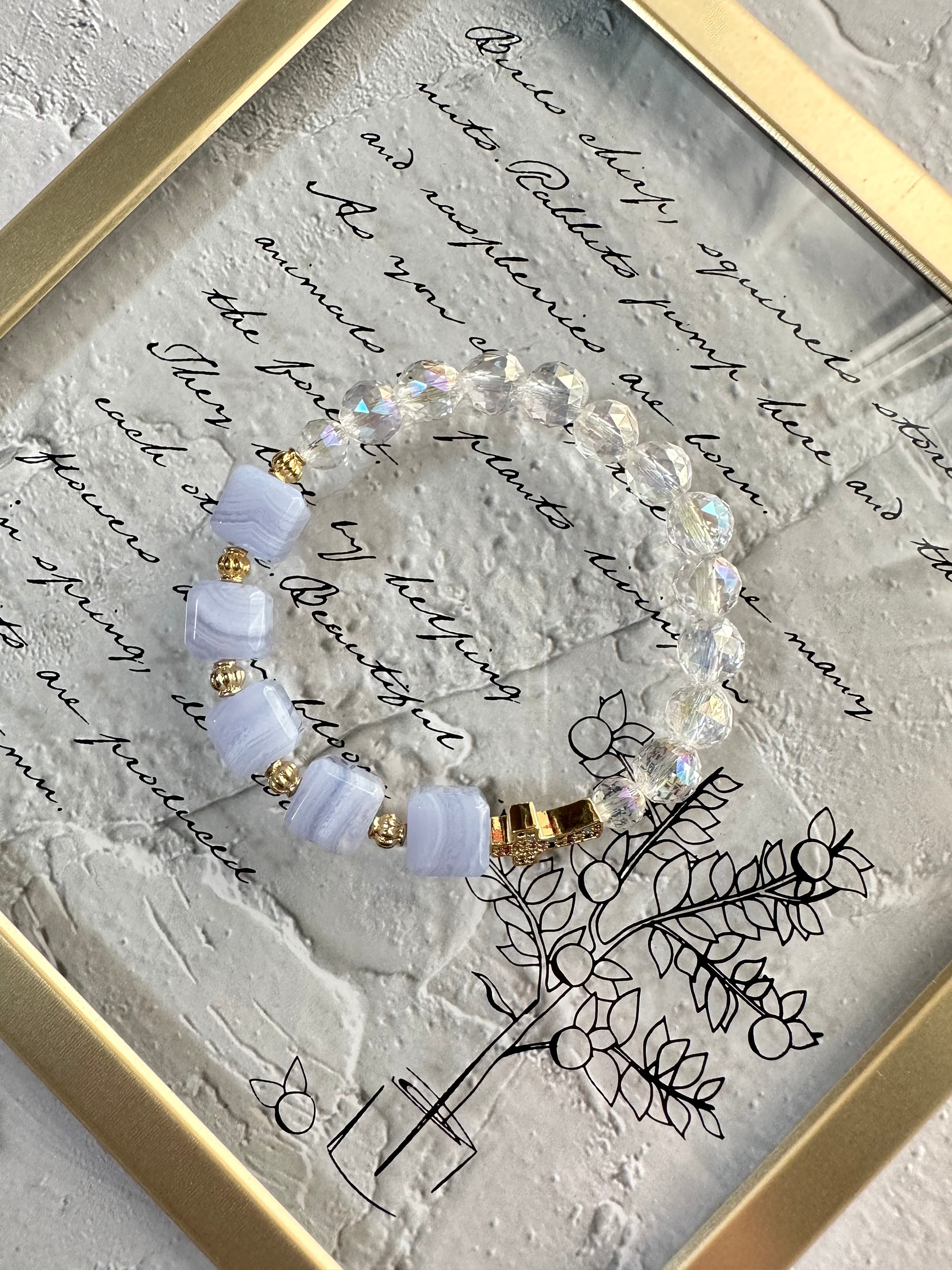 ◉ブルーレースアゲート【スクエアカット】9.2㎜前後