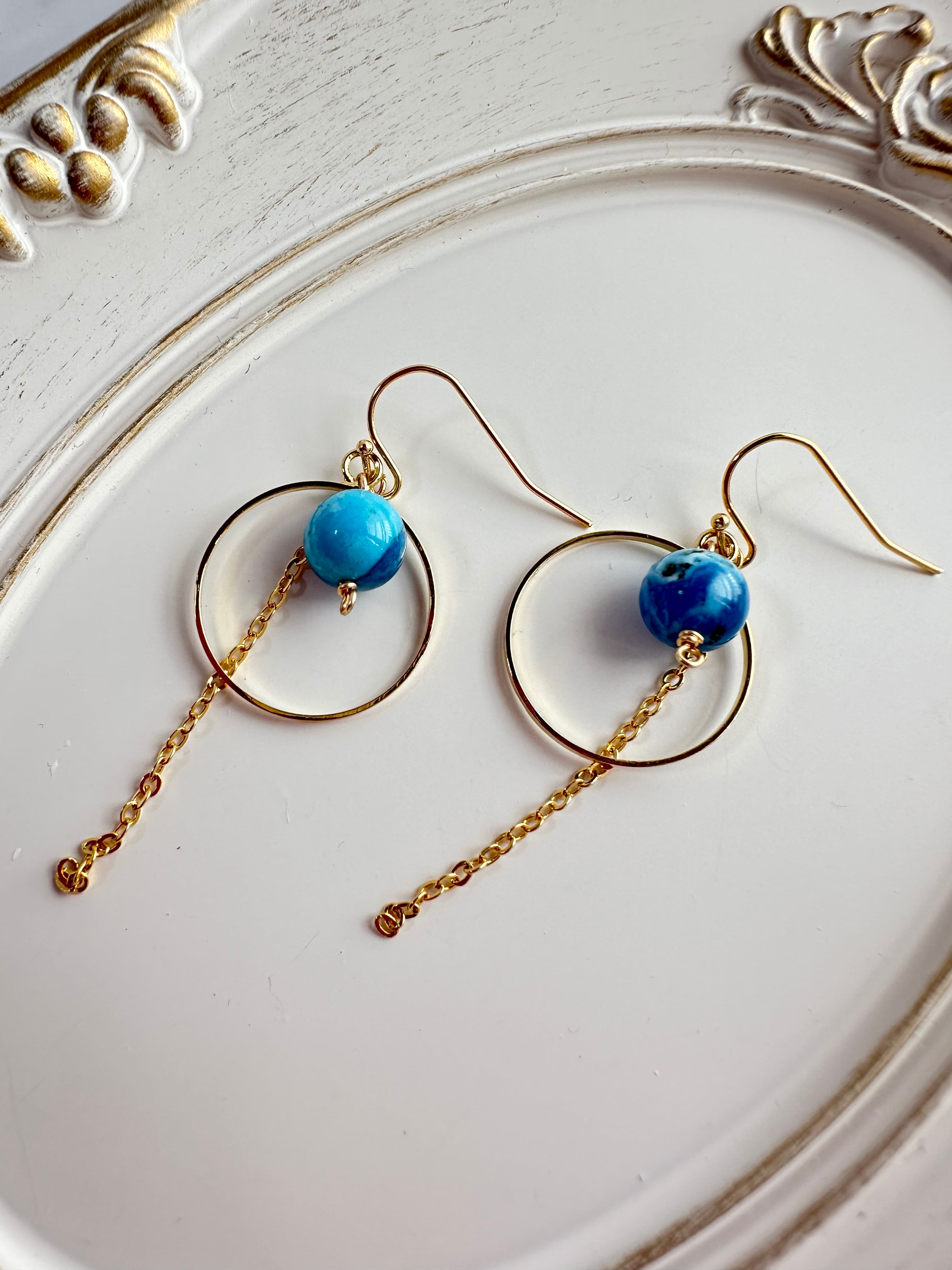 フープデザインピアス ゆらゆらピアス 天然石 シャッタカイト