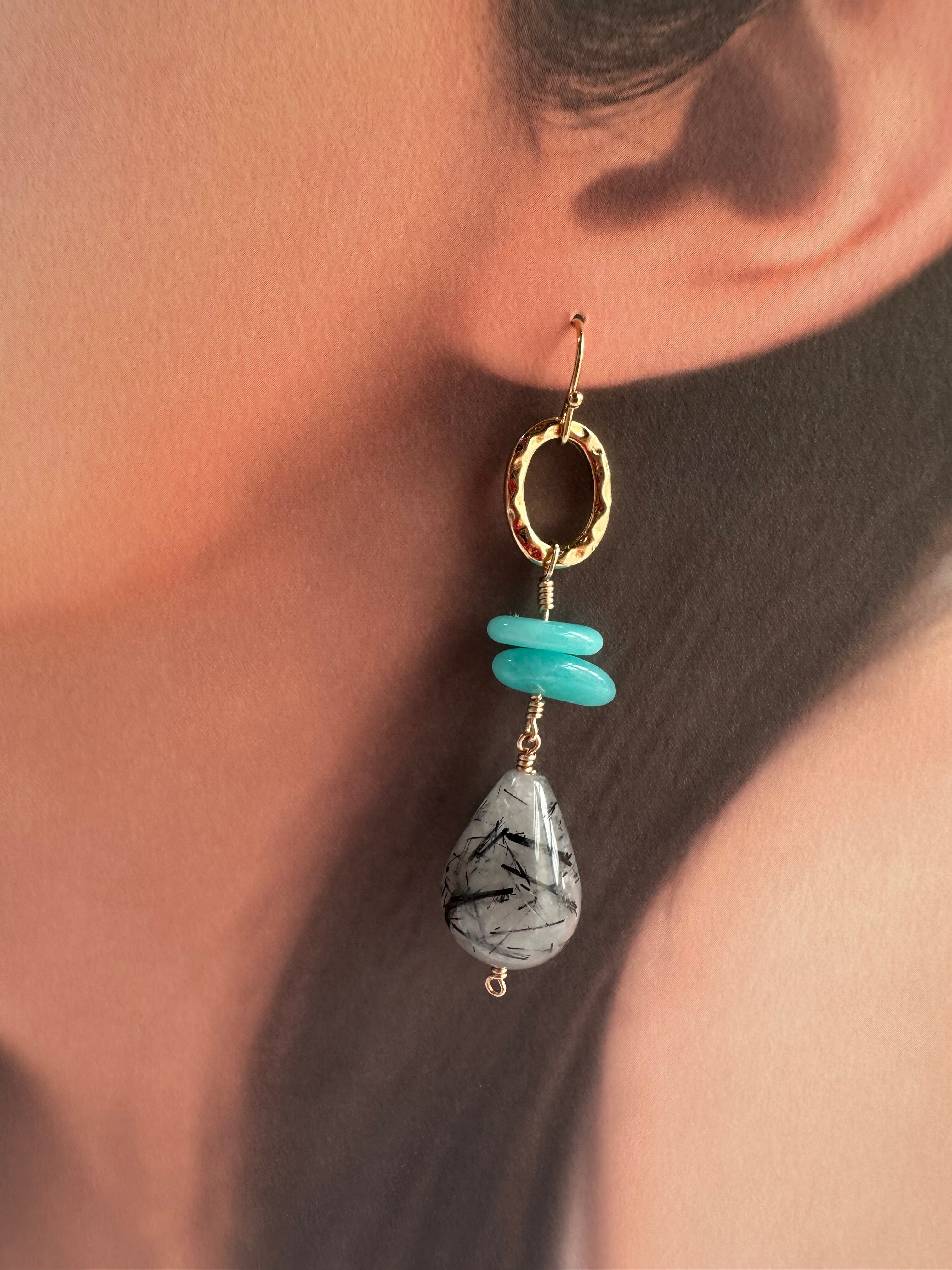 フックタイプのおしゃれなゆらゆら可愛いピアス 天然石 アマゾナイト ブラックトルマリン