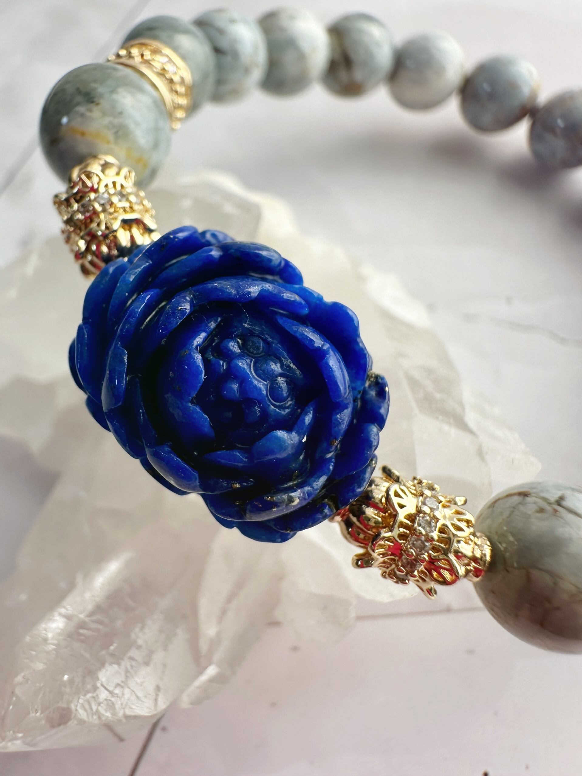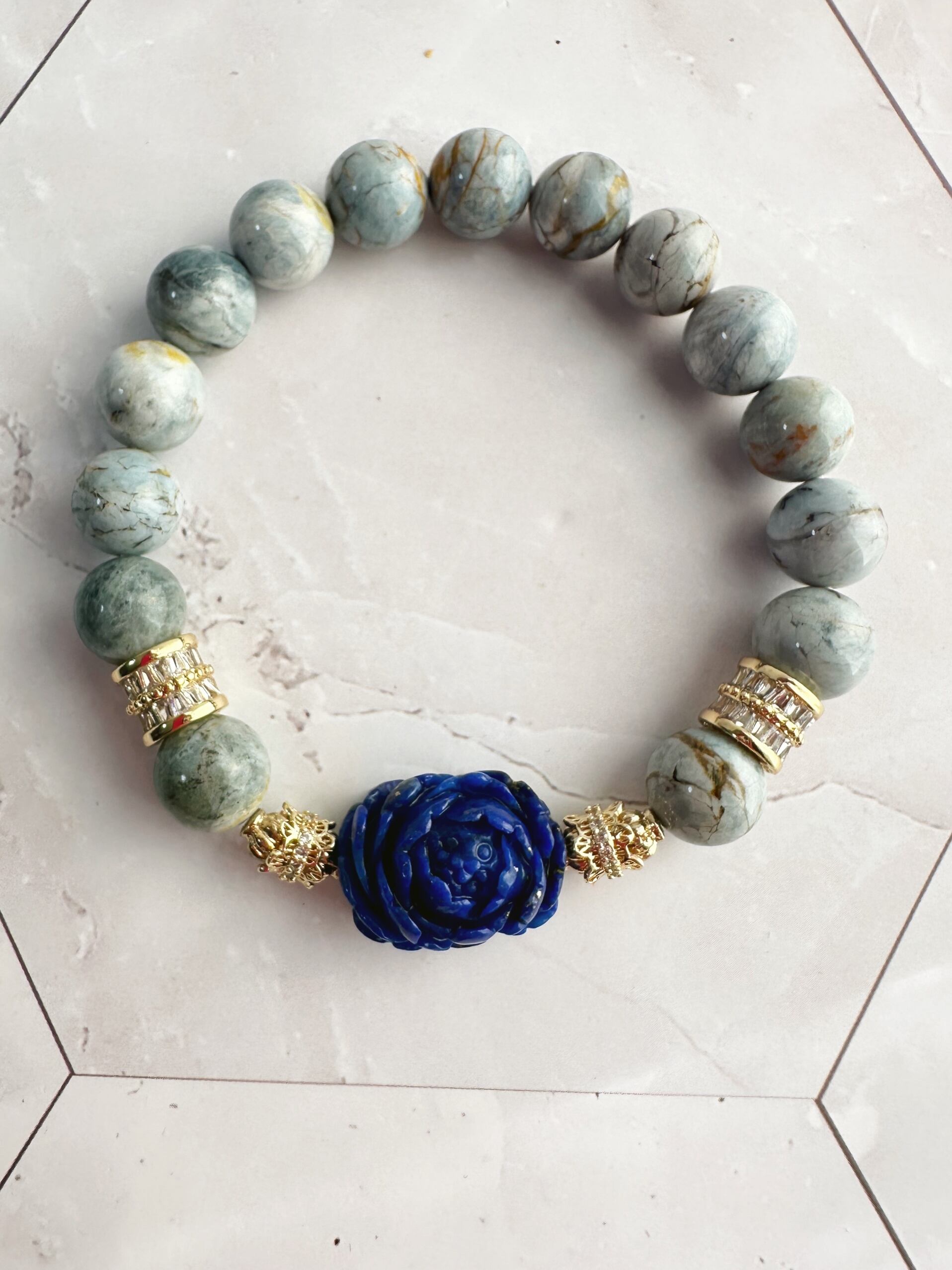 ラピスラズリのお花がポイントの天然石ブレスレット
