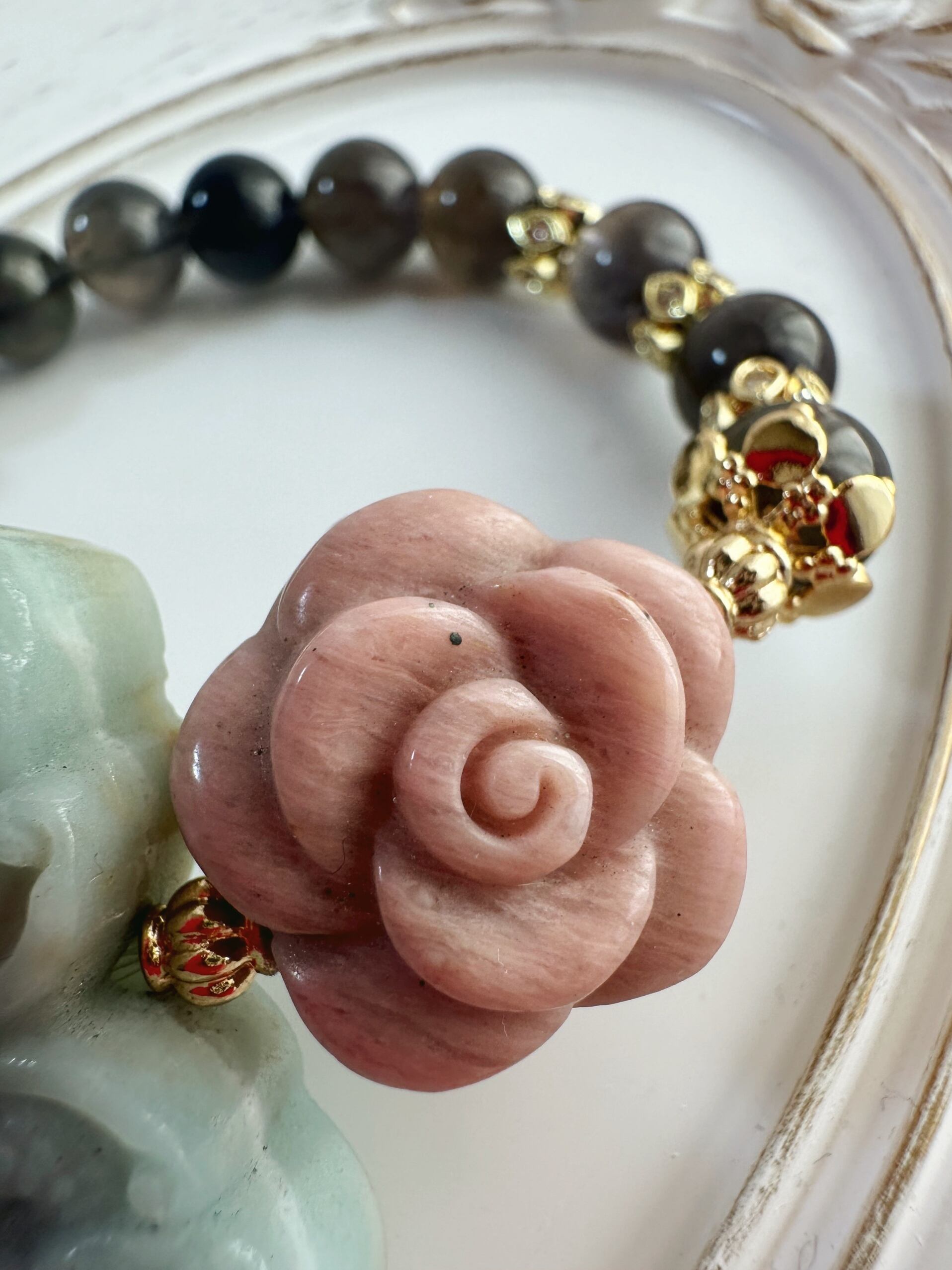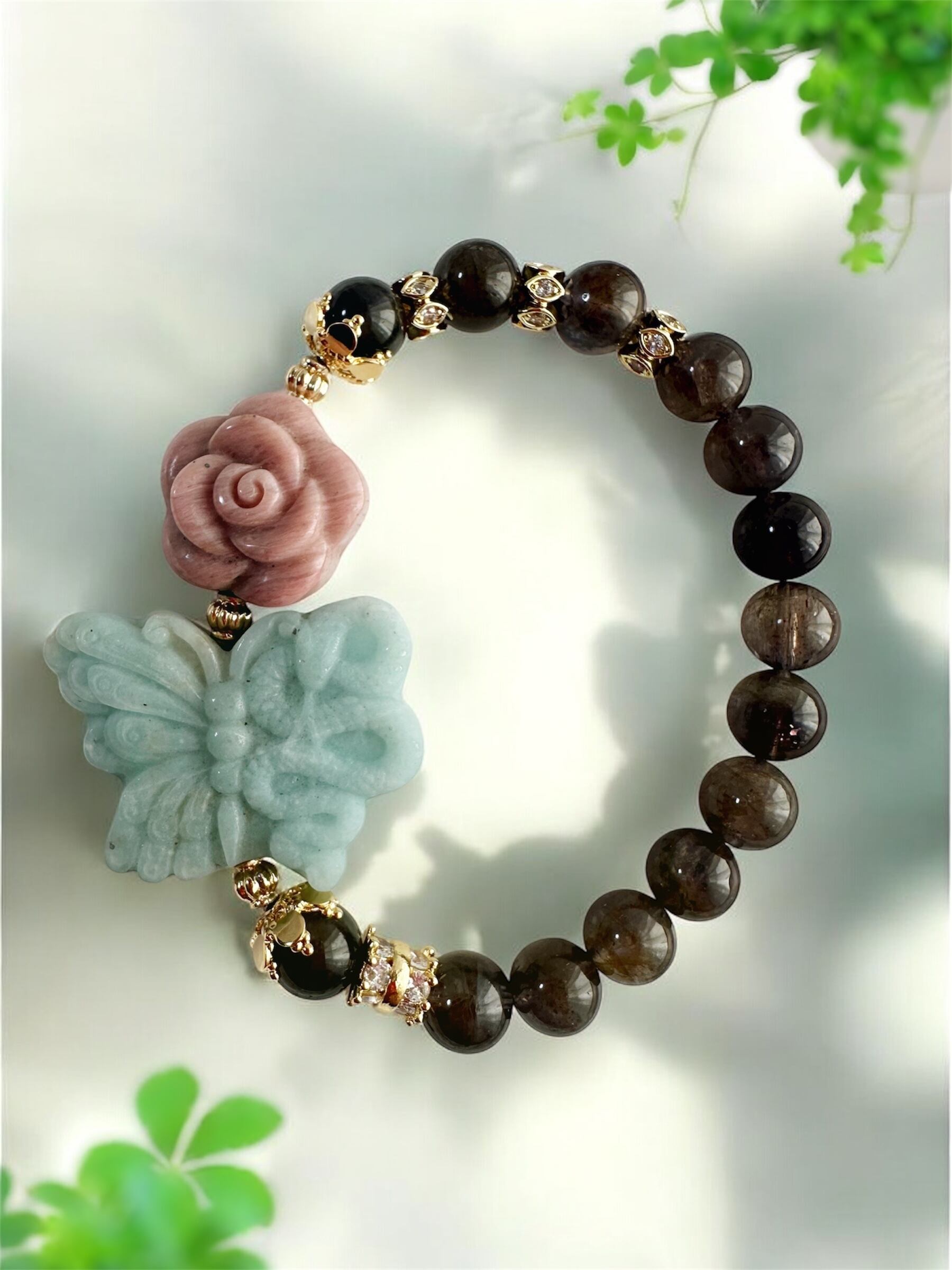 蝶々とバラモチーフが可愛い天然石ブレスレット