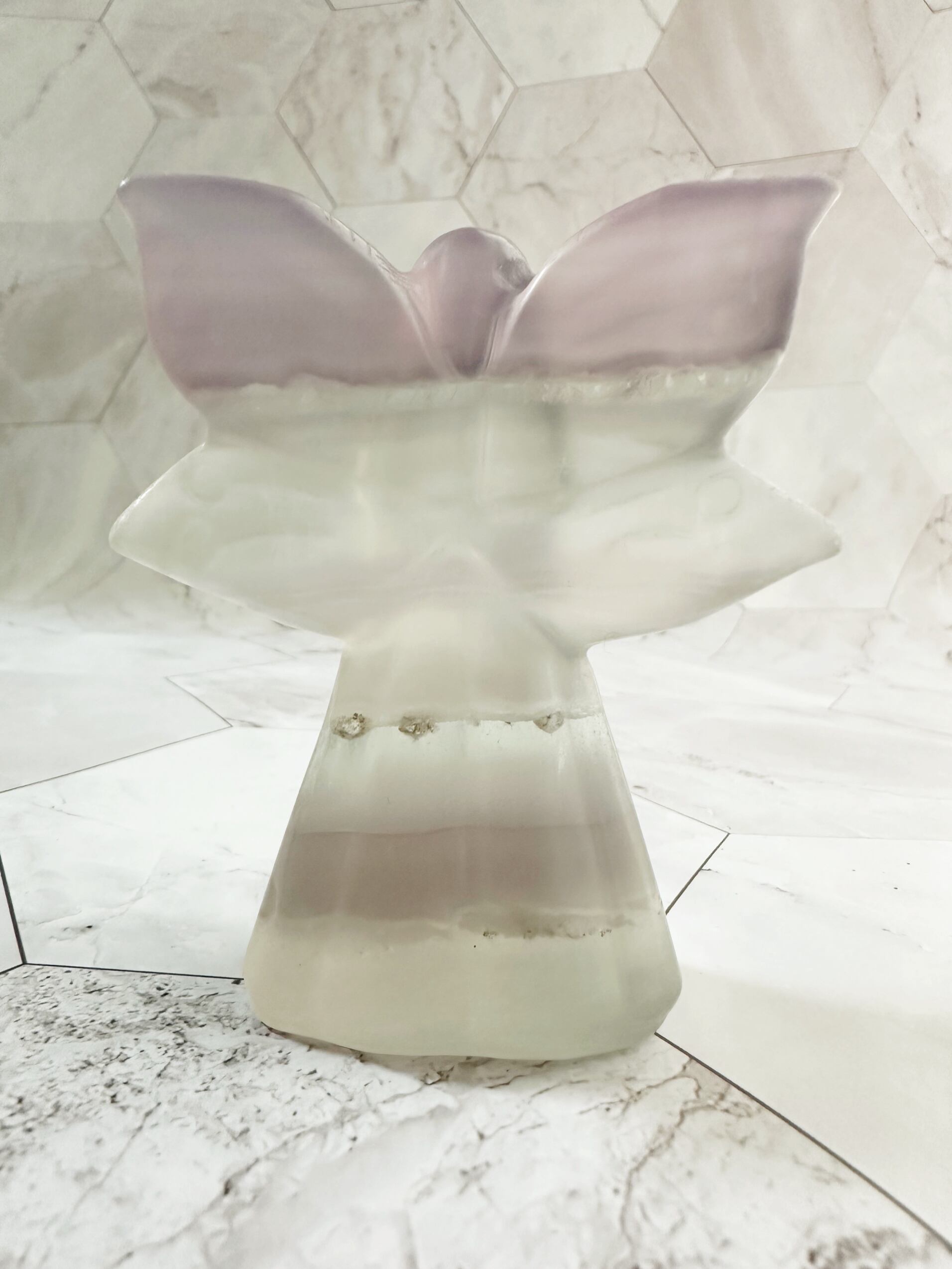 半透明な地色に、優しいラベンダー色が波のように入り込み神秘的な美しさを放っている大変希少なフローライト